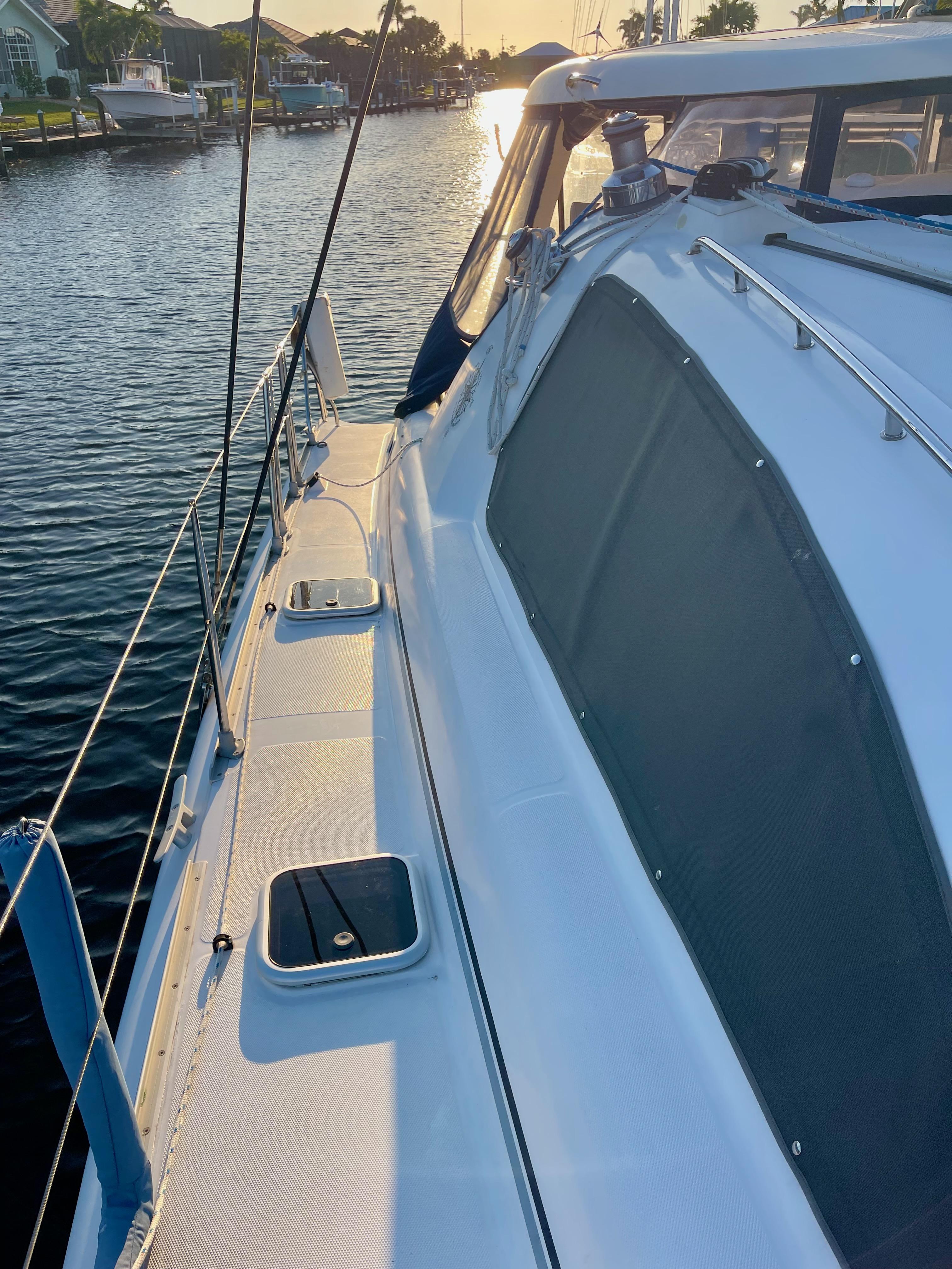 Die Leopard 43 Owners Version, die auf jahrelangem Kundenfeedback basiert, stellt die Spitze der Blauwasser-Katamarane dar. Sein robustes Design und seine leistungsorientierten Eigenschaften gewährleisten sowohl Komfort als auch Sicherheit auf See. Die gesamte laufende Takelage ist effizient nach achtern zum Cockpit geführt, was eine mühelose Segelkontrolle ermöglicht, während der geschützte Steuerstand für einhändige Hochseepassagen optimiert ist. Eine Vollverkleidung und ein Hardtop bieten umfassenden Wetterschutz. Una Vita wurde sorgfältig gewartet und aufgerüstet und war noch nie gechartert. Mit einem geringen Tiefgang von nur 4 Fuß ist Una Vita sowohl für die Erkundung flacher Buchten als auch für transozeanische Abenteuer geeignet.