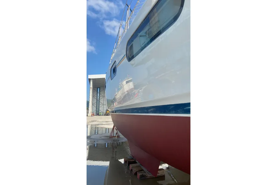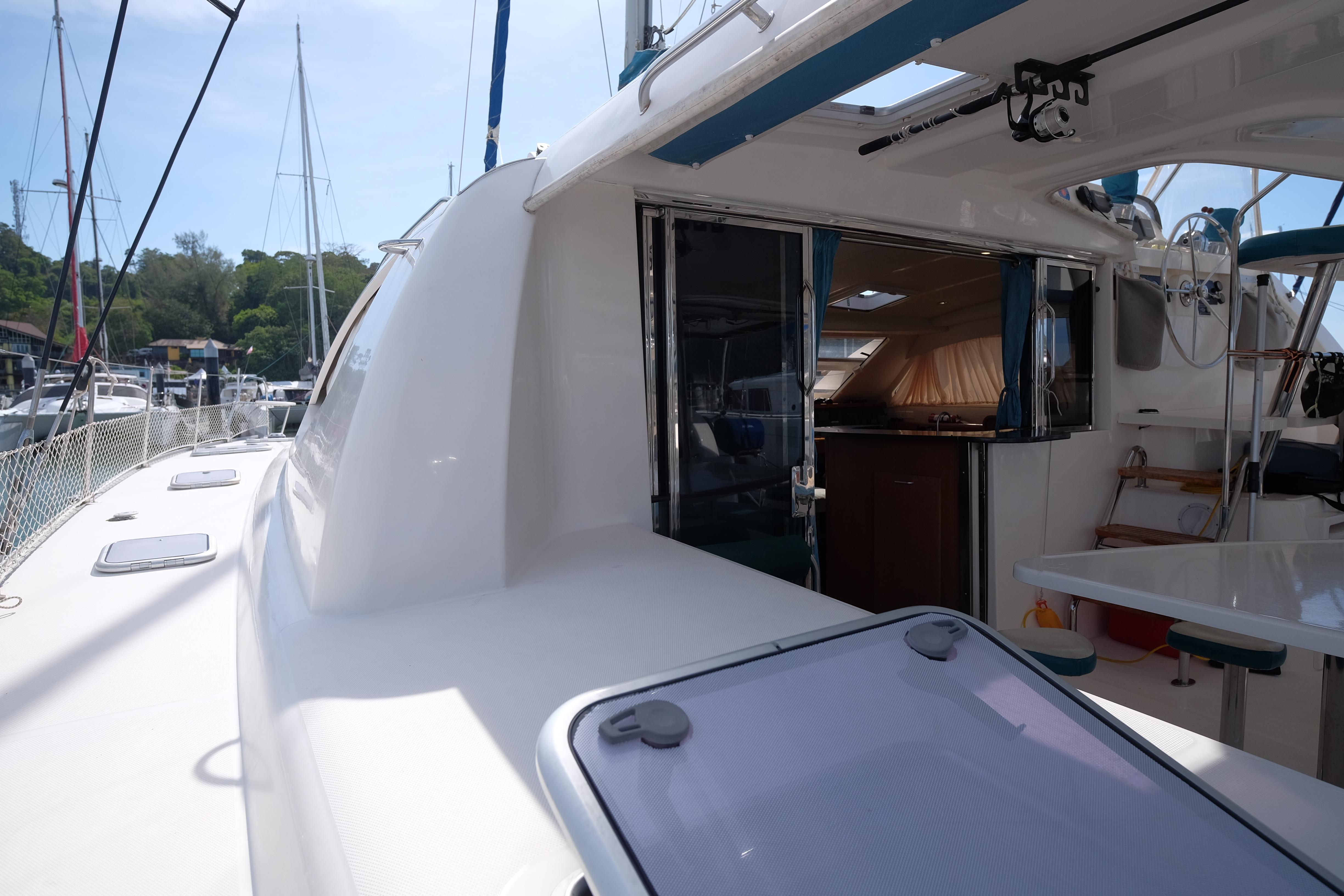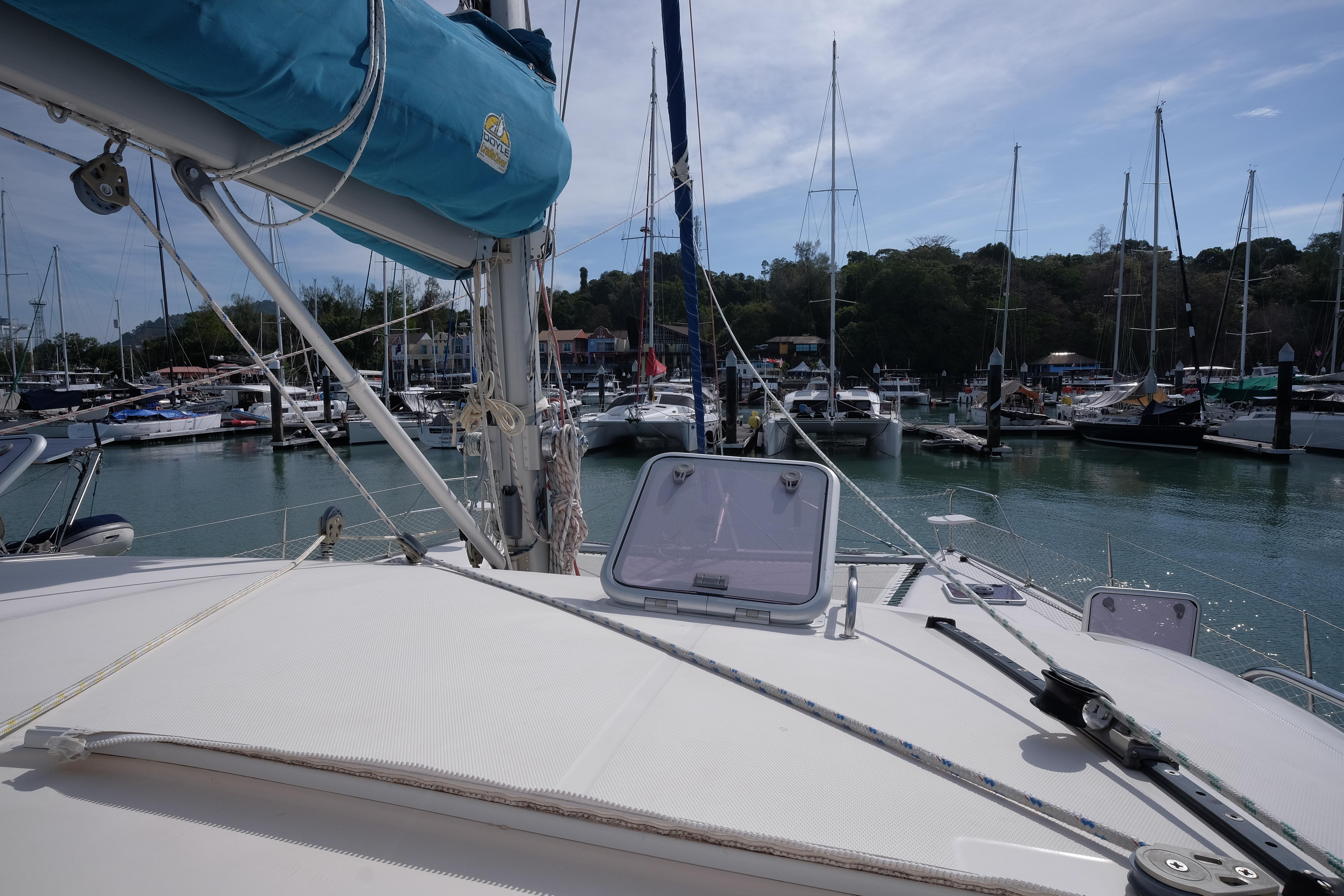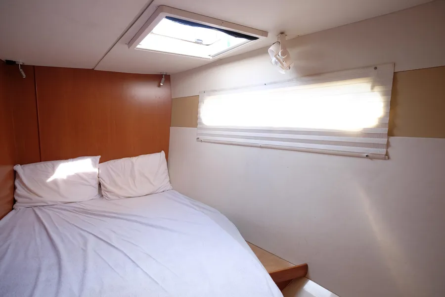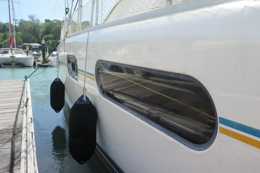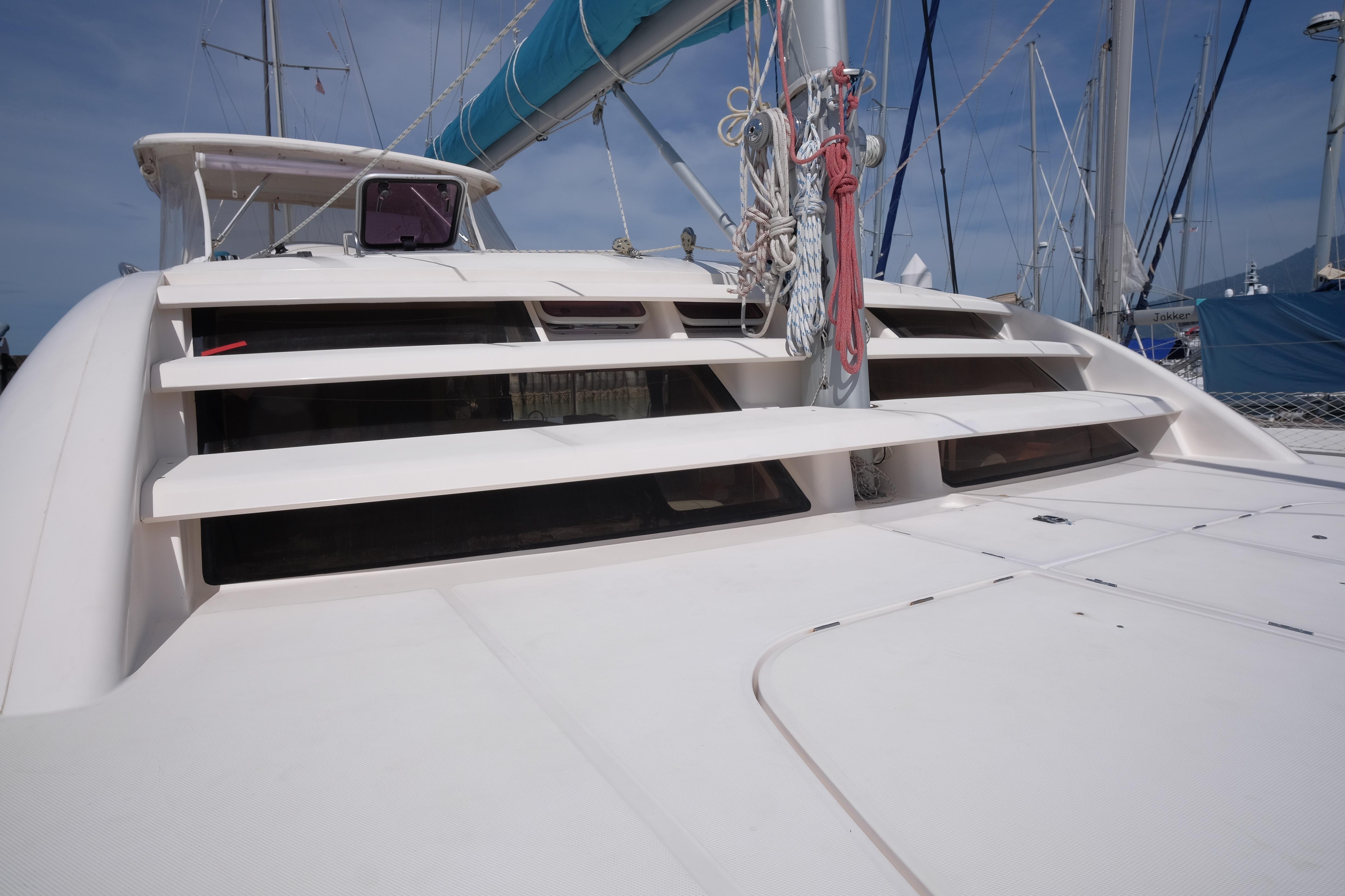 Lernen Sie AKASA kennen, eine sehr intelligente Langstrecken-Katze. Die Leopard 46 wurde zwischen 2006 und 2012 gebaut und weltweit exportiert, AKASA wurde 2009 vom Stapel gelassen. Sie kommt heute als kompletter Cruising Cat auf den Markt und ihre Besitzer haben nicht nur ihr Boot so gut ausgestattet, sondern ihre Wartung zeigt auch eine Tiefe von Wissen, die ein solcher Bonus für Käufer ist. Das Boot wurde vor kurzem für eine gründliche Inspektion des Rumpfes herausgeholt, alle Beschichtungen entfernt und Hunderte von Feuchtigkeitsmessungen vorgenommen. Die Messwerte waren perfekt und das Boot wurde im Februar 2026 mit frischem Antifouling wieder ins Wasser gelassen. Nur als vorbeugende Maßnahme für die Zukunft haben die Eigner zwei neue Kraftstofftanks aus Kunststoff anfertigen lassen, die so dimensioniert sind, dass sie durch die Tür unter Deck passen. Diese werden derzeit an den Davits gelagert.