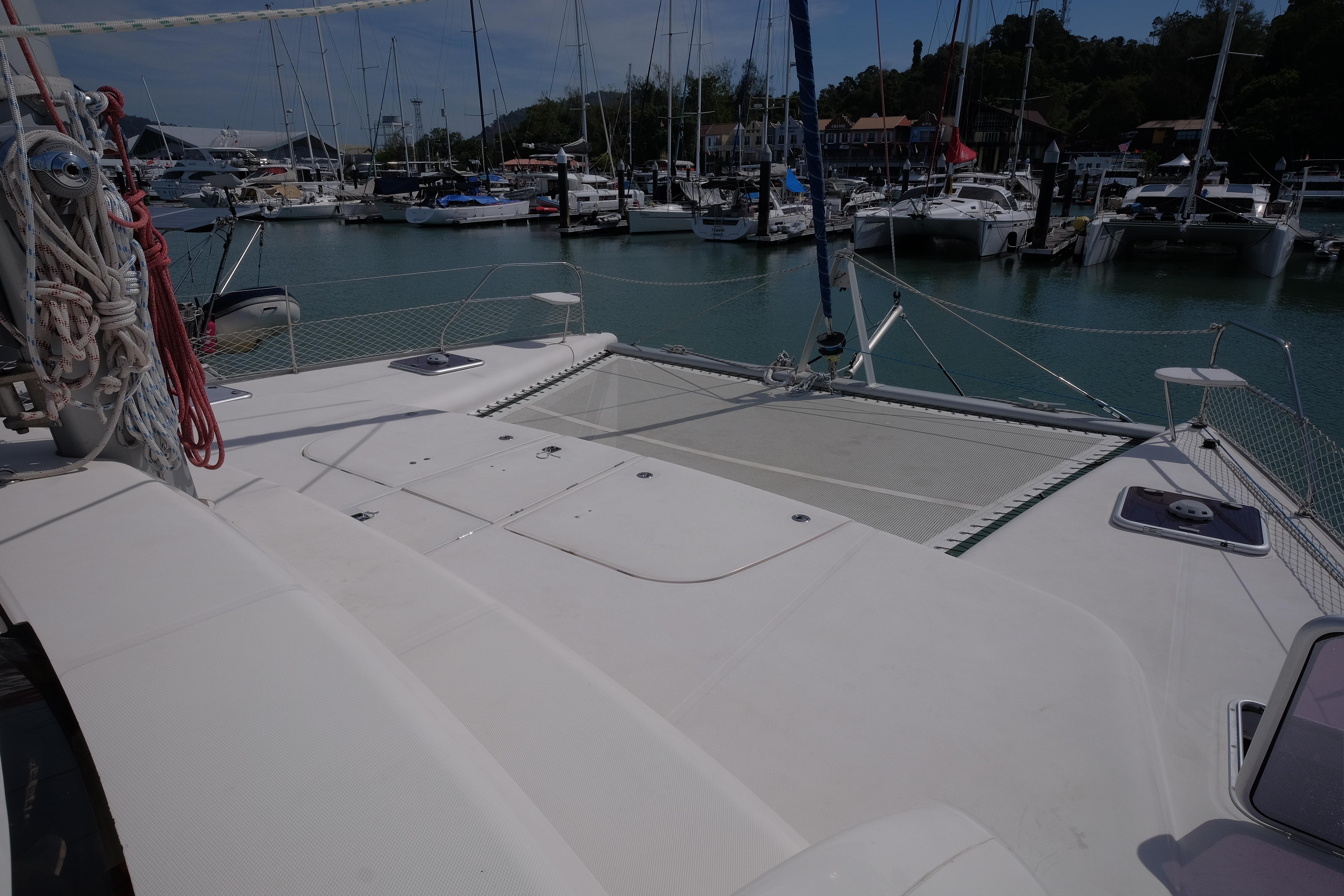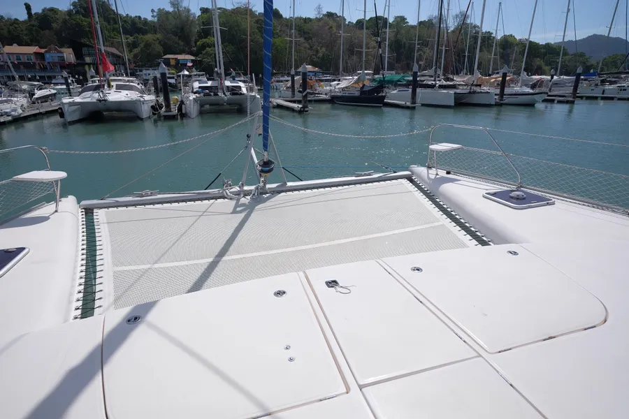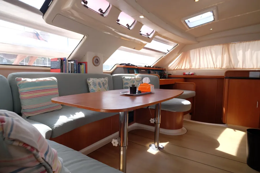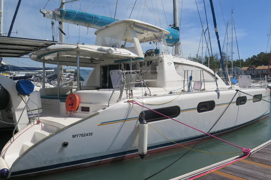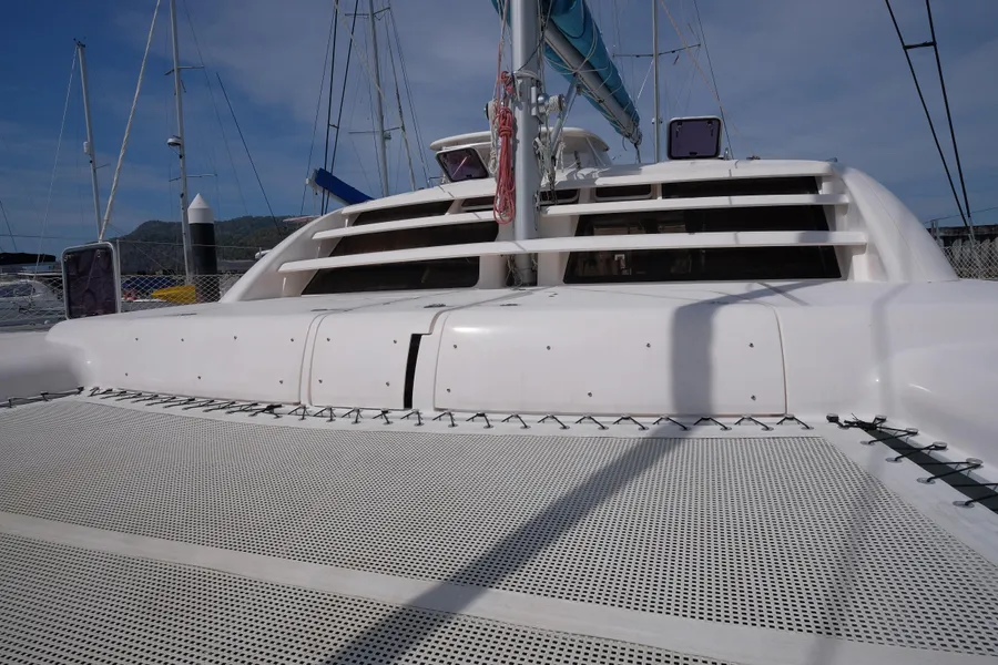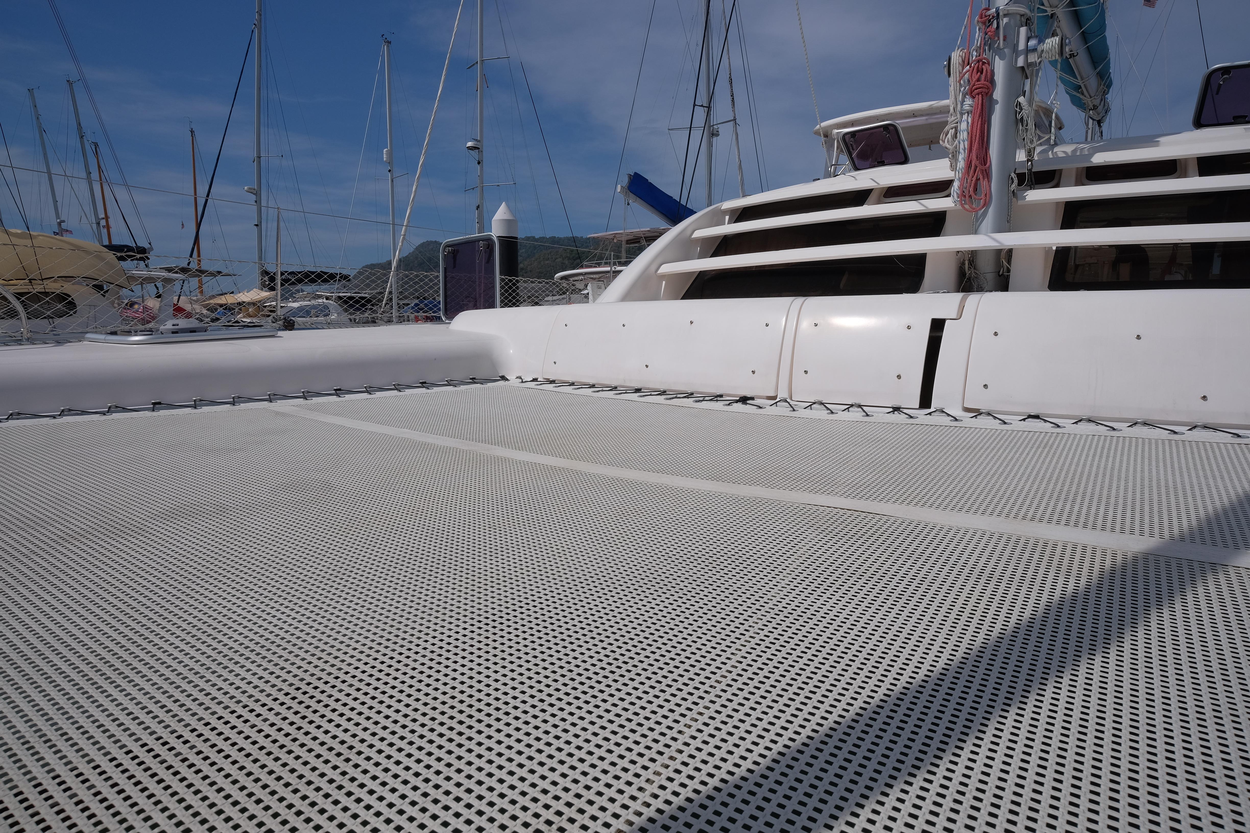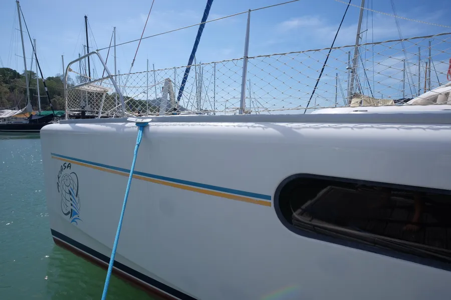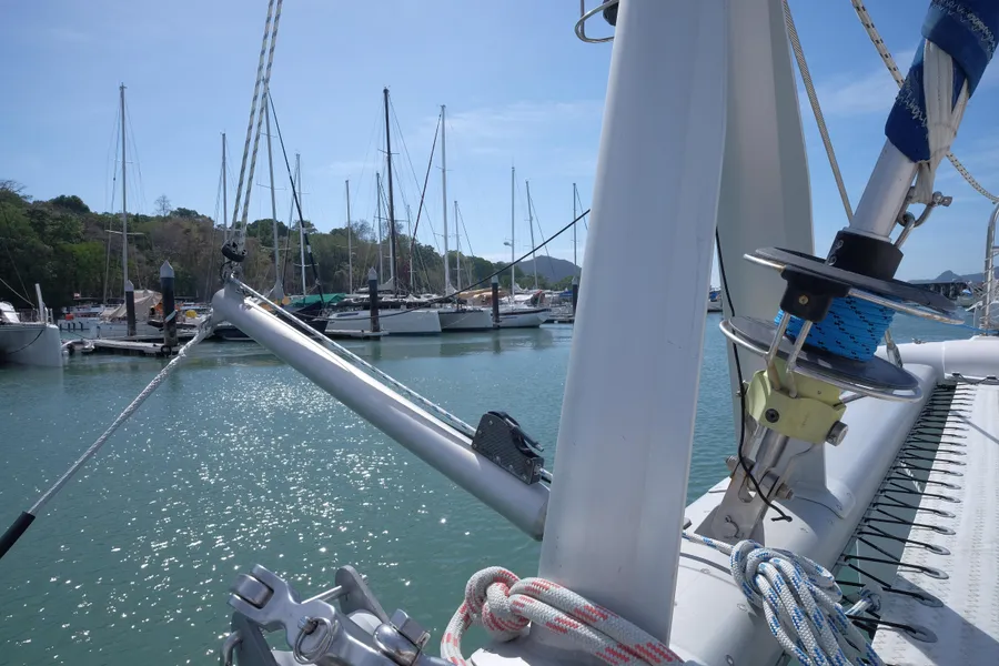Lernen Sie AKASA kennen, eine sehr intelligente Langstrecken-Katze. Die Leopard 46 wurde zwischen 2006 und 2012 gebaut und weltweit exportiert, AKASA wurde 2009 vom Stapel gelassen. Sie kommt heute als kompletter Cruising Cat auf den Markt und ihre Besitzer haben nicht nur ihr Boot so gut ausgestattet, sondern ihre Wartung zeigt auch eine Tiefe von Wissen, die ein solcher Bonus für Käufer ist. Das Boot wurde vor kurzem für eine gründliche Inspektion des Rumpfes herausgeholt, alle Beschichtungen entfernt und Hunderte von Feuchtigkeitsmessungen vorgenommen. Die Messwerte waren perfekt und das Boot wurde im Februar 2026 mit frischem Antifouling wieder ins Wasser gelassen. Nur als vorbeugende Maßnahme für die Zukunft haben die Eigner zwei neue Kraftstofftanks aus Kunststoff anfertigen lassen, die so dimensioniert sind, dass sie durch die Tür unter Deck passen. Diese werden derzeit an den Davits gelagert.