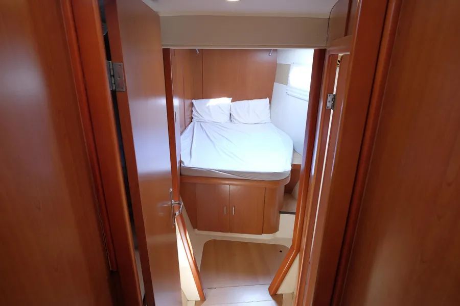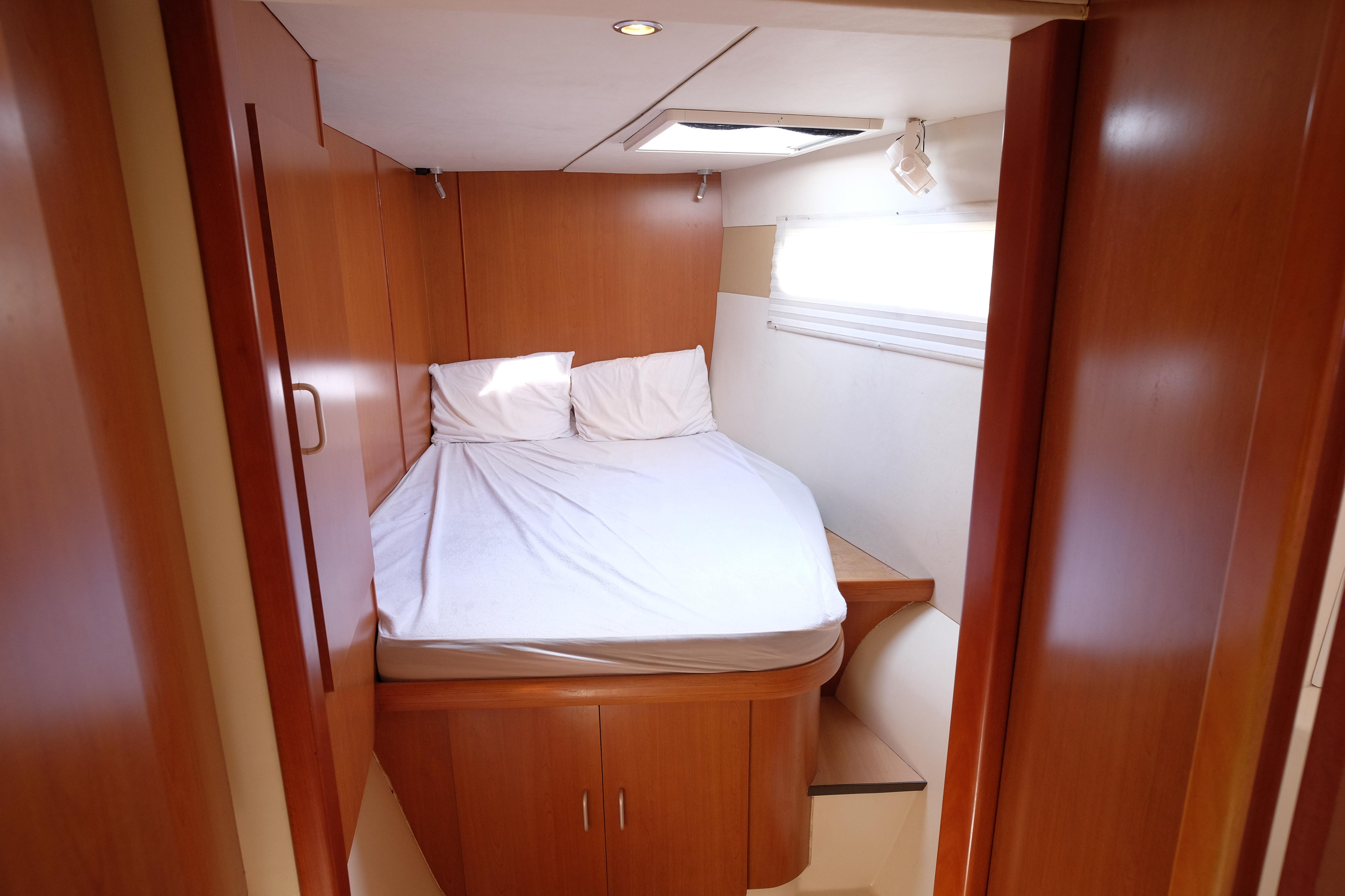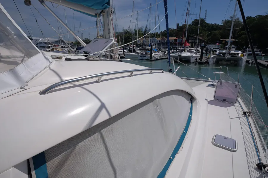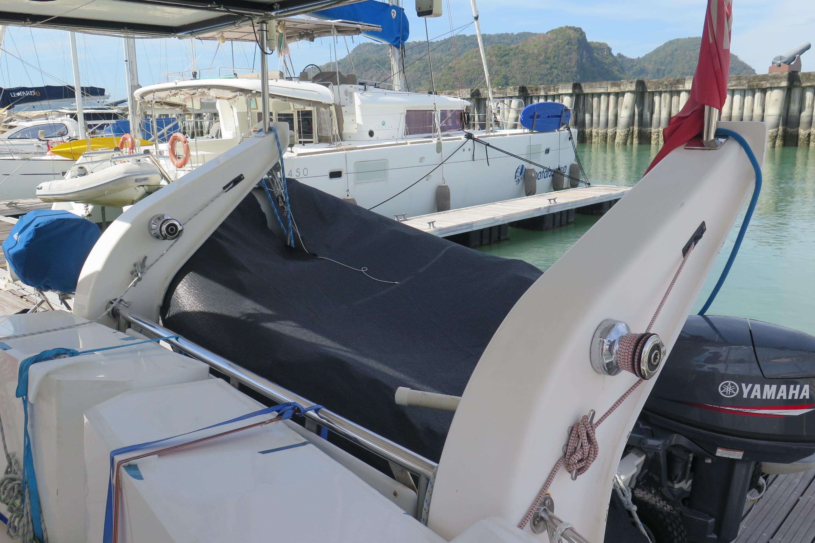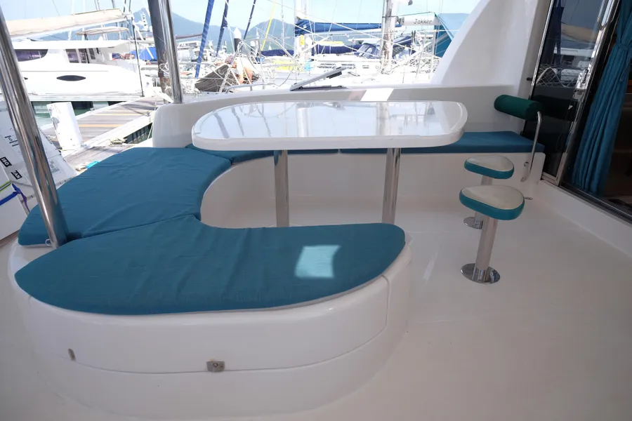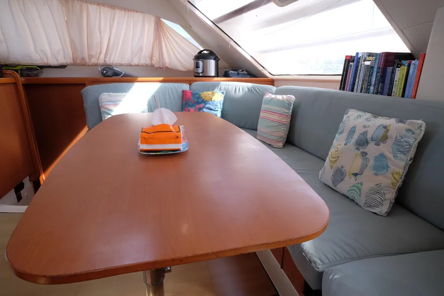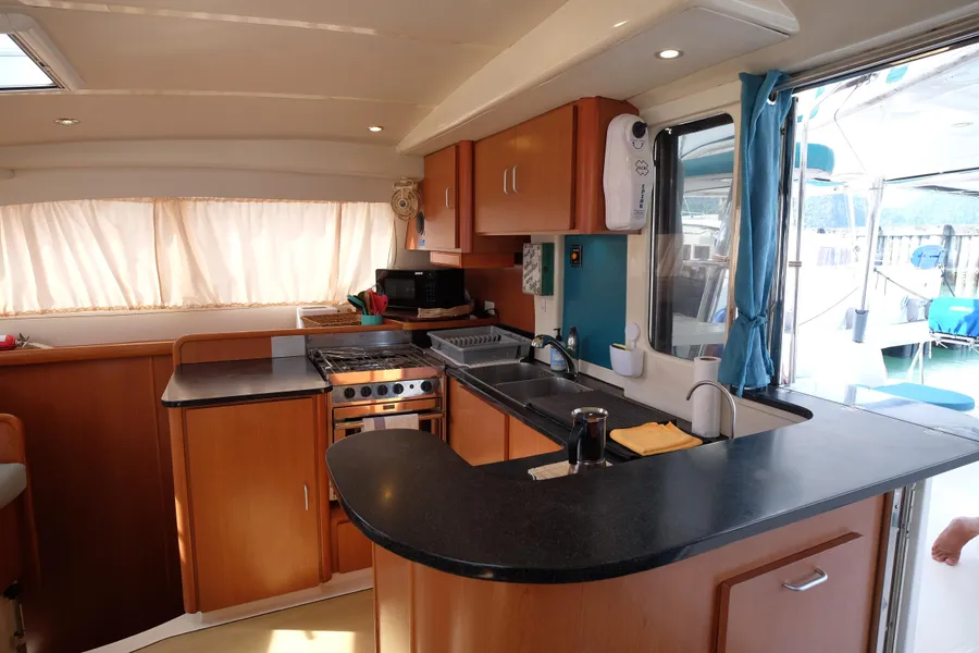 Lernen Sie AKASA kennen, eine sehr intelligente Langstrecken-Katze. Die Leopard 46 wurde zwischen 2006 und 2012 gebaut und weltweit exportiert, AKASA wurde 2009 vom Stapel gelassen. Sie kommt heute als kompletter Cruising Cat auf den Markt und ihre Besitzer haben nicht nur ihr Boot so gut ausgestattet, sondern ihre Wartung zeigt auch eine Tiefe von Wissen, die ein solcher Bonus für Käufer ist. Das Boot wurde vor kurzem für eine gründliche Inspektion des Rumpfes herausgeholt, alle Beschichtungen entfernt und Hunderte von Feuchtigkeitsmessungen vorgenommen. Die Messwerte waren perfekt und das Boot wurde im Februar 2026 mit frischem Antifouling wieder ins Wasser gelassen. Nur als vorbeugende Maßnahme für die Zukunft haben die Eigner zwei neue Kraftstofftanks aus Kunststoff anfertigen lassen, die so dimensioniert sind, dass sie durch die Tür unter Deck passen. Diese werden derzeit an den Davits gelagert.