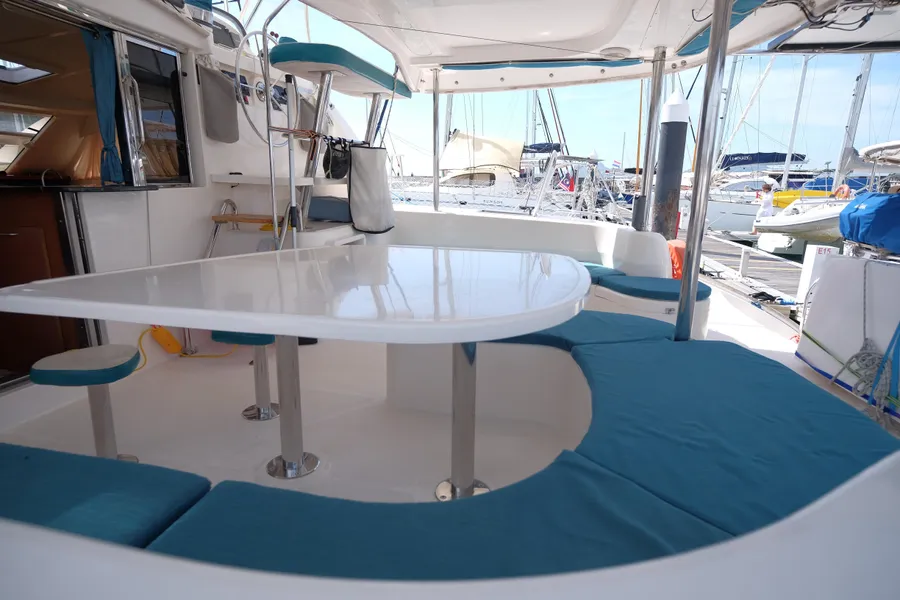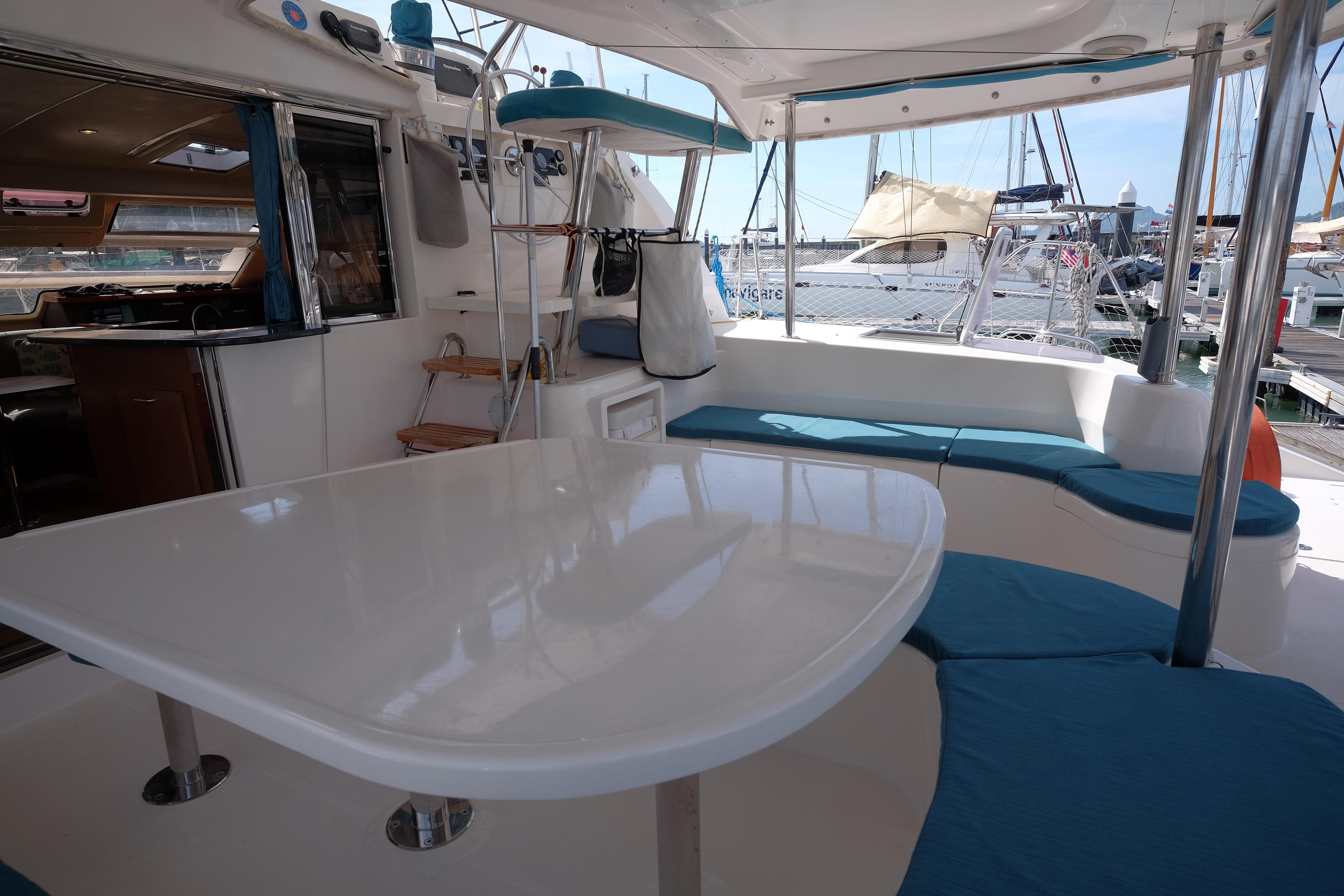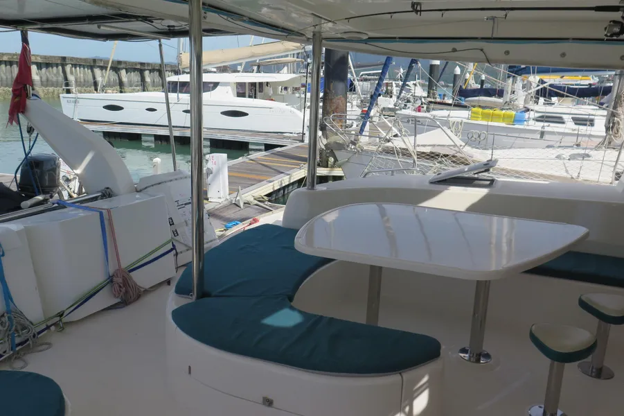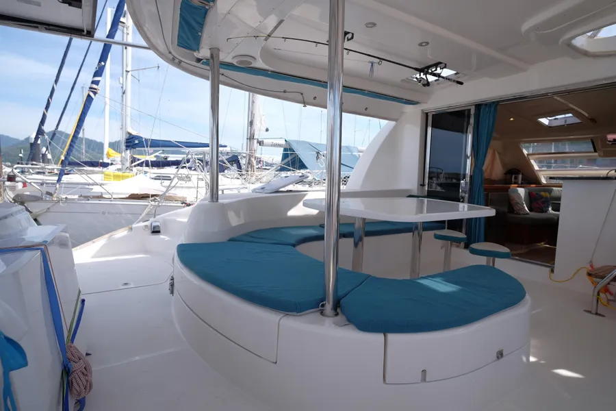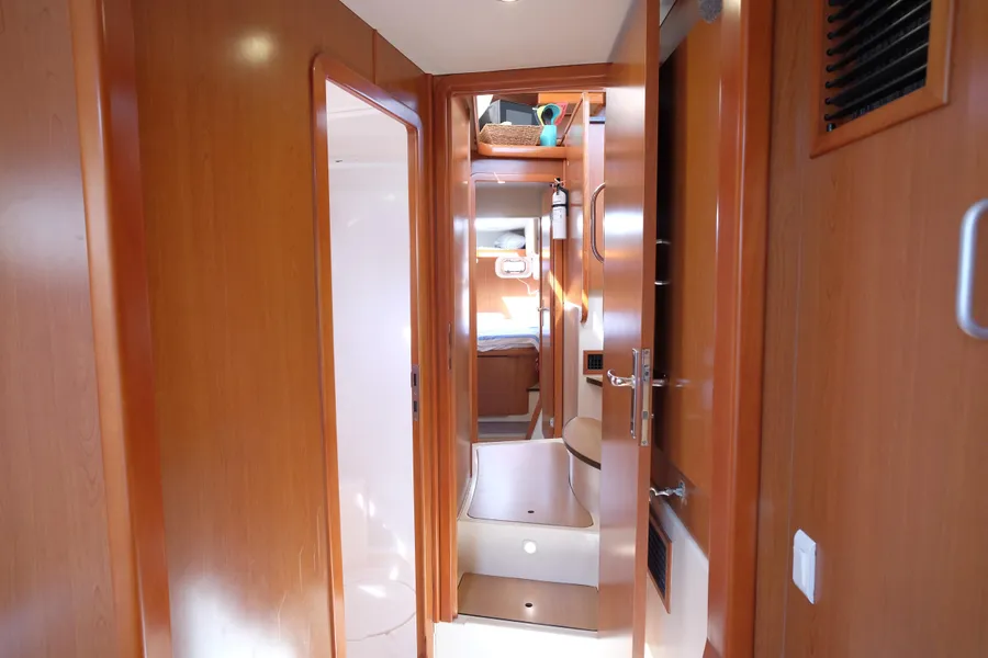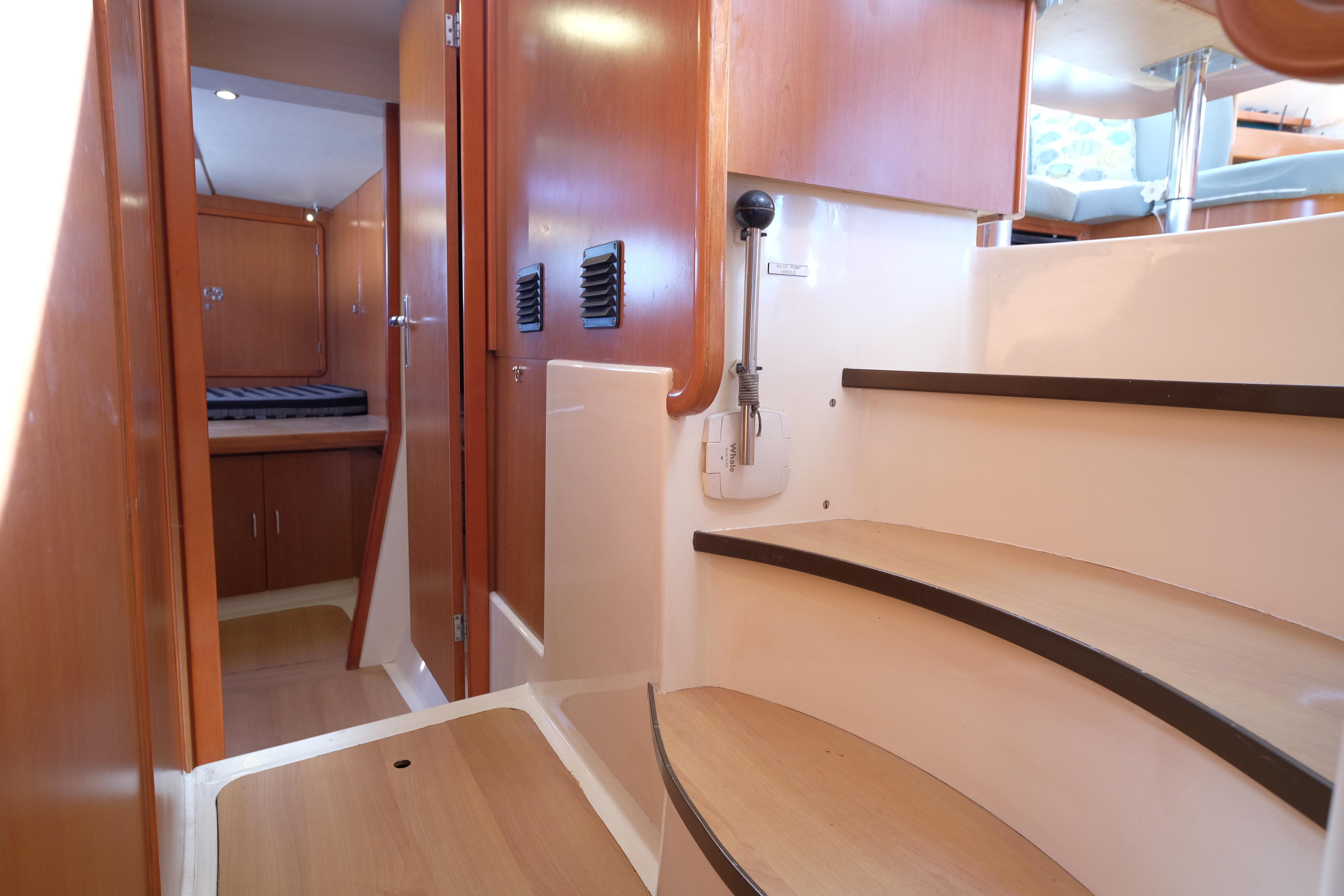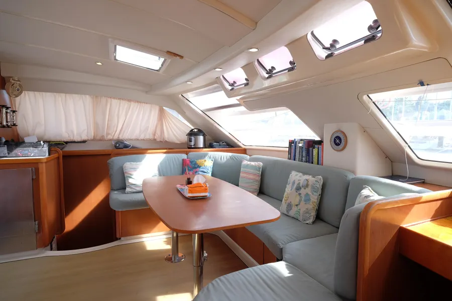 Lernen Sie AKASA kennen, eine sehr intelligente Langstrecken-Katze. Die Leopard 46 wurde zwischen 2006 und 2012 gebaut und weltweit exportiert, AKASA wurde 2009 vom Stapel gelassen. Sie kommt heute als kompletter Cruising Cat auf den Markt und ihre Besitzer haben nicht nur ihr Boot so gut ausgestattet, sondern ihre Wartung zeigt auch eine Tiefe von Wissen, die ein solcher Bonus für Käufer ist. Das Boot wurde vor kurzem für eine gründliche Inspektion des Rumpfes herausgeholt, alle Beschichtungen entfernt und Hunderte von Feuchtigkeitsmessungen vorgenommen. Die Messwerte waren perfekt und das Boot wurde im Februar 2026 mit frischem Antifouling wieder ins Wasser gelassen. Nur als vorbeugende Maßnahme für die Zukunft haben die Eigner zwei neue Kraftstofftanks aus Kunststoff anfertigen lassen, die so dimensioniert sind, dass sie durch die Tür unter Deck passen. Diese werden derzeit an den Davits gelagert.