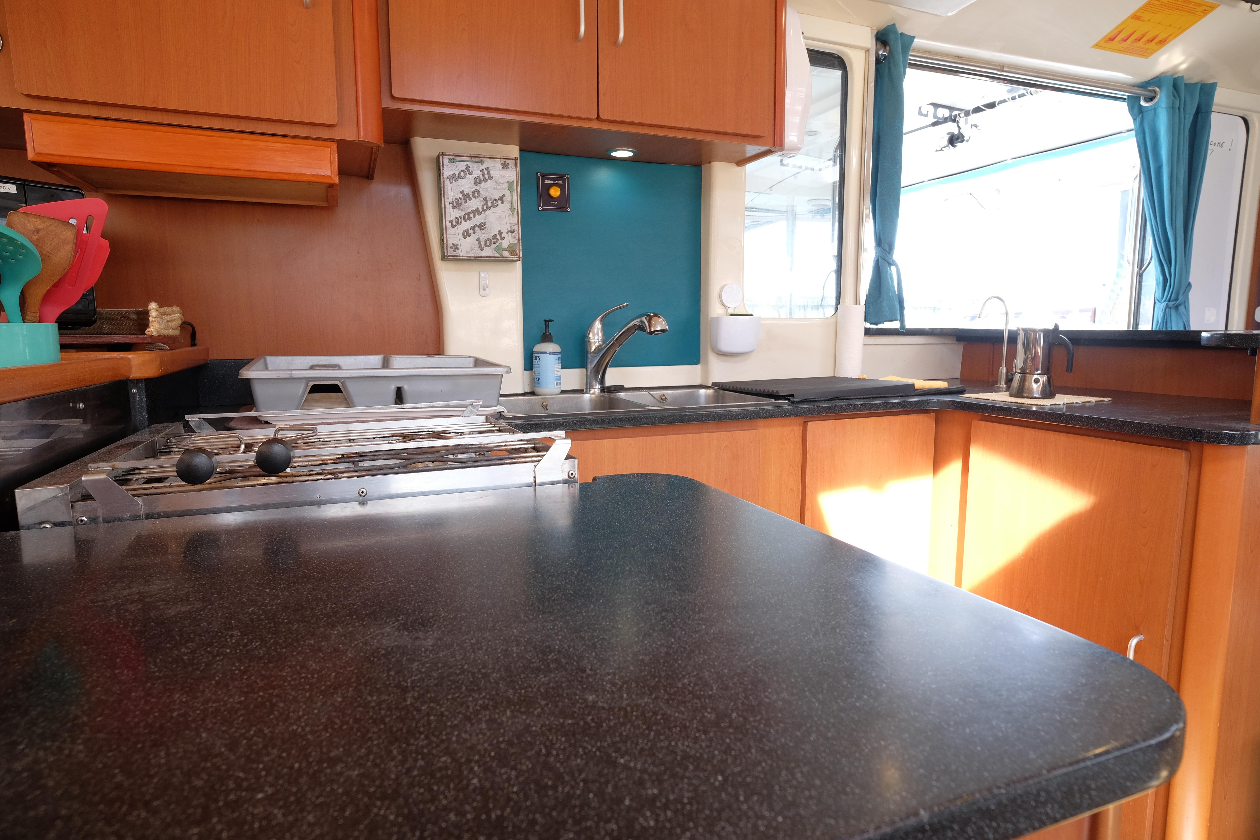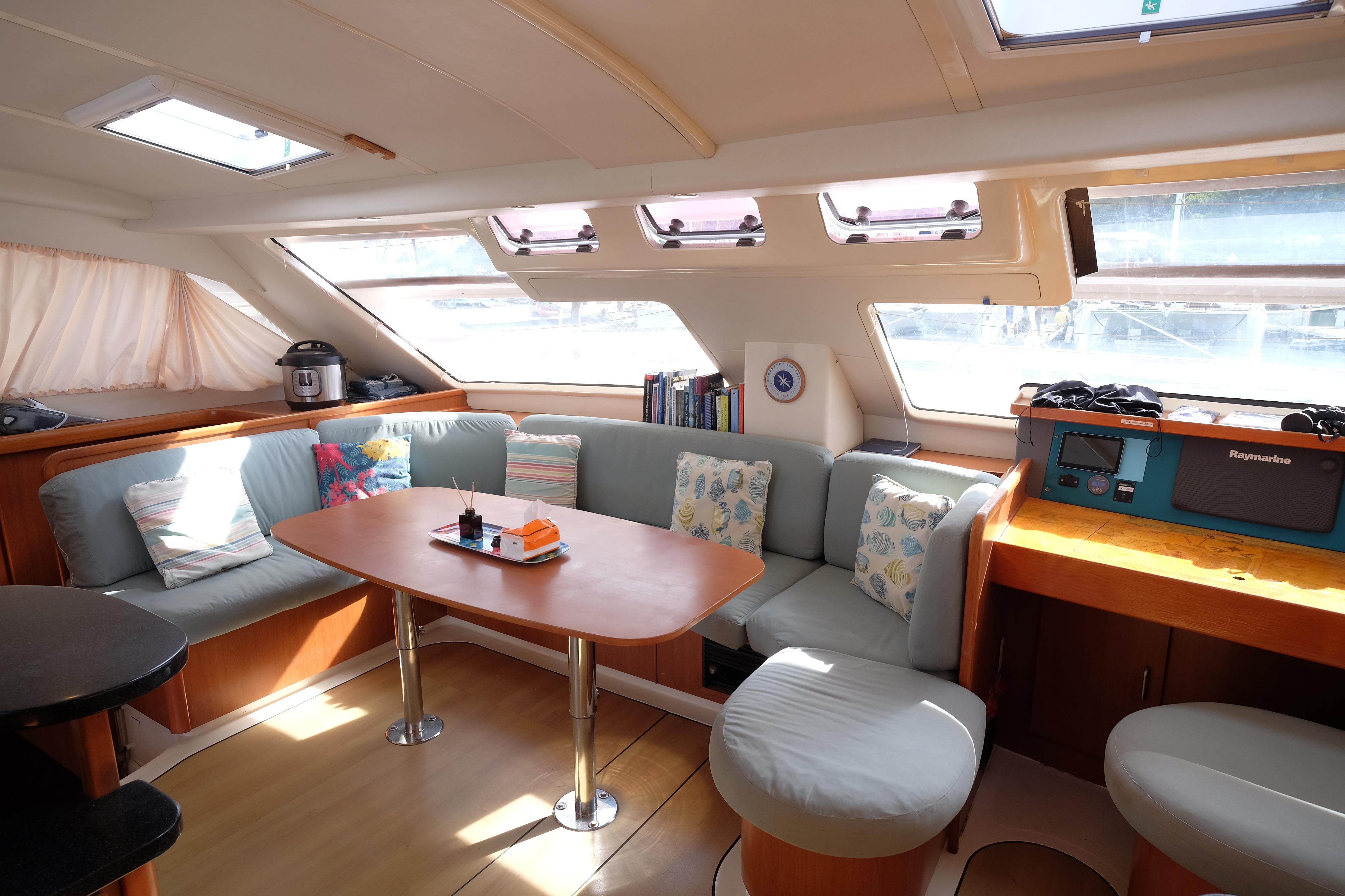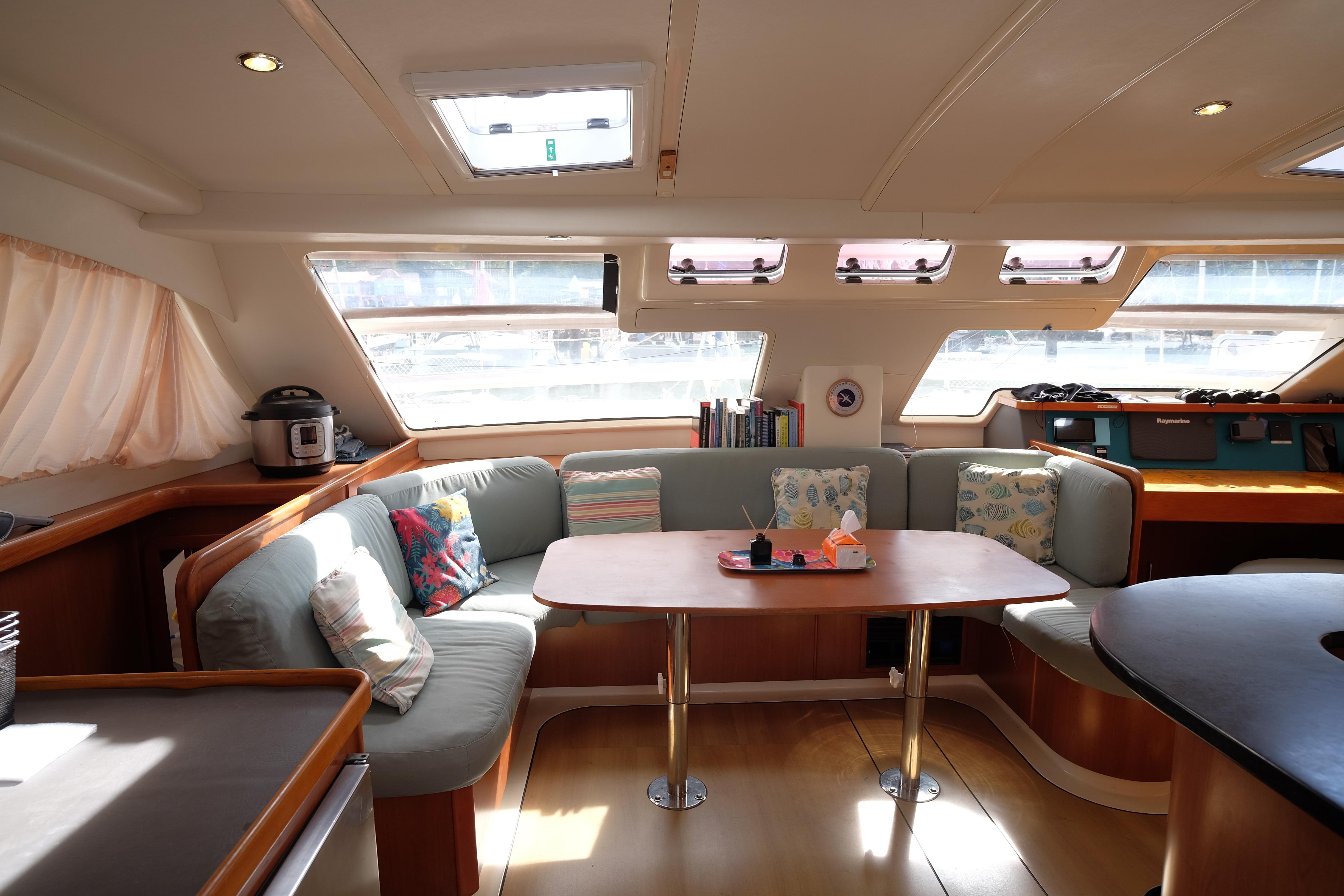 Das Leben an Bord ist komfortabel und Elemente wie die Umkehrosmose-Wasseranlage, die perfektes Trinkwasser aus den Tanks liefert, tragen noch mehr zur Lebensqualität bei. Die Klimaanlage wurde aufgerüstet, drei neue 12VDC 12.000 BTU Einheiten wurden im Februar 2026 installiert.