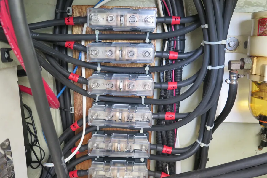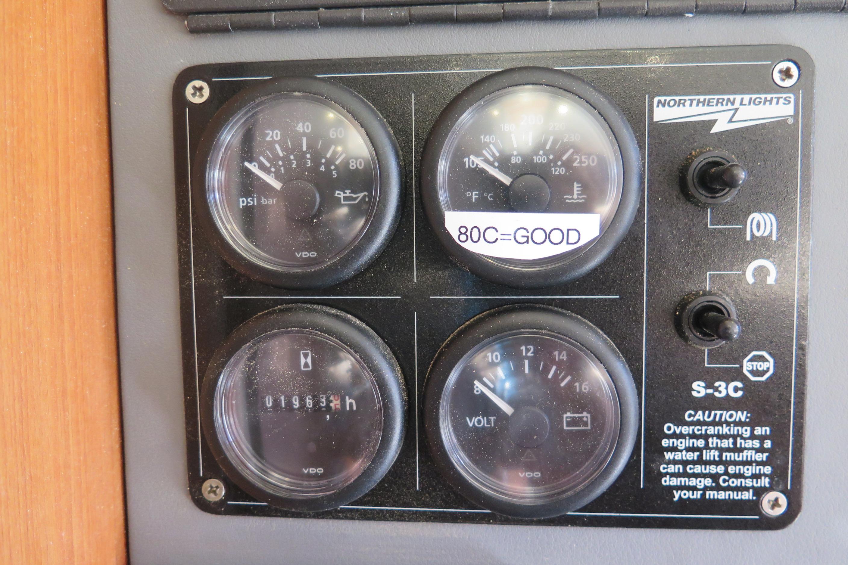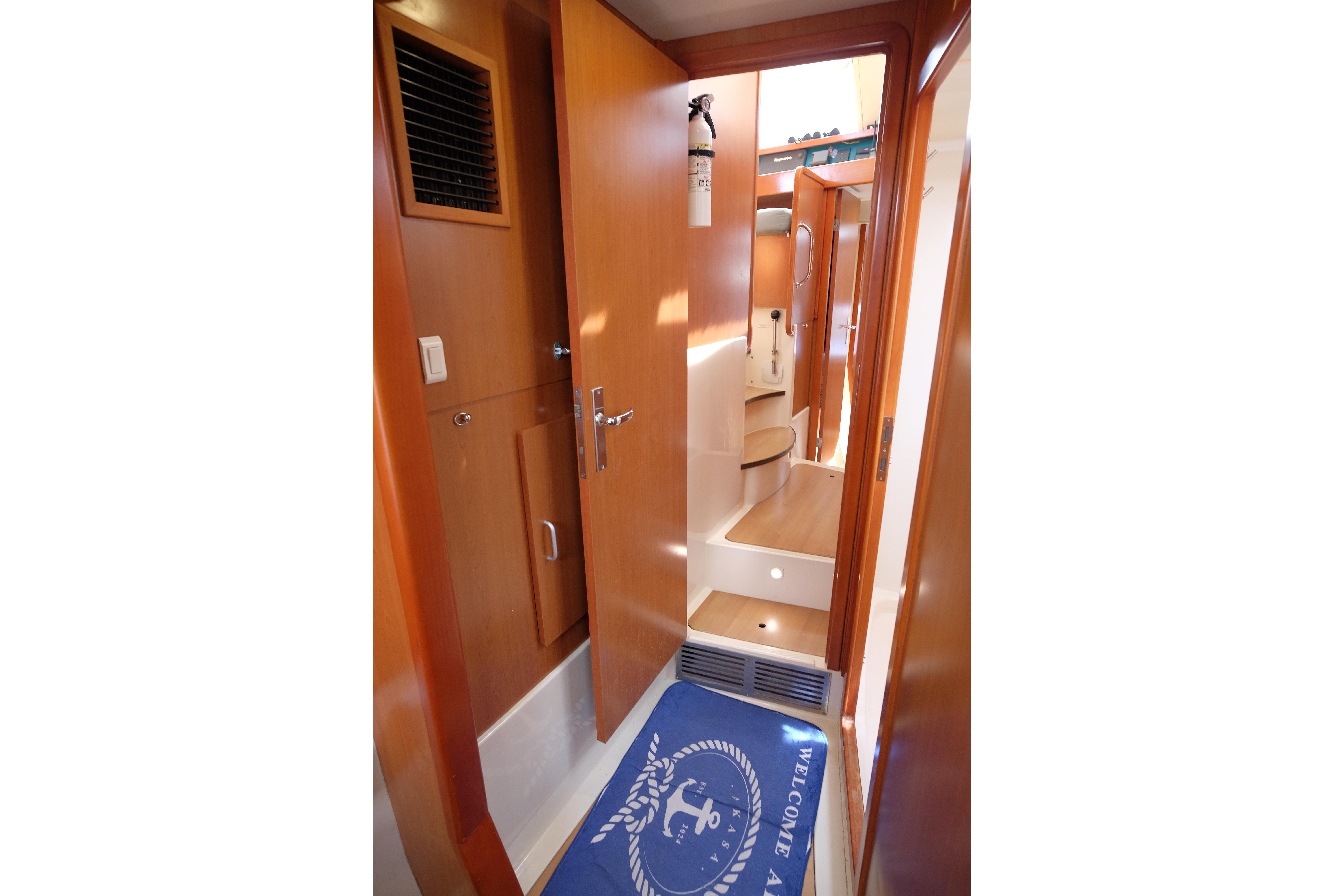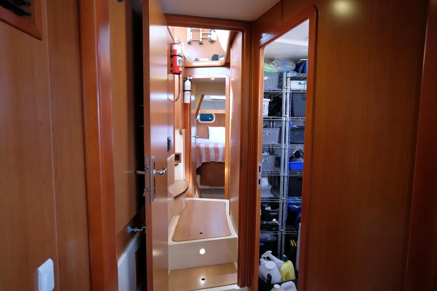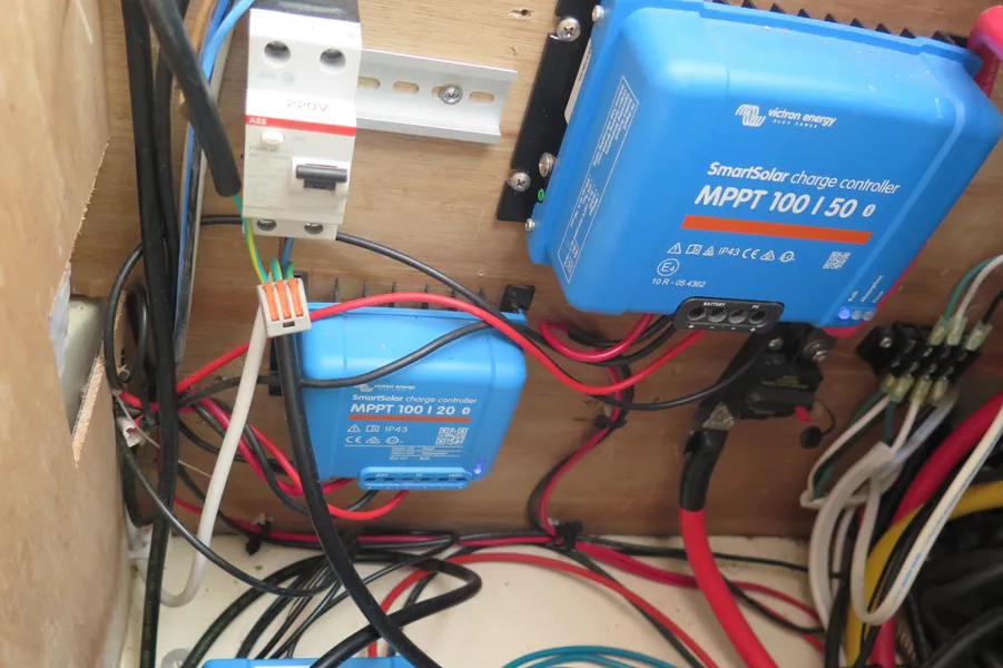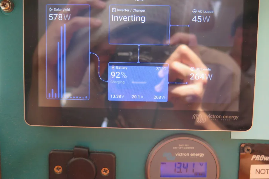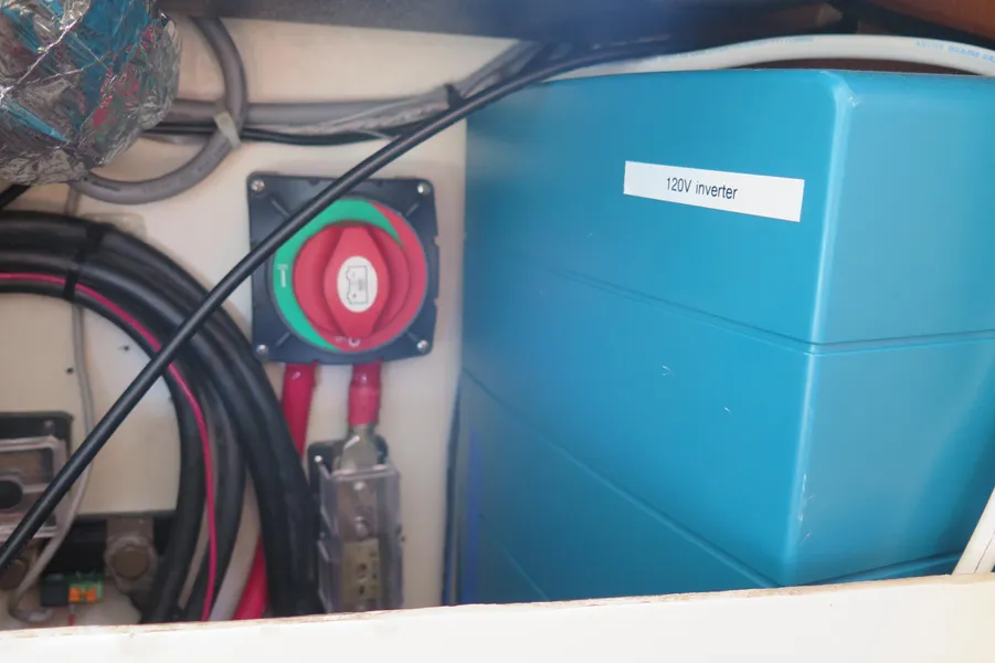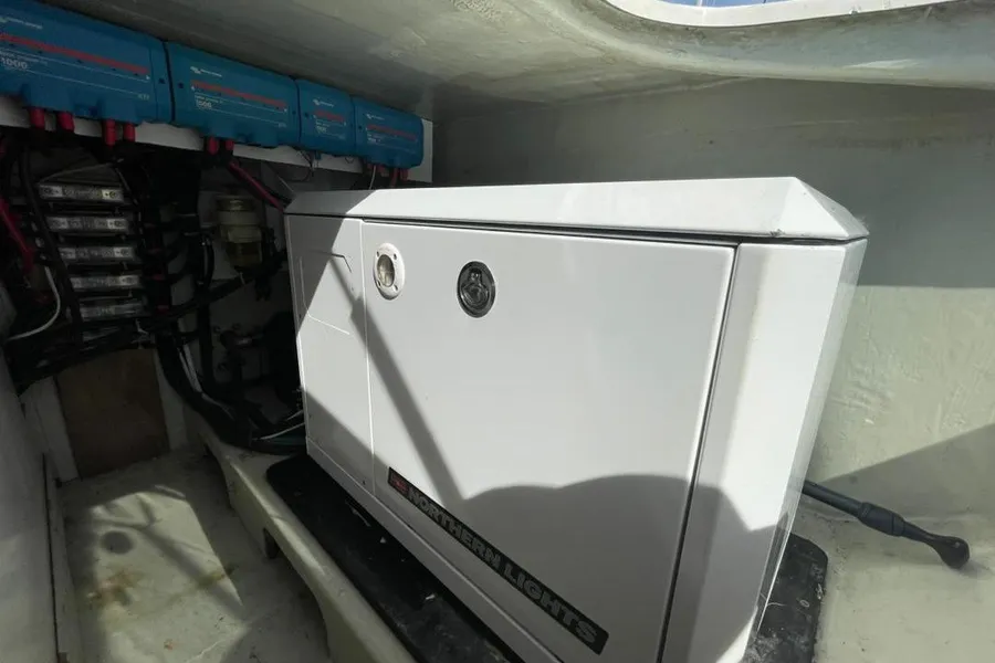 AKASA ist sicherlich ein autarkes Boot mit einer beeindruckenden 1764-Watt-Solaranlage mit MPPT-Steuerung und neuen Lithium-Batterien. Ein 9kVA Northern Lights Stromaggregat ist in der Backbord-Vorpiek installiert und wird nur selten benötigt.