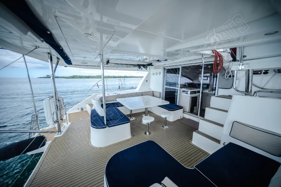 Wir stellen Ihnen Purple Pearlvor , einen 2015 Leopard 48 Owner’s Version Segelkatamaran, der den Geist des modernen Blauwassersegelns einfängt. Der Leopard 48, der von dem angesehenen Schiffbauunternehmen Simonis & Voogd entworfen und in Kapstadt, Südafrika, von Robertson & Caine gebaut wurde, stellt einen großen Schritt nach vorn im Design von Fahrtenkatamaranen dar. Die Leopard 48 wurde in einer Zeit vorgestellt, in der sich Mehrrumpfboote rasch weiterentwickelten, und führte Merkmale ein, die schnell zu Markenzeichen der Marke wurden, darunter der innovative Zugang zum vorderen Cockpit, der erhöhte Steuerstand und die Konzentration auf offene, luftige Wohnräume, die das Innere und Äußere des Schiffes nahtlos verbinden. Das Ergebnis ist eine Segelplattform, die für ihre ausgewogene Segelleistung, die komfortable Unterbringung und die Stabilität bekannt ist, die Segler von einem gut durchdachten Katamaran erwarten.