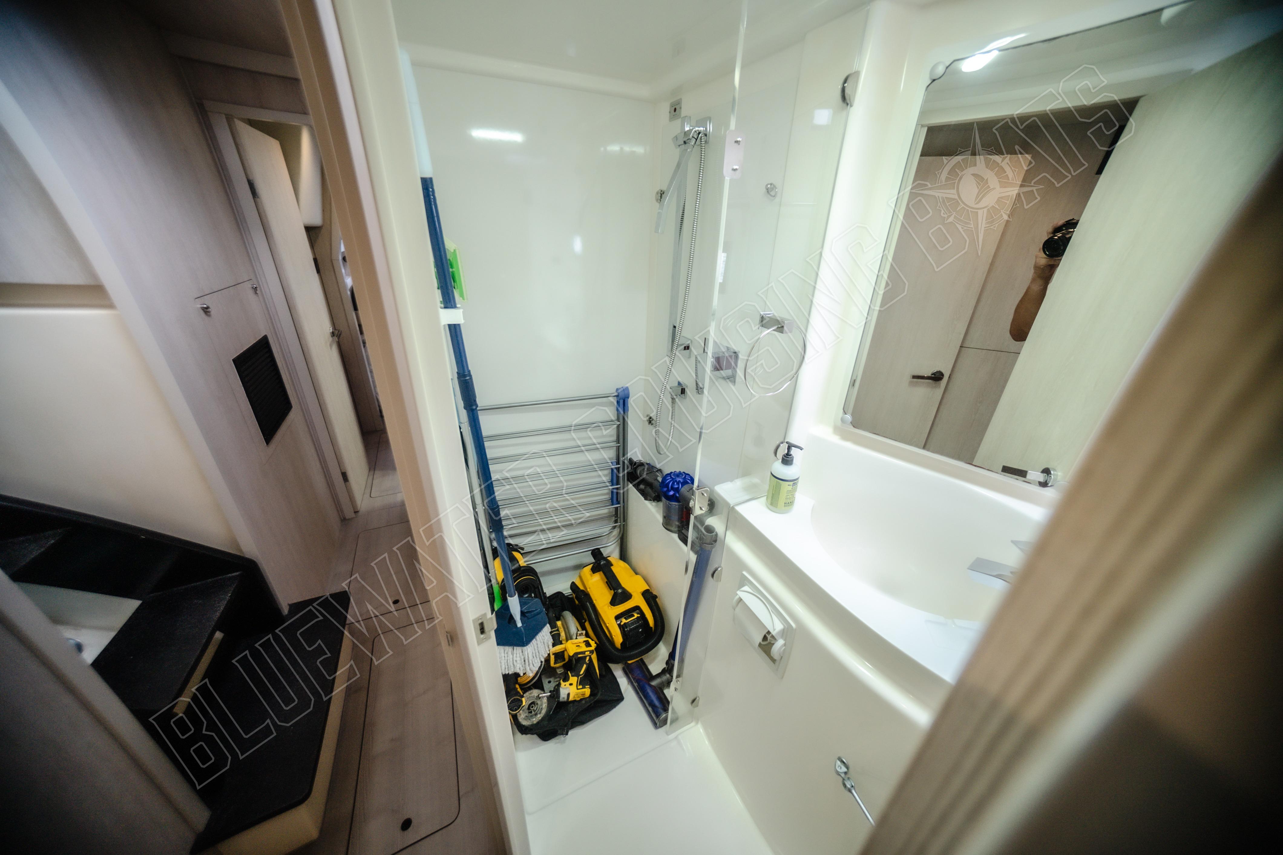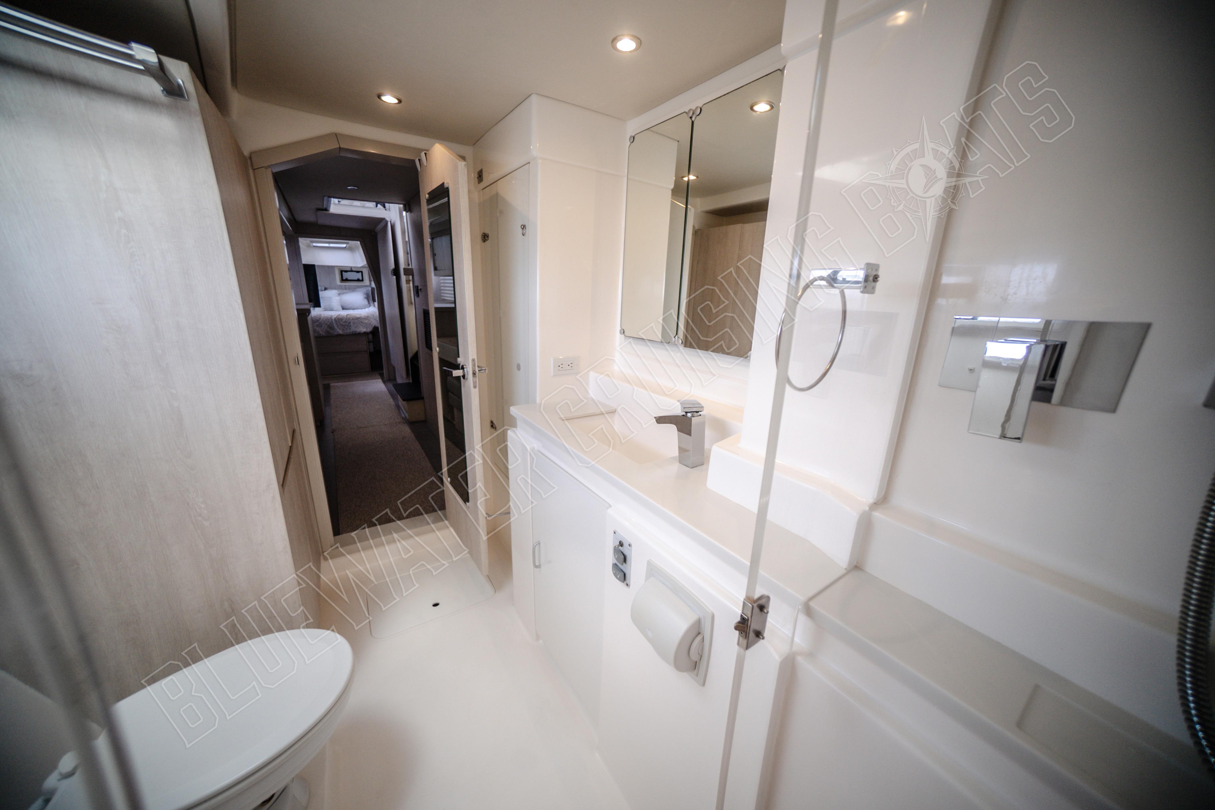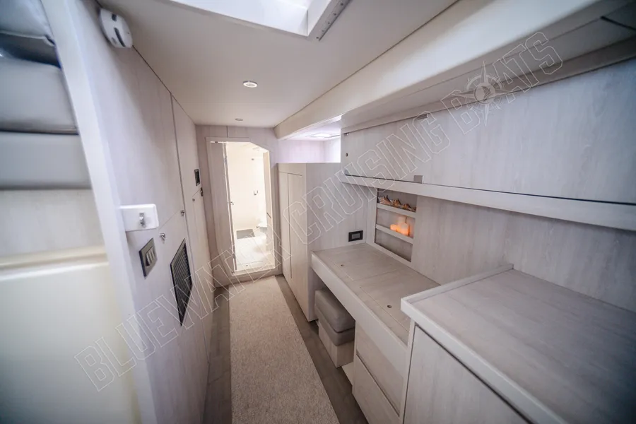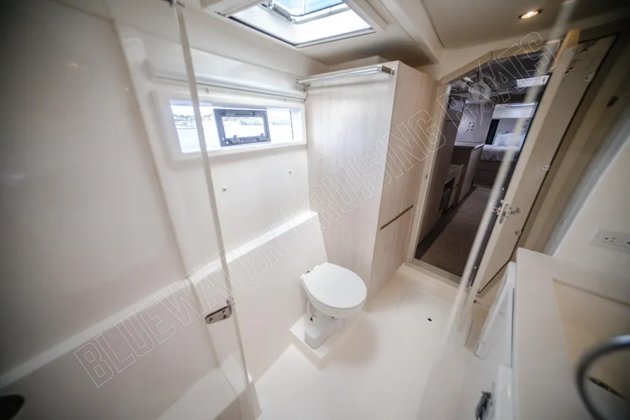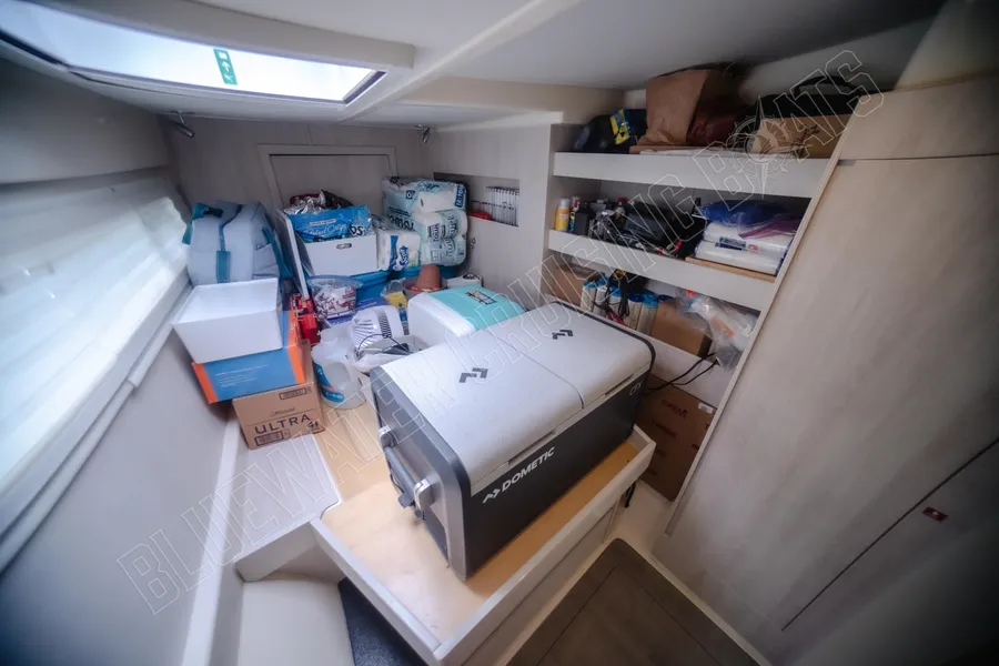 Die Leopard 48 ist bekannt für ihr durchdachtes Innendesign, das ein beeindruckendes Raumgefühl bietet und gleichzeitig eine praktische Aufteilung für ausgedehnte Fahrten ermöglicht. Die Purple Pearl ist in der begehrten Owner’s Version konfiguriert , einer Anordnung mit drei Kabinen, bei der der gesamte Steuerbordrumpf einer privaten Mastersuite gewidmet ist, während der Backbordrumpf zwei komfortable Gästekabinen beherbergt. Dieses Layout schafft ein natürliches Gleichgewicht zwischen Privatsphäre und gemeinsamem Lebensraum, wodurch sich das Schiff gut für Paare eignet, die lange Strecken zurücklegen, für Familien, die gemeinsam reisen, oder für Eigner, die häufig Gäste an Bord haben.