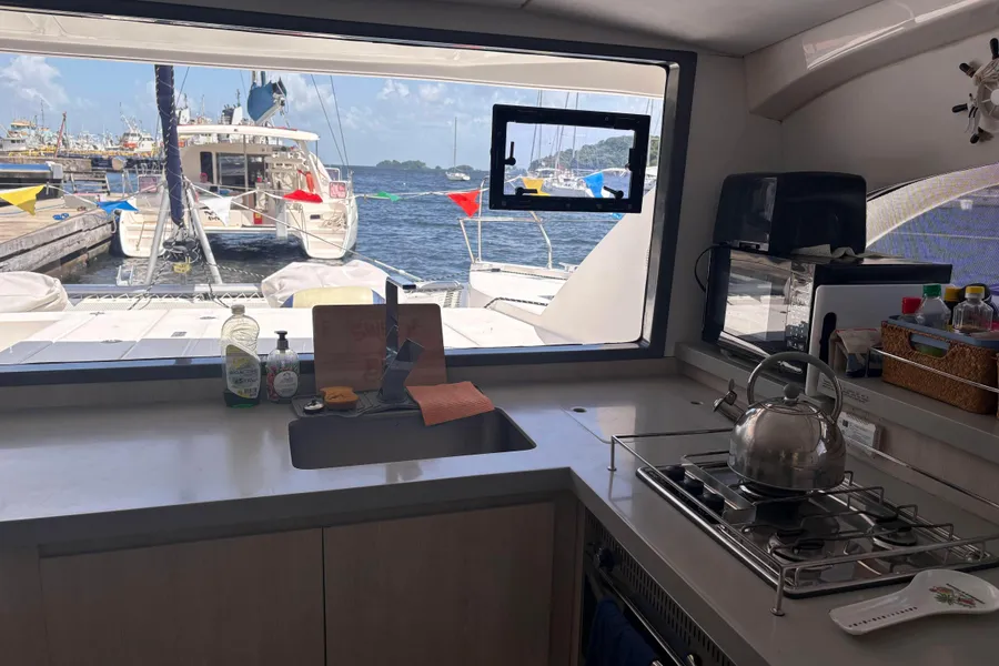Leopard 404 for sale. It is a rare occasion in the pre-owned yacht market to find a vessel that requires no further work or expenditure before she can be enjoyed. Sweet 2 Bad, a 2017 model Leopard 40’ Sailing Catamaran is one such exception.