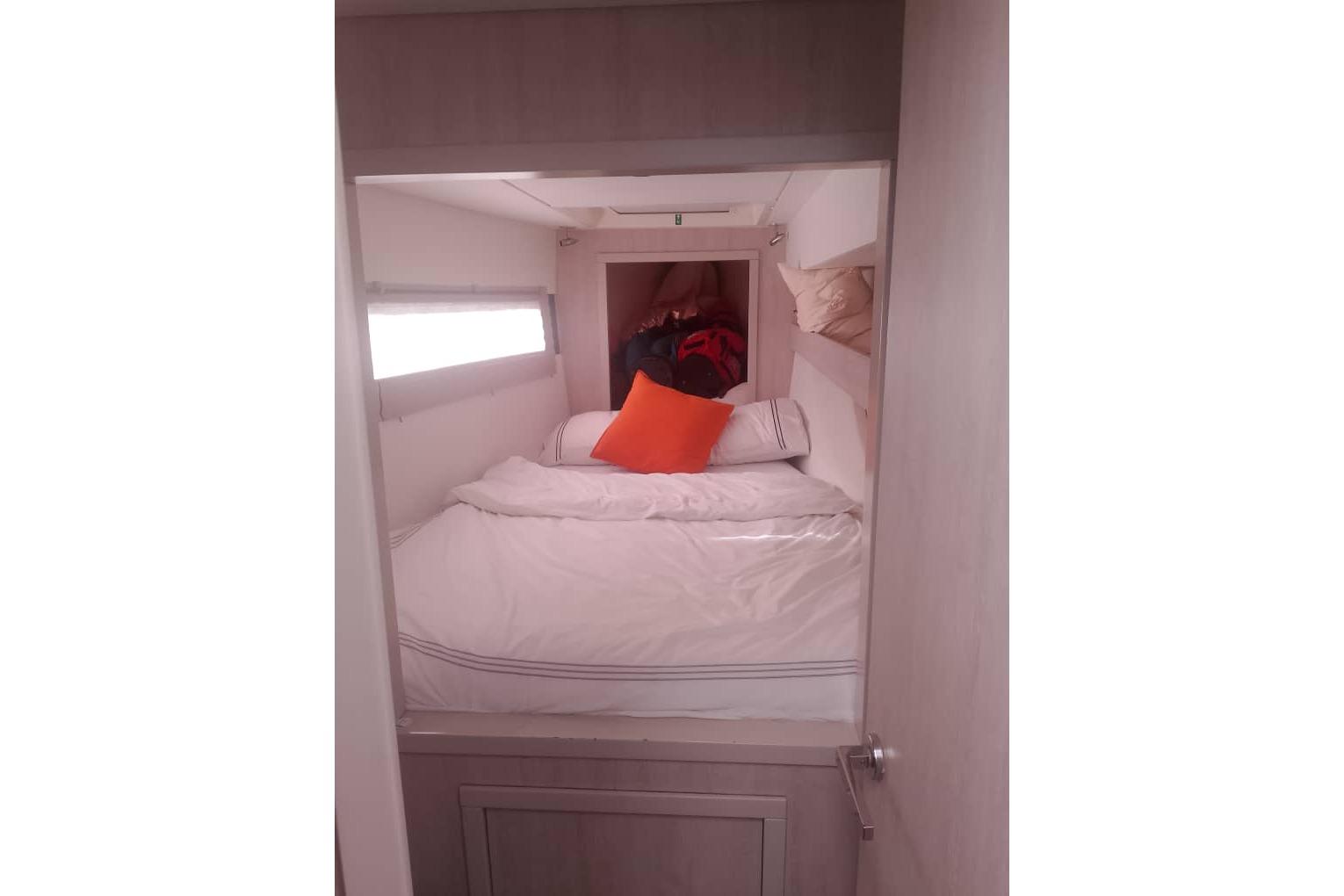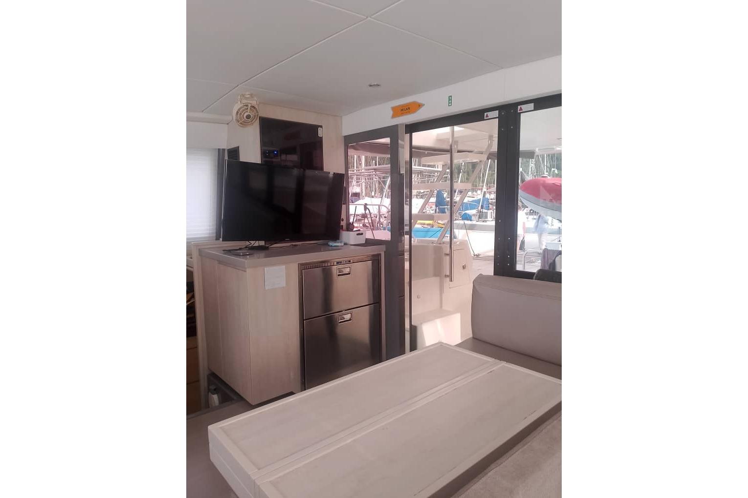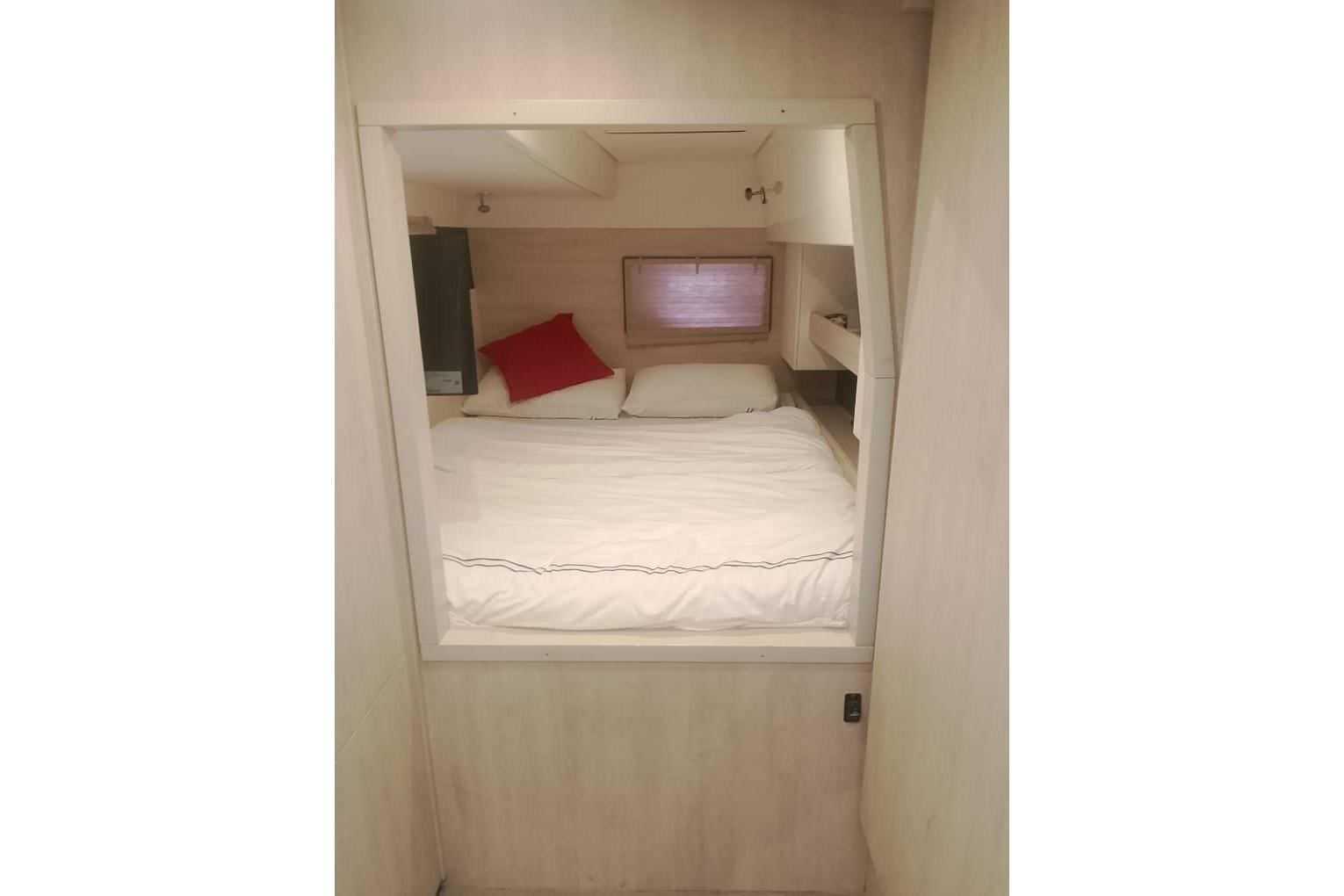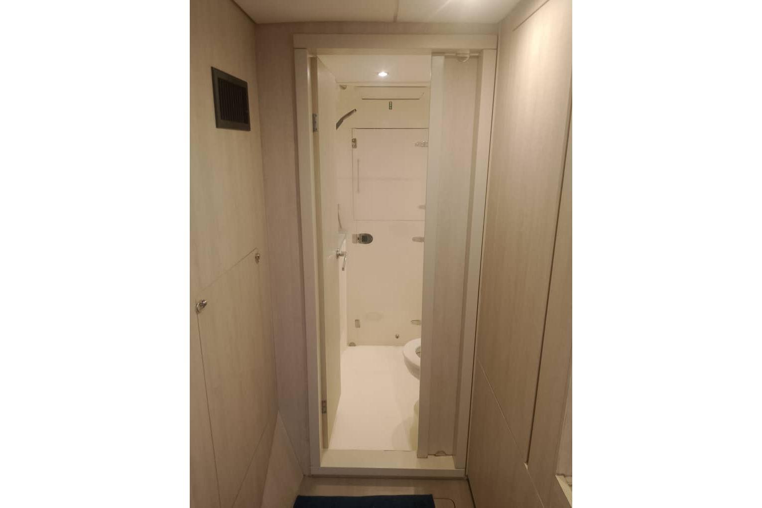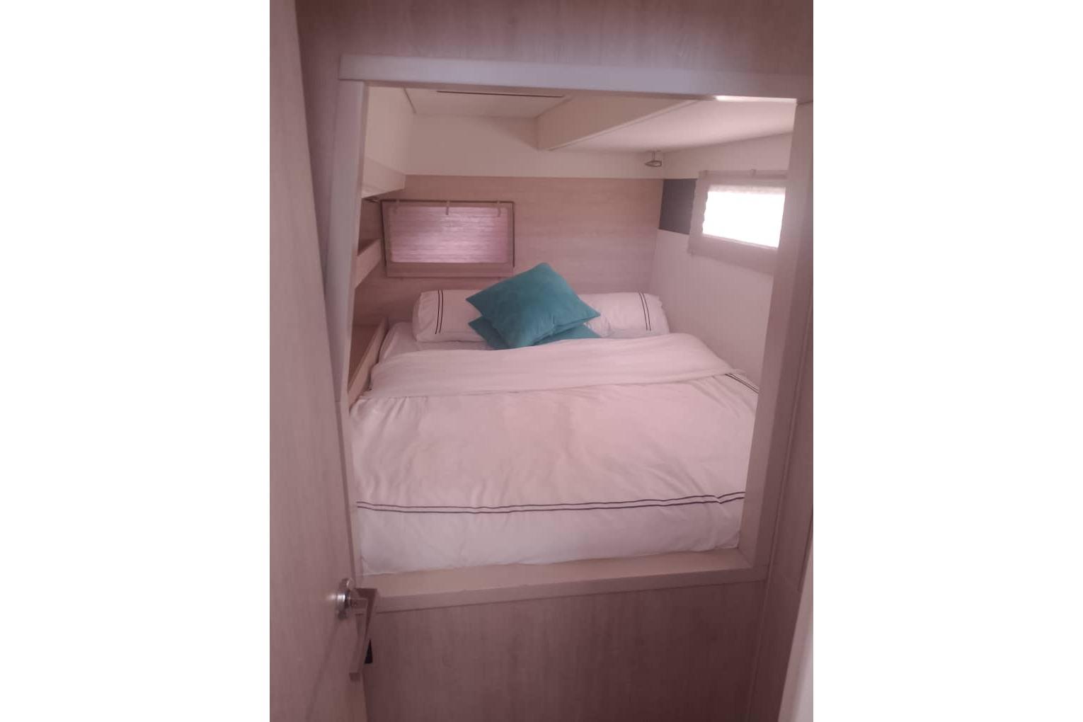 One of its standout features is the innovative flybridge, which offers panoramic views, ample seating, and a helm station, creating a perfect space for socializing or enjoying open-air navigation. The wide beam ensures stability and provides generous living areas, including a bright saloon with large windows, a fully equipped galley, and multiple cabins with ensuite heads for privacy and convenience.