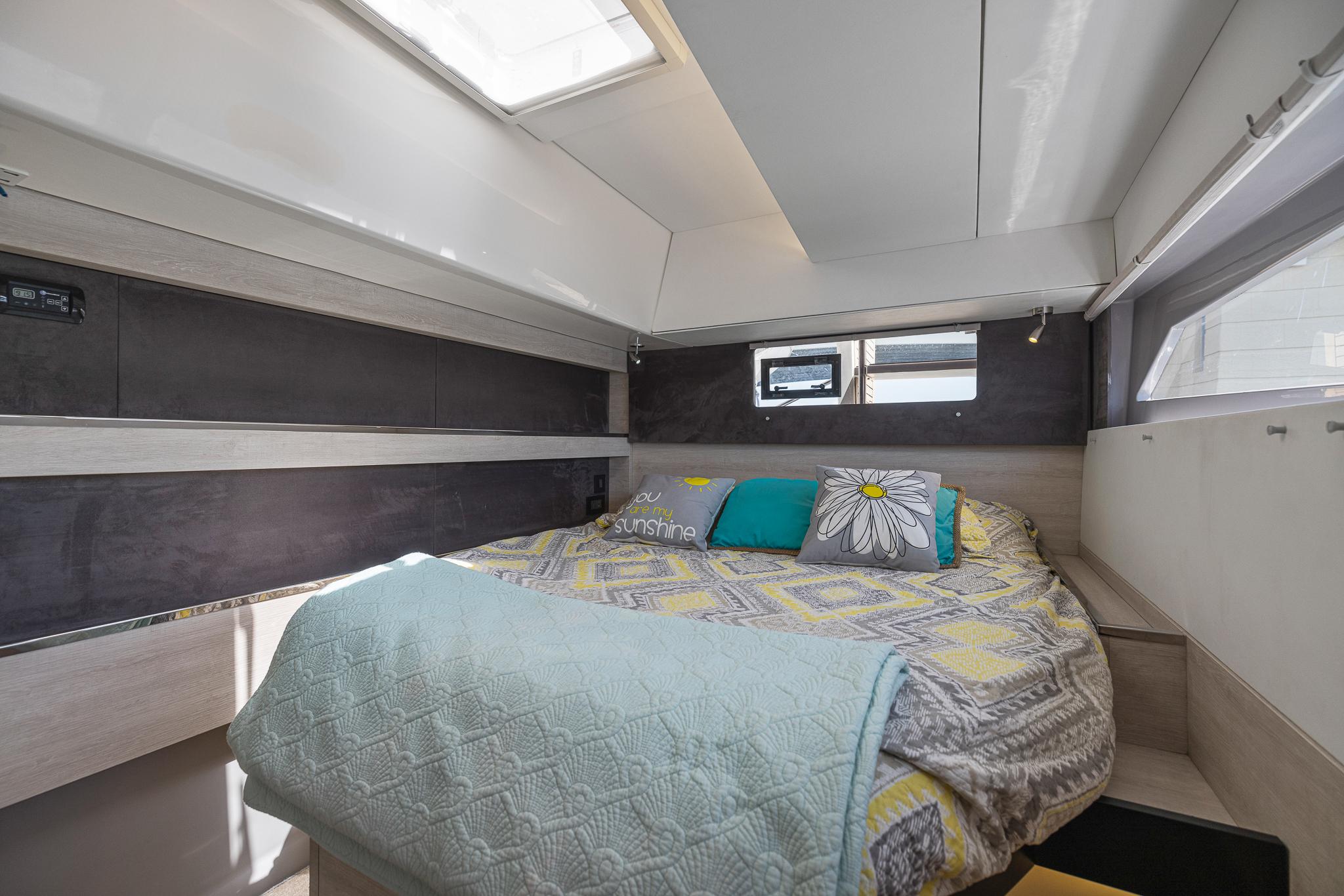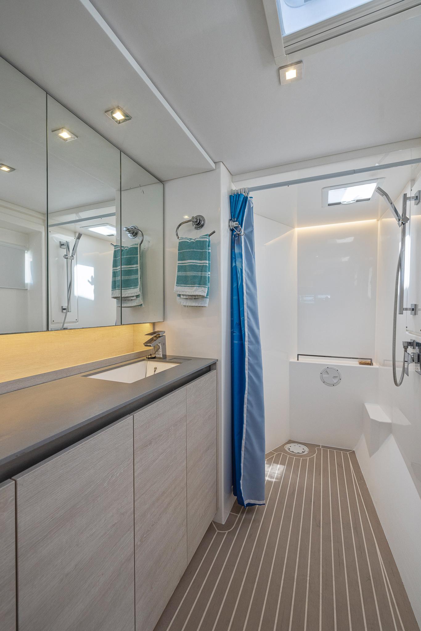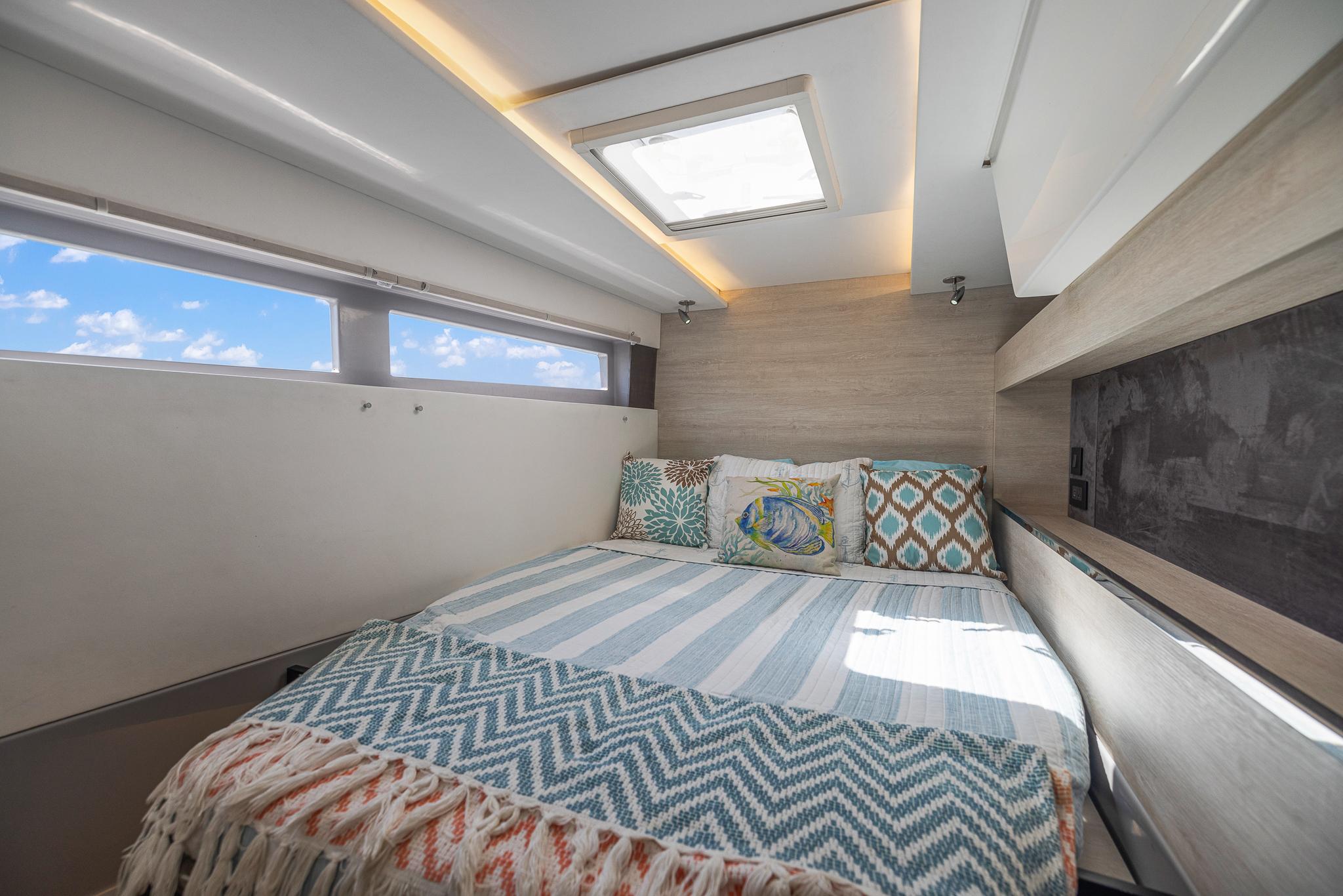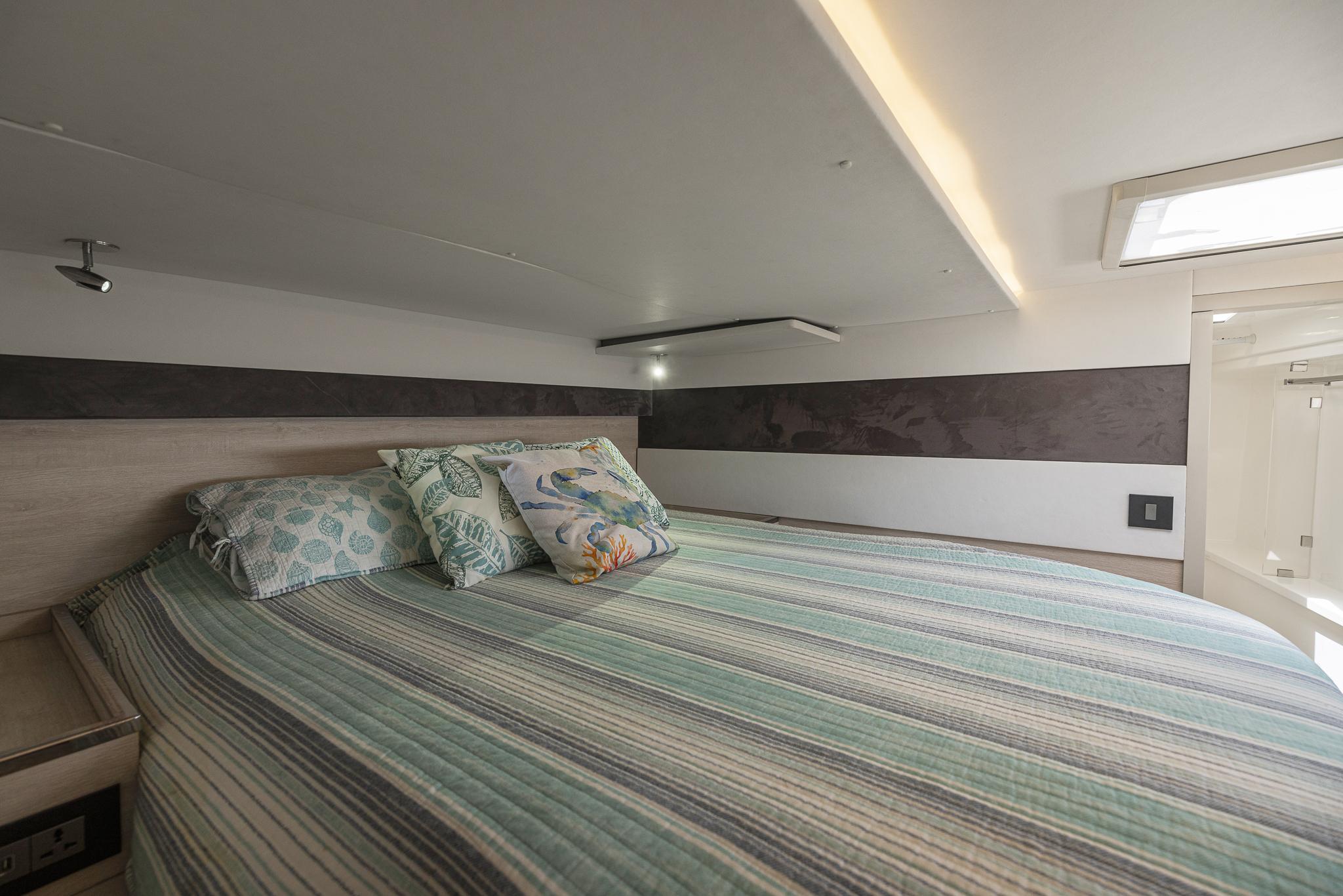 Alle Kabinenkonfigurationen verfügen über ein eigenes Bad mit eigenem Duschbereich. Die Kabinen sind mit Inselkojen ausgestattet, die von beiden Seiten zugänglich sind und ein heimeliges Ambiente schaffen. Es gibt auch einen Hauswirtschaftsraum für das Leben an Bord und eine umfangreiche Optionsliste, die für ultimative Wohnlichkeit und Komfort sorgt.