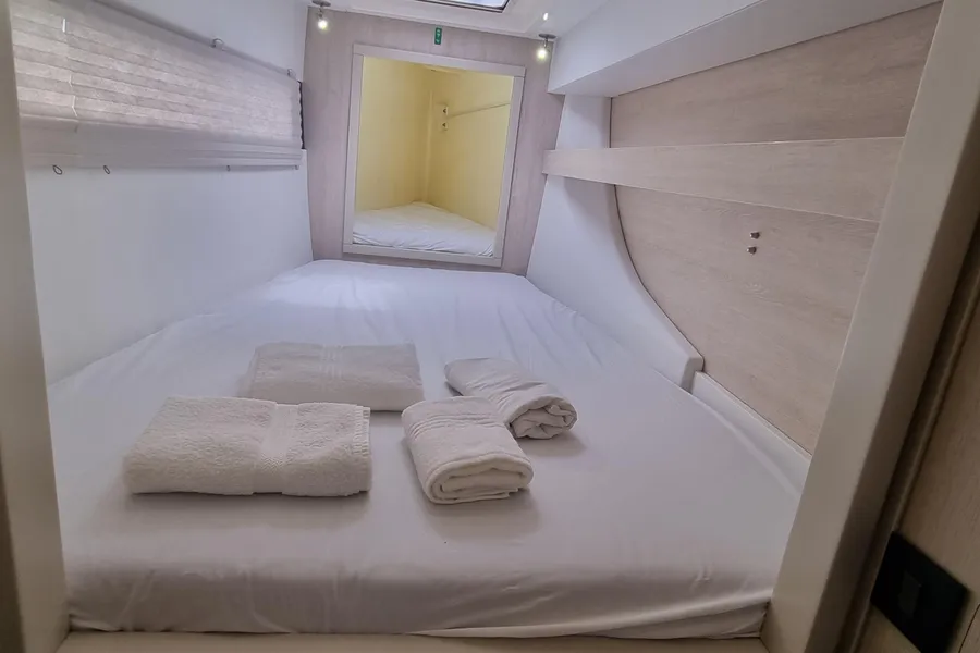 Double berths: Forward bunks (57in / 1.45m x 82in / 2.10m)