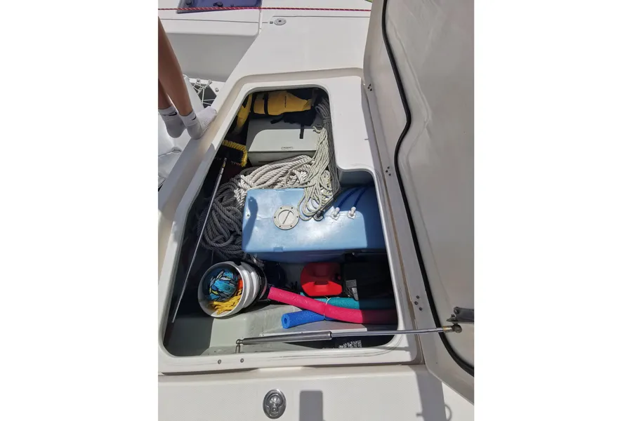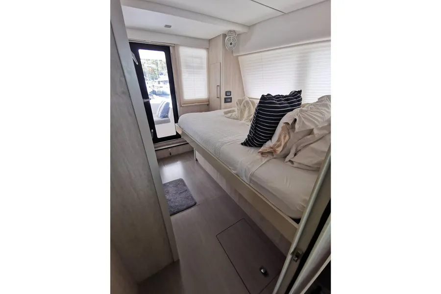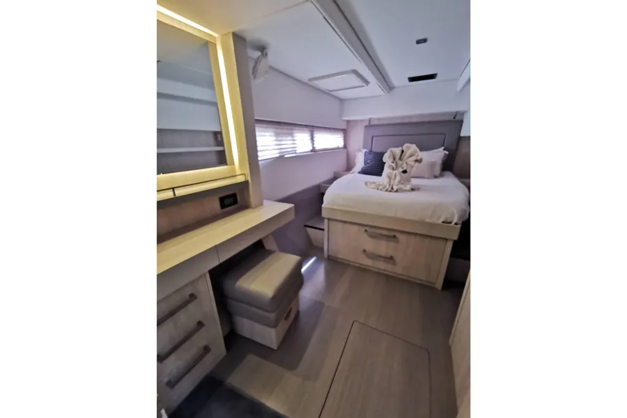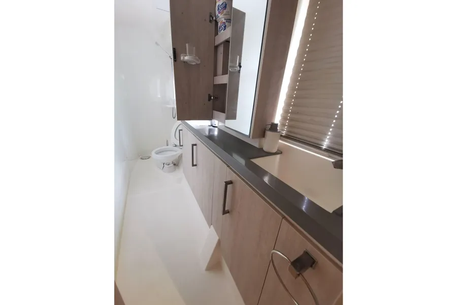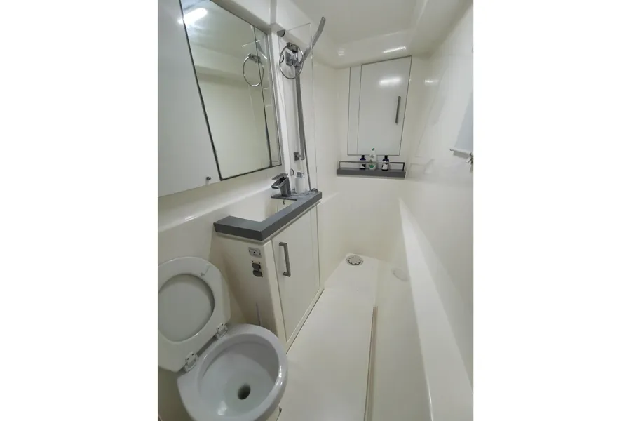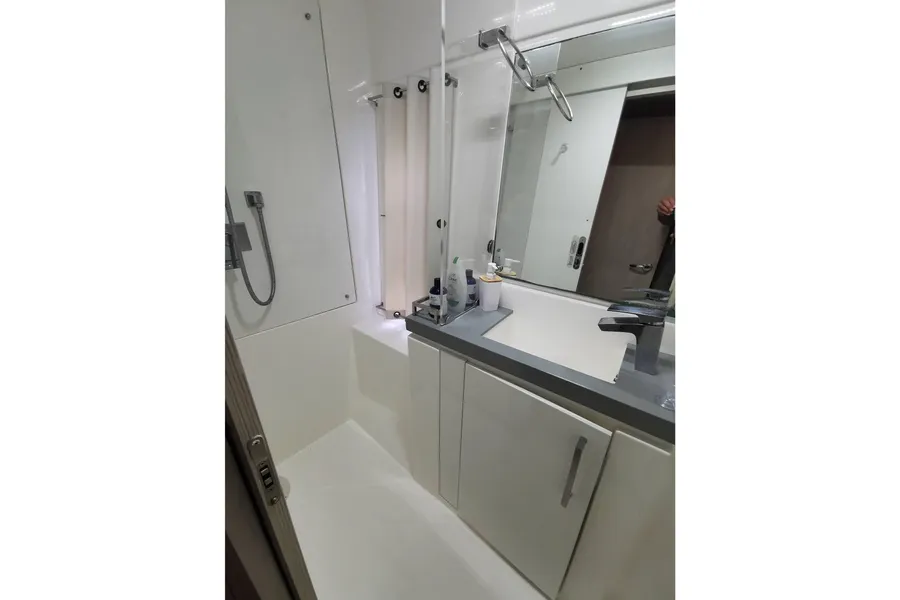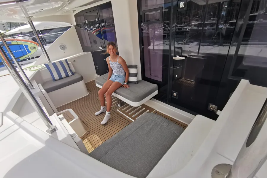 Down below, you’ll find spacious, teak-style decking, state-of-the-art equipment and air-conditioning, making this yacht an unrivalled leader in cruising comfort.