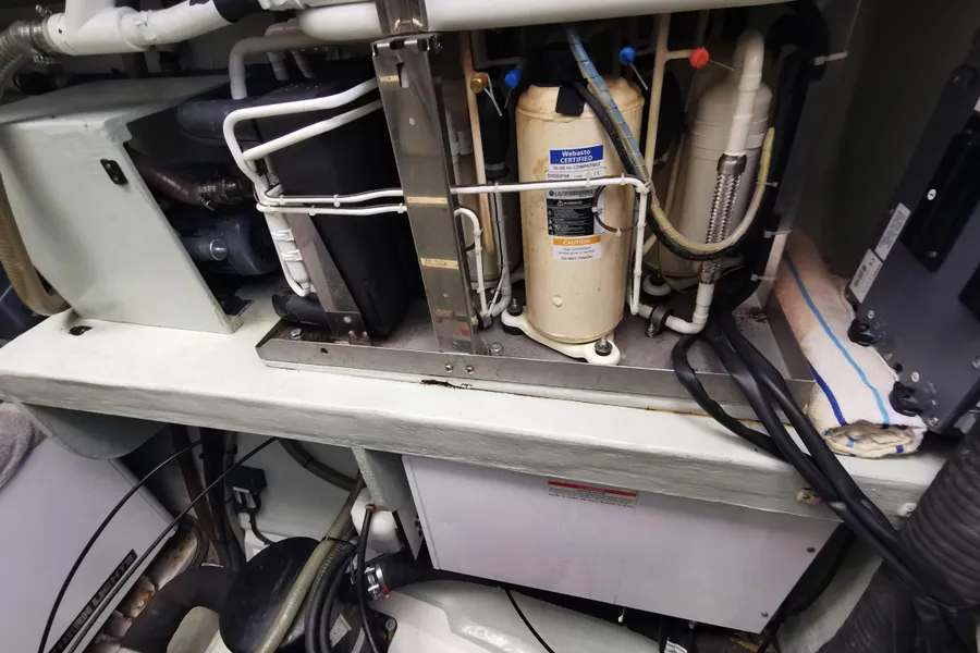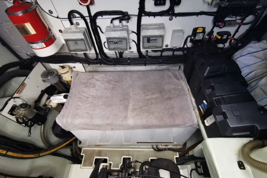 Inside the 5800, you’ll discover a well-appointed galley with a large refrigerator, 2-drawer freezer, 4-burner gas cooker with oven & broiler, and microwave, offering the tools necessary for dining afloat. Meals can be enjoyed in the saloon, which includes plush wrap-around seating and a wet bar. The yacht also comes complete with 46” flat screen TV/DVD player, onboard WiFi, Apple TV, CD stereo with MP3 connection, as well as cockpit and fly bridge speakers.