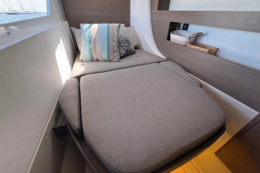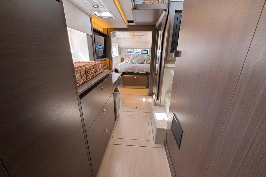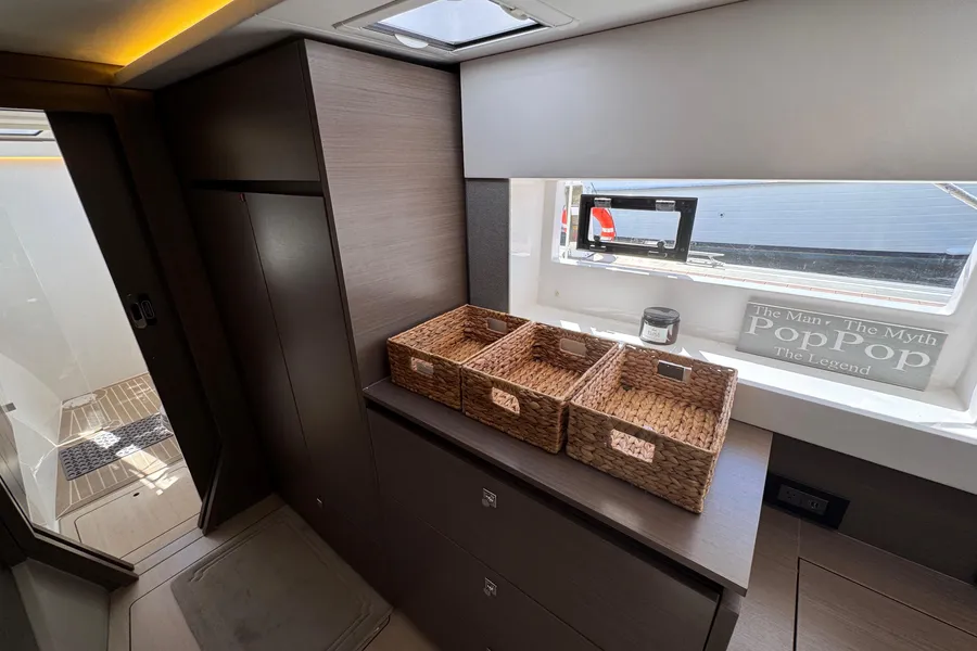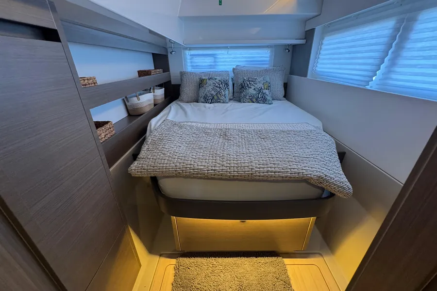 The interior design has adopted the styling that was developed for the award-winning Leopard 53 Powercat. With modern contrasts, indirect lighting, and classy finishes, the Leopard 42 brings more luxury and elegance to the Leopard sailboat range. All bunks are now island berths that allow access from both sides. With windows everywhere space permitted, the natural light is amplified.