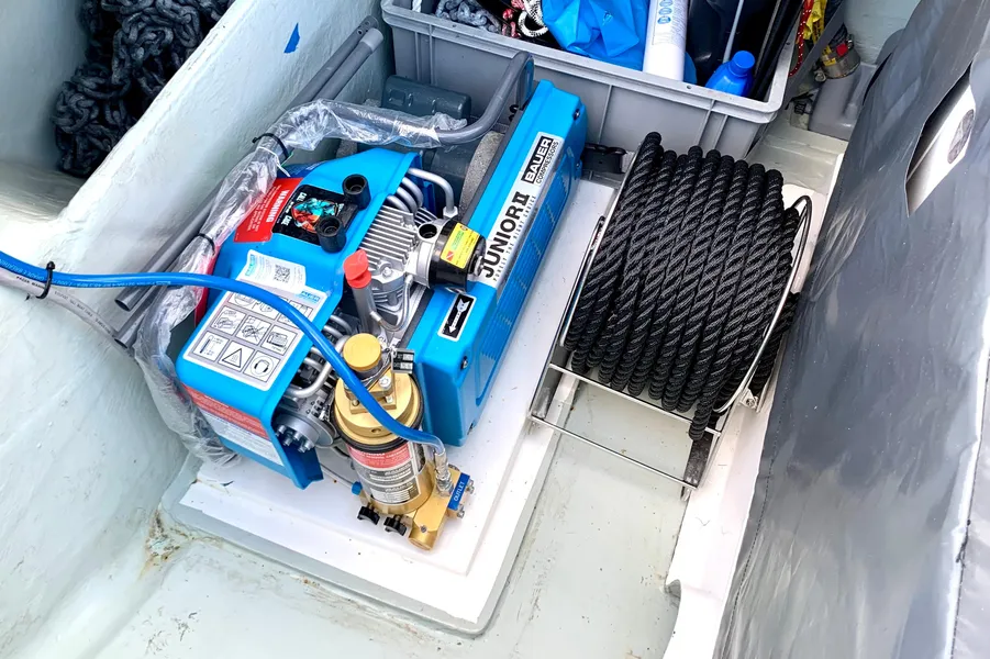 • Diving & Water: Bauer Junior II dive compressor with custom rack (2022, improved 2025), Bluewater Legend watermaker (120 L/hr)