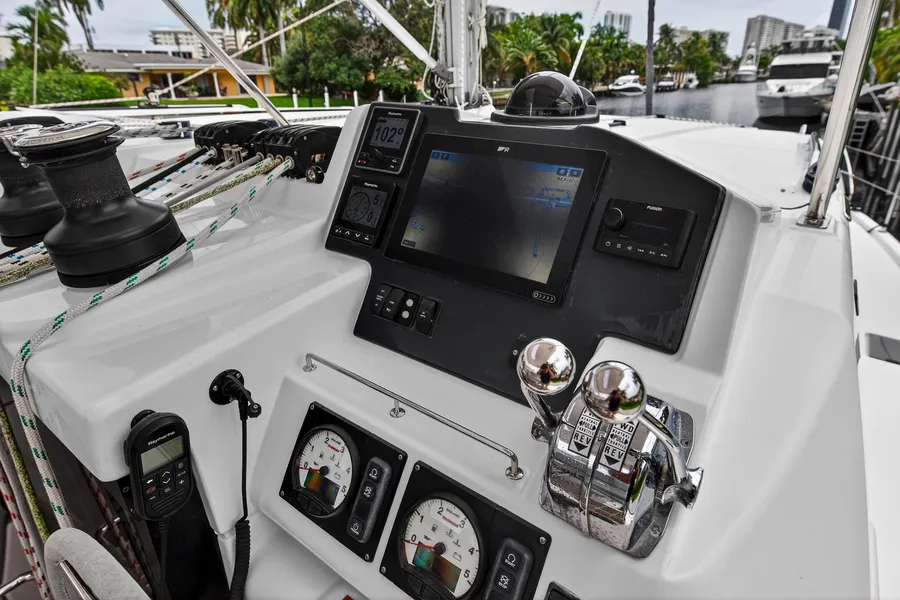 – Upgraded electronics package to include 12″ Axiom chartplotter, color radar, AIS, Autopilot, Tri-data wind, speed, and depth transducers, rear camera, and Fusion stereo with upgraded speakers to 6