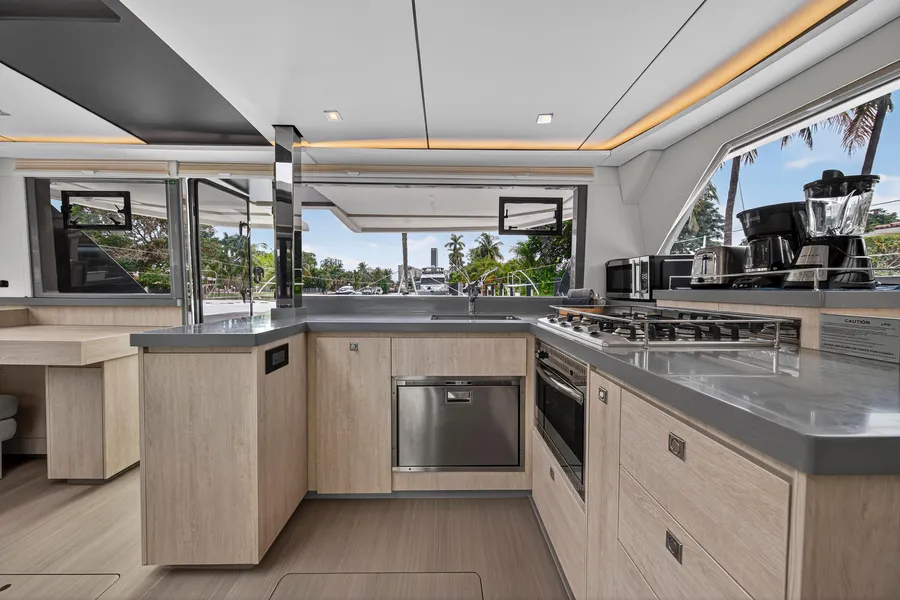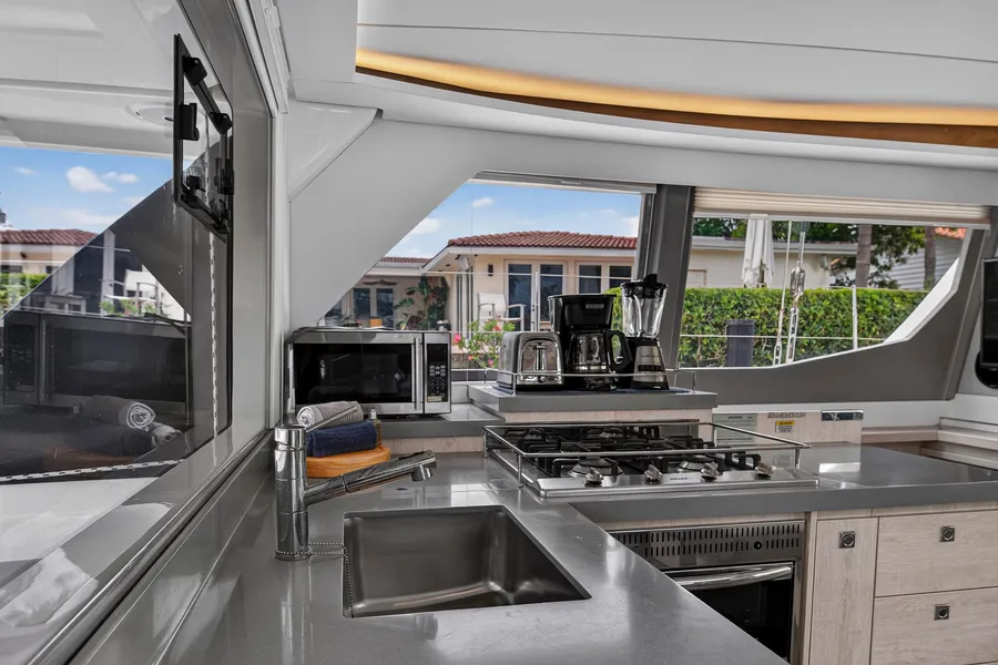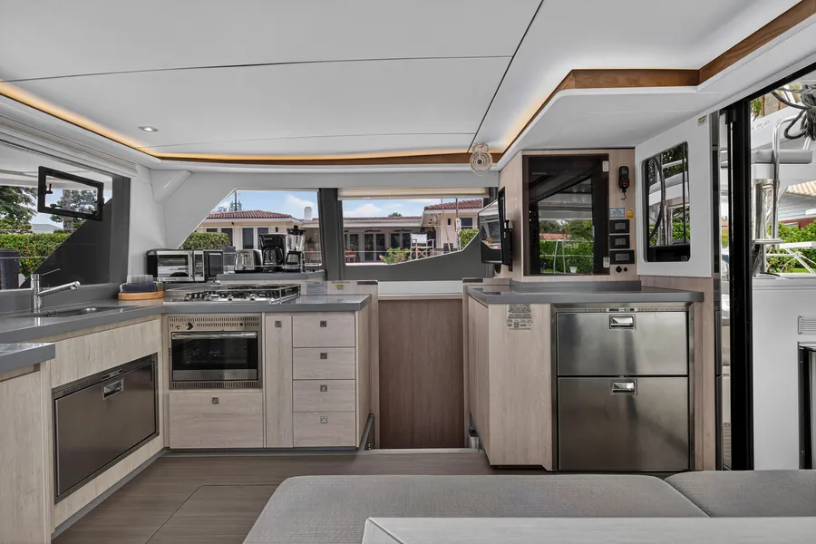 In summary, the Leopard 45 Sailing Catamaran delivers uncompromised, exceptional build quality throughout, new, sleek styling, a sensible and practical layout, sailing comfort across all sea states, and features innovative technologies and multiple entertainment areas.