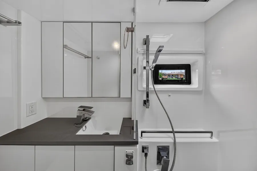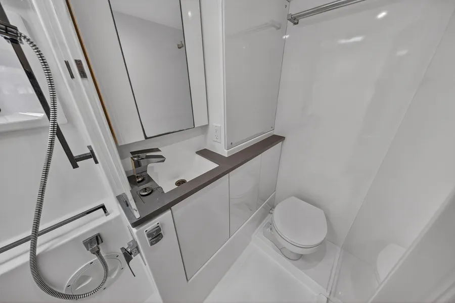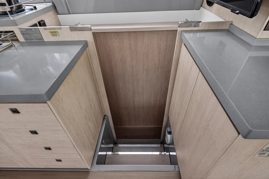 – Upgraded refrigeration includes standard fridge / freezer combo with additional fridges under sink and aft cockpit