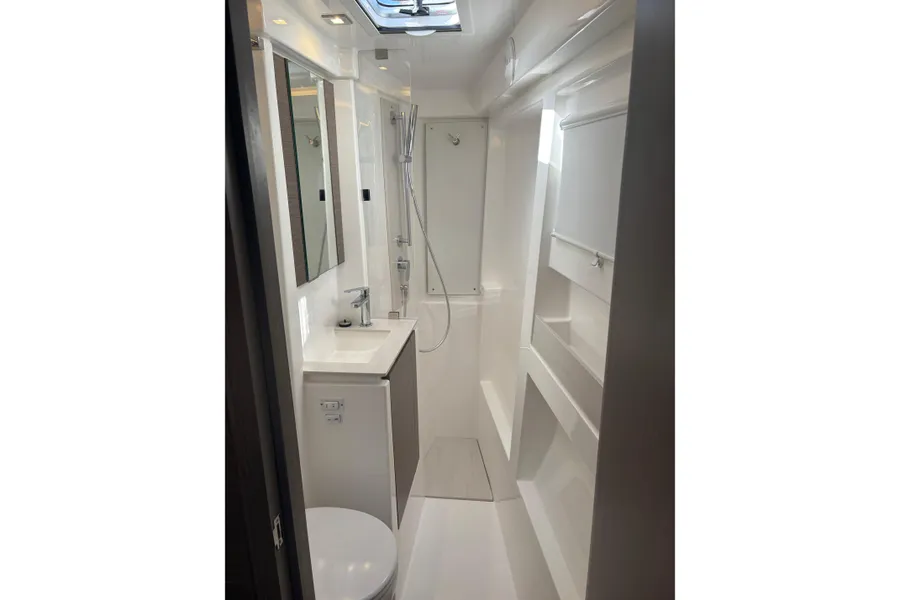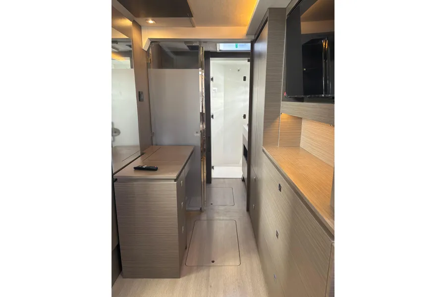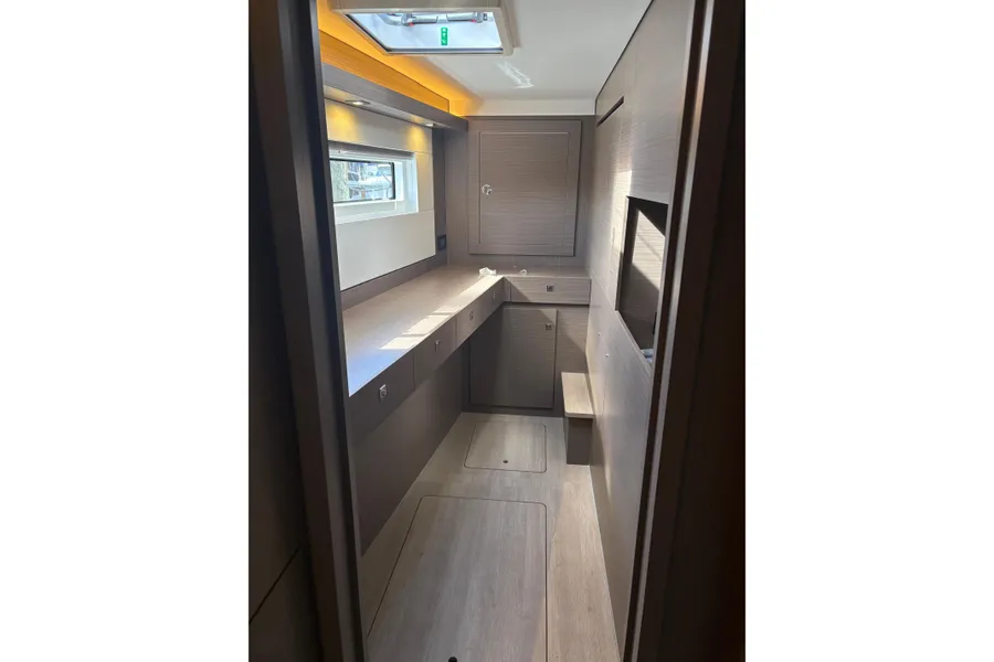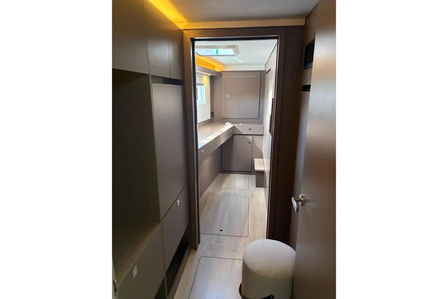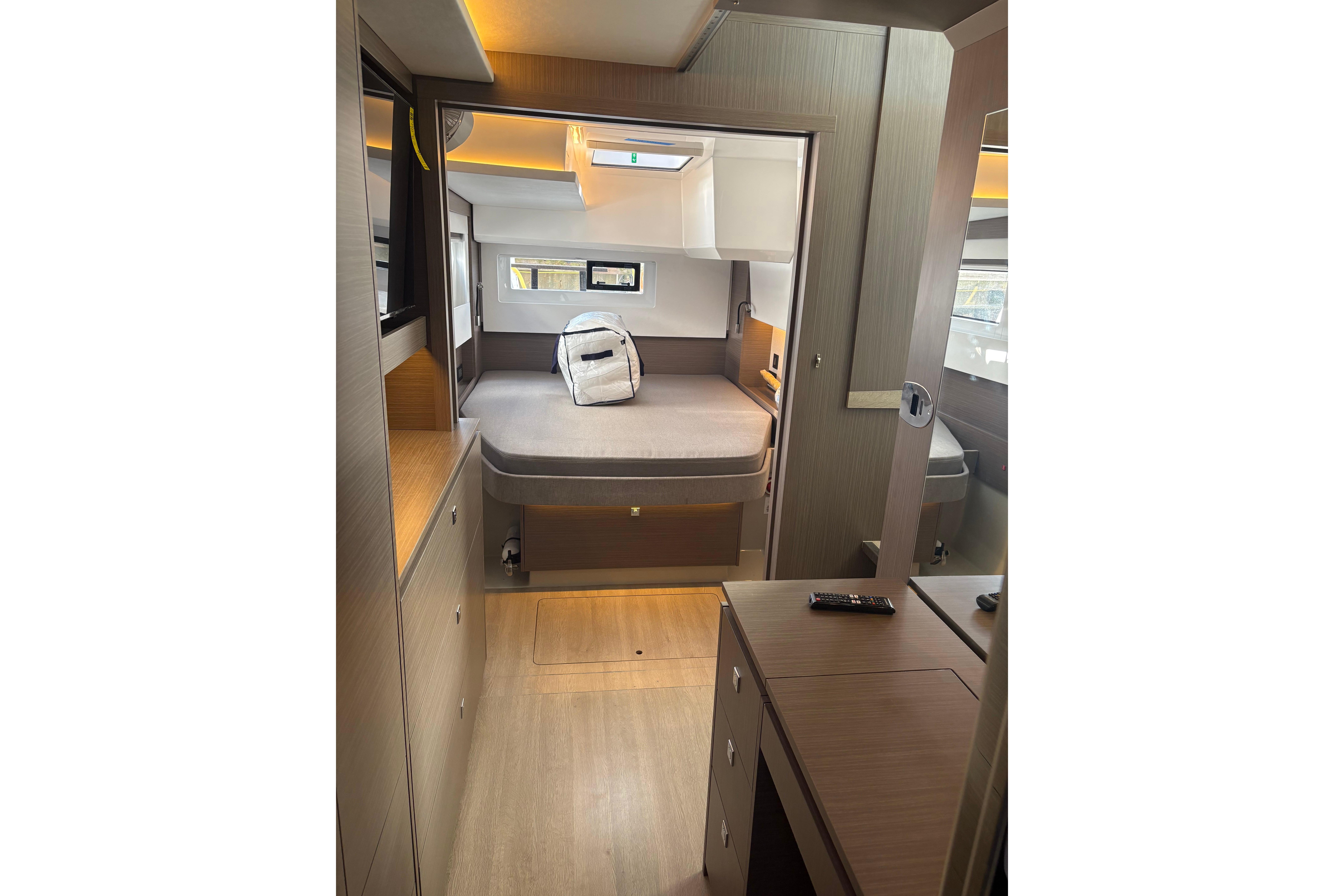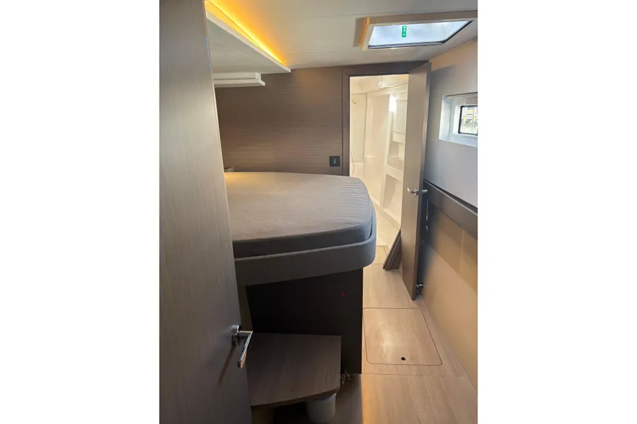 Unter Beibehaltung der Kernelemente, die den Leopard 45 so beliebt gemacht haben, führt der Leopard 46 zahlreiche Innovationen ein, um Komfort, Bequemlichkeit und Nachhaltigkeit zu verbessern. Das Layout wurde verfeinert, um eine nahtlose Integration zwischen dem hinteren Cockpit und dem Salon zu ermöglichen, wodurch flexible Wohnbereiche entstehen. Durch den Wegfall der Skipperkabine wurde Platz für geräumigere Unterkünfte geschaffen. Zur Auswahl stehen drei Kabinen plus Hauswirtschaftsraum, ein Vier-Kabinen-Layout oder fünf Doppelkabinen, alle mit eigenem Bad/Dusche.