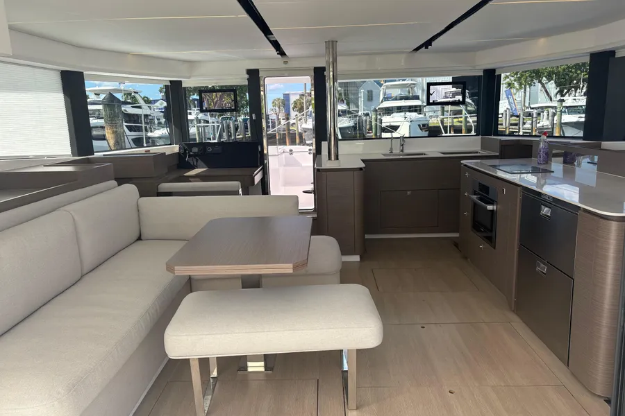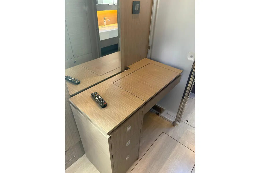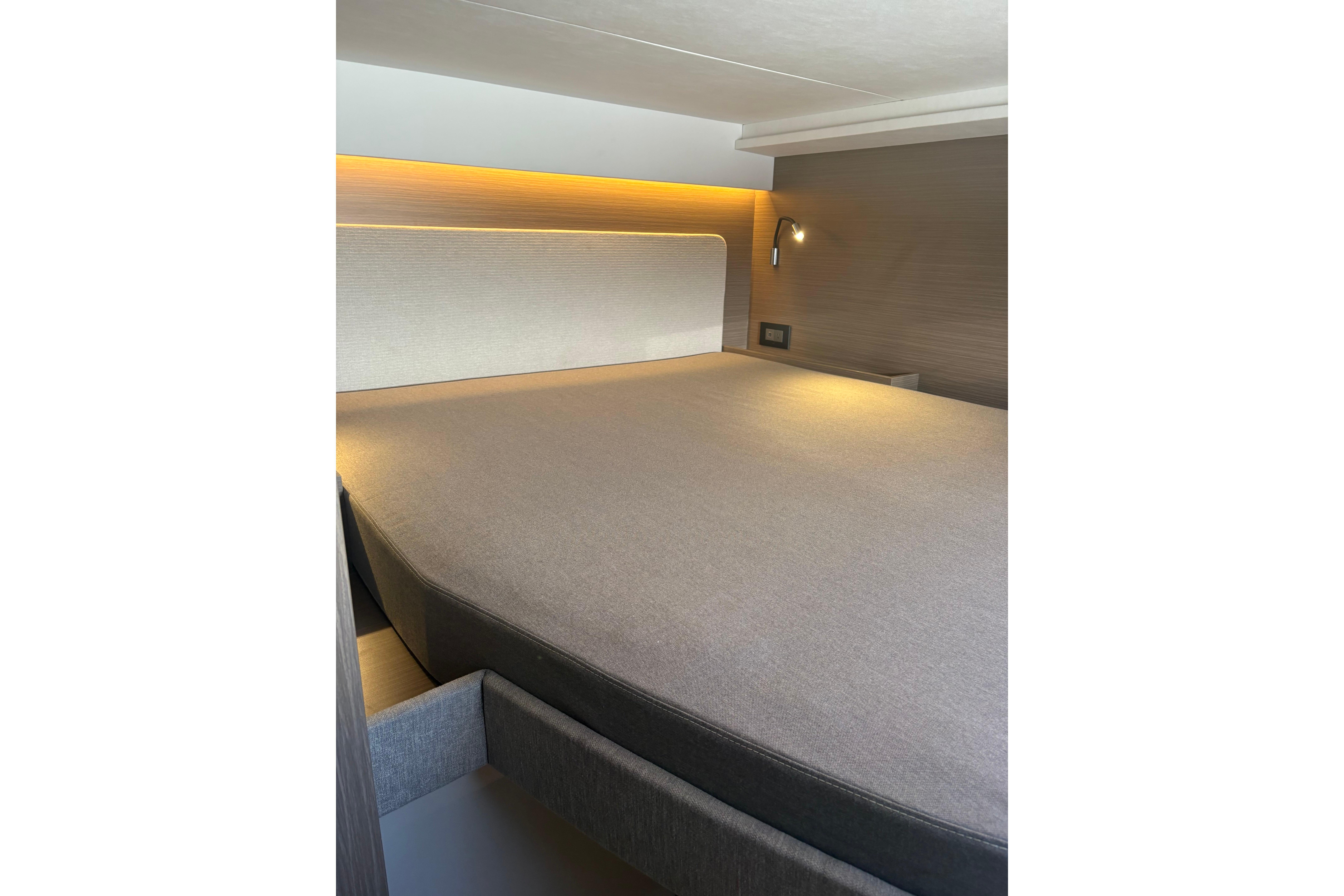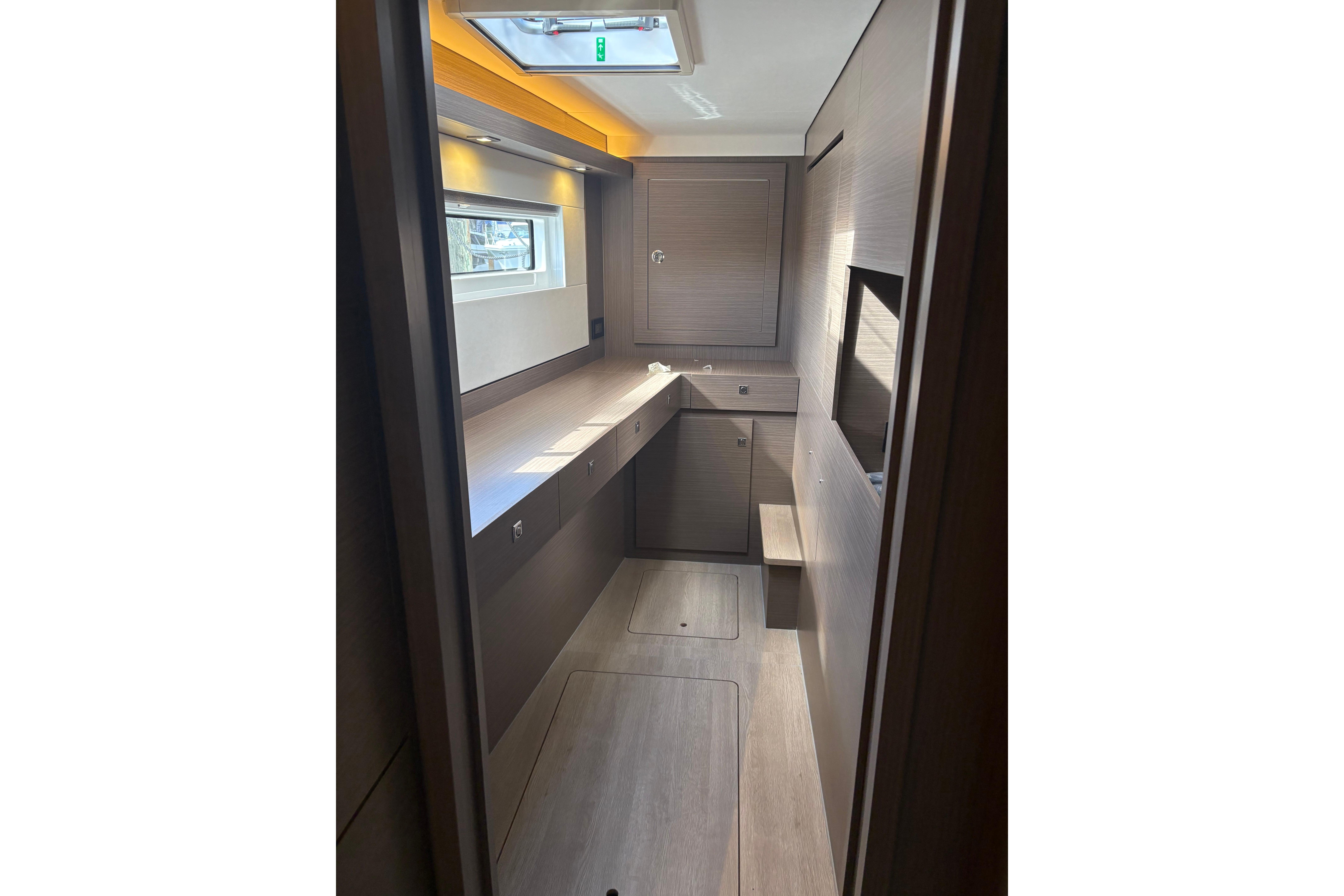 Unter Beibehaltung der Kernelemente, die den Leopard 45 so beliebt gemacht haben, führt der Leopard 46 zahlreiche Innovationen ein, um Komfort, Bequemlichkeit und Nachhaltigkeit zu verbessern. Das Layout wurde verfeinert, um eine nahtlose Integration zwischen dem hinteren Cockpit und dem Salon zu ermöglichen, wodurch flexible Wohnbereiche entstehen. Durch den Wegfall der Skipperkabine wurde Platz für geräumigere Unterkünfte geschaffen. Zur Auswahl stehen drei Kabinen plus Hauswirtschaftsraum, ein Vier-Kabinen-Layout oder fünf Doppelkabinen, alle mit eigenem Bad/Dusche.