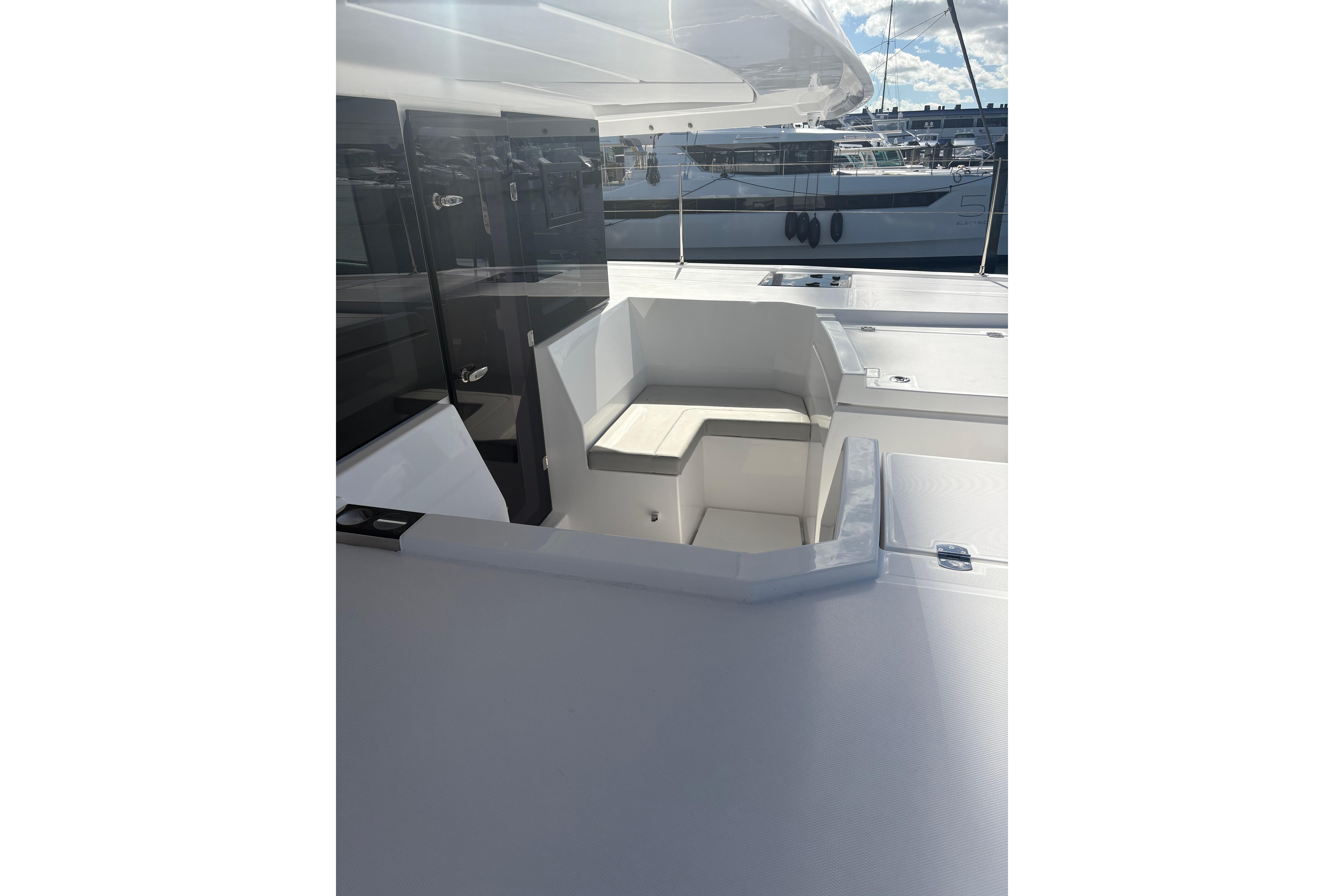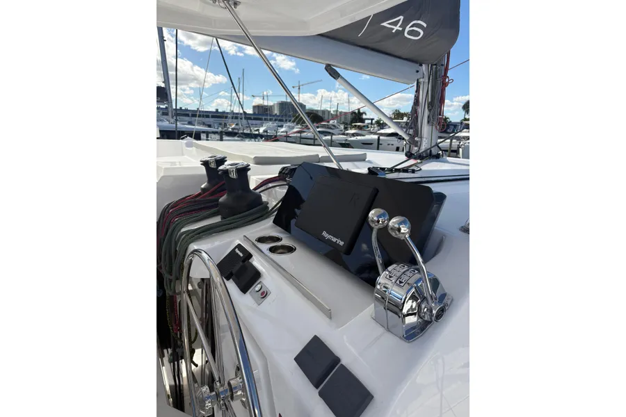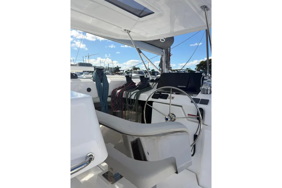 Die abgestuften Rümpfe und das leistungsstarke Rigg mit überlappender Genua sorgen für ein hervorragendes Handling bei allen Windverhältnissen. Der geschützte Steuerstand ist für das Einhandsegeln auf hoher See ausgelegt und damit ideal für Langstreckentörns.