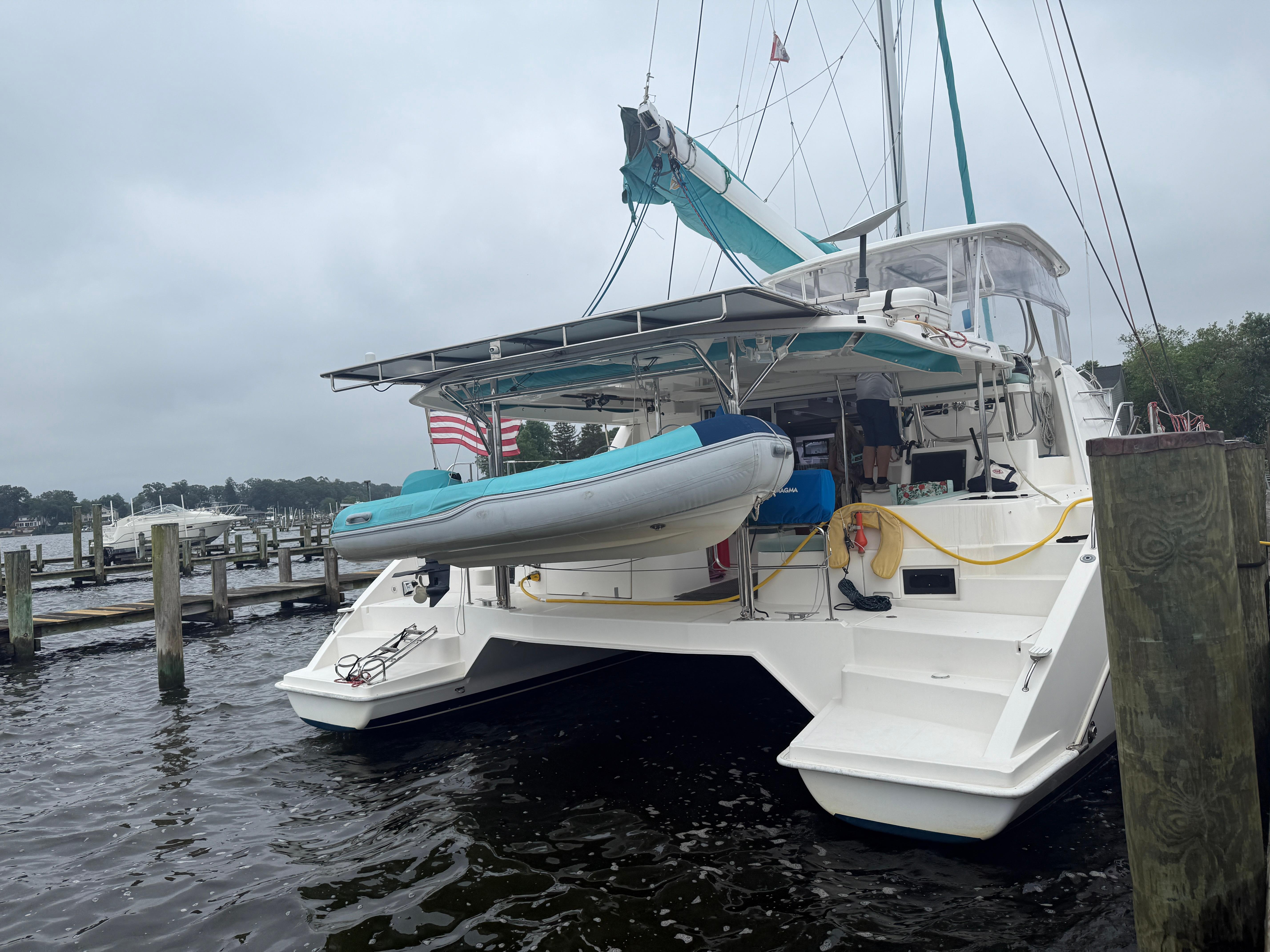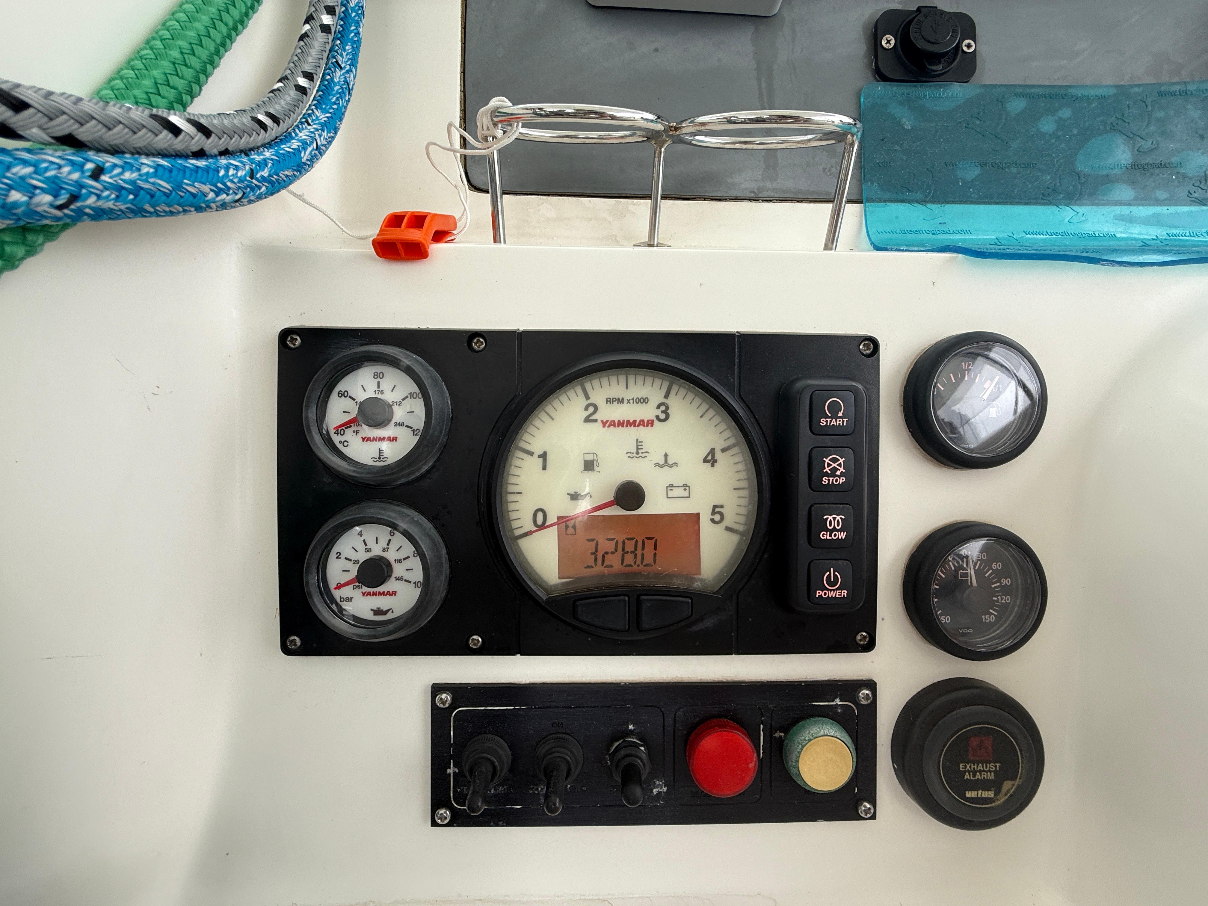 Nouvelle peinture de fond, vitesse d’hélice, joints d’entraînement de voile, nouveaux zincs, graisse Max Prop, robinet à bille d’eau brute Yanmar, cire sur les flancs, changement de l’huile moteur et des filtres à carburant, vérification des hélices