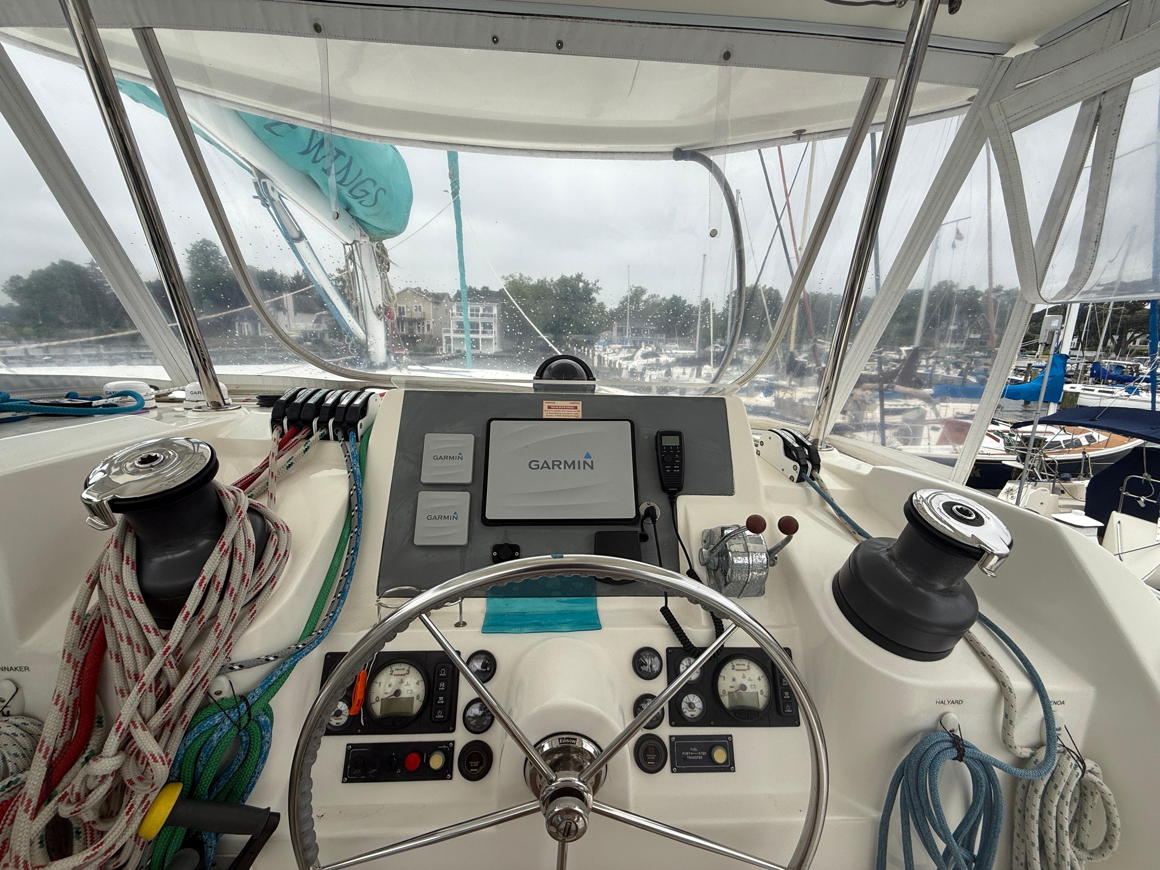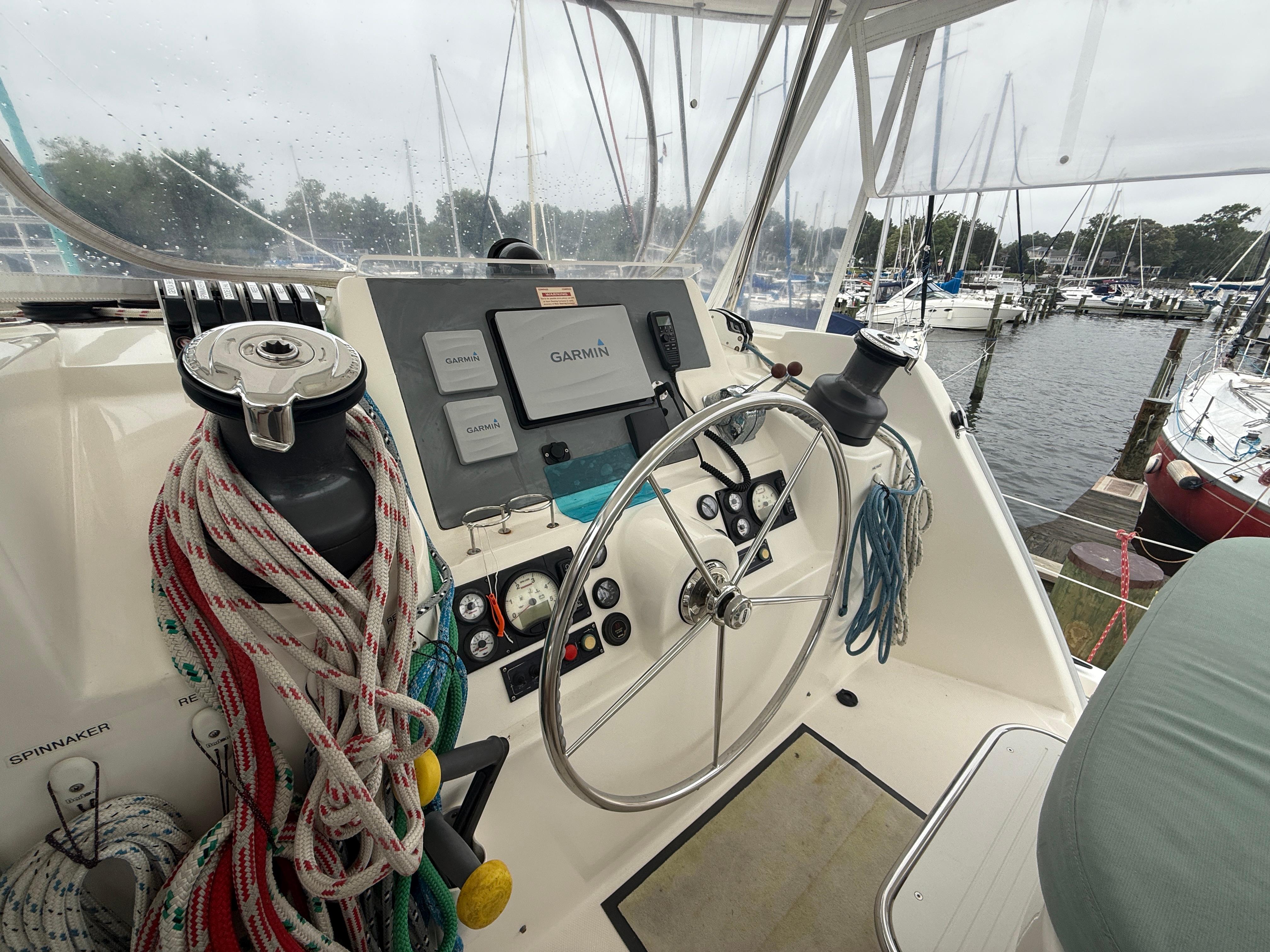 Toute l’électronique Garmin neuve : Traceur Garmin 7612x 12″, g-Wind, pilote automatique, radar GMR 18XHD, radio VHF, sonar orienté vers l’avant Panoptix v6.50.