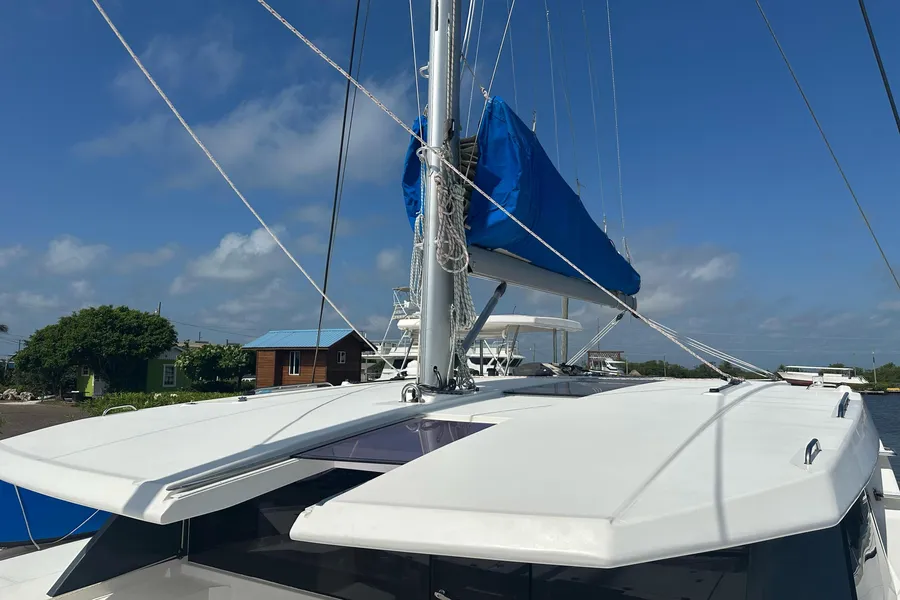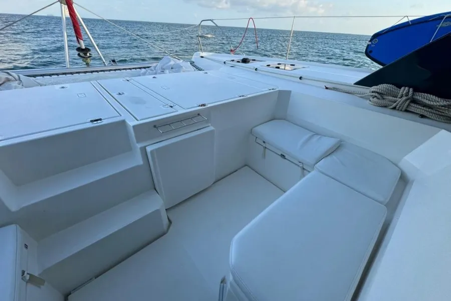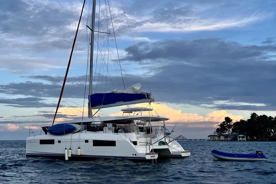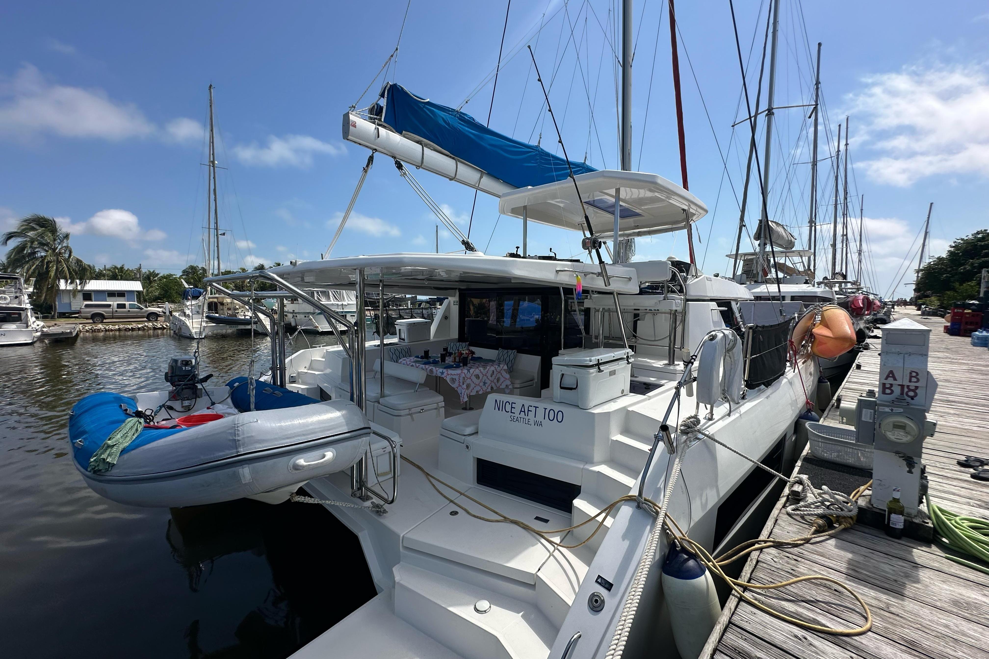 The popular Leopard 45 integrating direct access to a covered forward and aft cockpits, an elevated helm with hardtop at the coachroof blends luxury, performance, comfort and style. Located in Belize, a premier world sailing destination, this 4-cabin catamaran for sale has been cared for and maintained to a high level in crewed charter. Nice Aft Too features four air-conditioned queen cabins, each with a private en-suite head, accommodating 8 plus an additional guest or crew in the port forepeak with head on starboard.  With Raymarine electronics and Garmin forward-facing camera, 2022 new cushions throughout, 2x solar panels, generator and large fridge & freezer to start enjoying pristine waters right away.