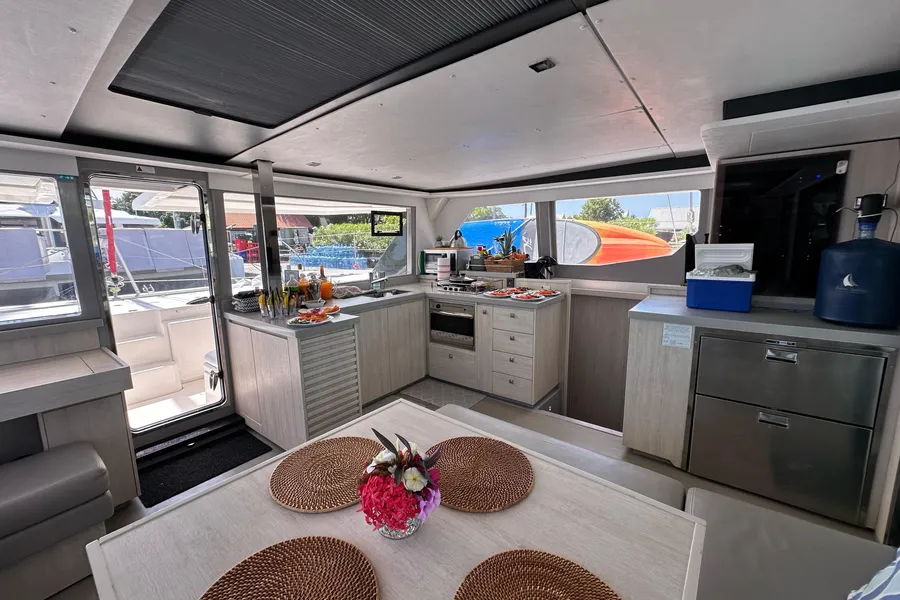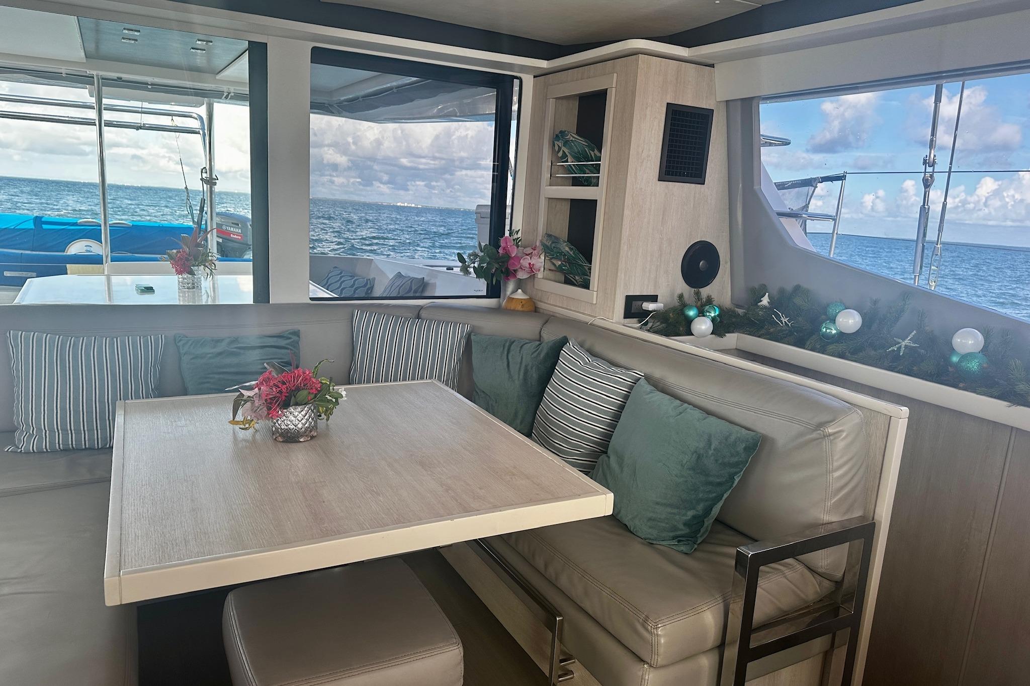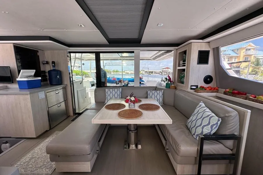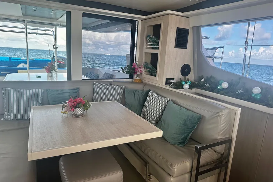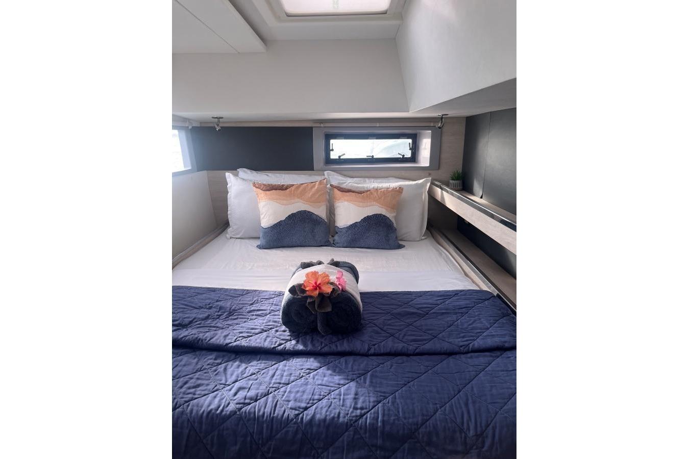 The popular Leopard 45 integrating direct access to a covered forward and aft cockpits, an elevated helm with hardtop at the coachroof blends luxury, performance, comfort and style. Located in Belize, a premier world sailing destination, this 4-cabin catamaran for sale has been cared for and maintained to a high level in crewed charter. Nice Aft Too features four air-conditioned queen cabins, each with a private en-suite head, accommodating 8 plus an additional guest or crew in the port forepeak with head on starboard.  With Raymarine electronics and Garmin forward-facing camera, 2022 new cushions throughout, 2x solar panels, generator and large fridge & freezer to start enjoying pristine waters right away.