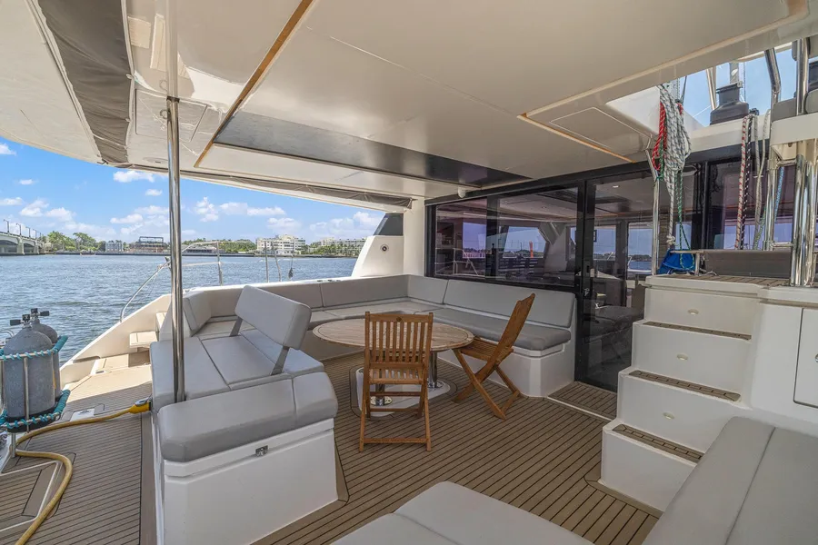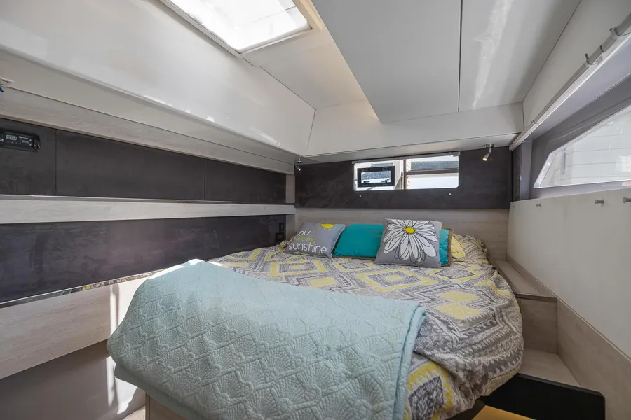 Replacing the 48, which is one of the best-selling Leopard Catamarans of all time, the Leopard 50 is a luxury sailing cat that has been tried and tested in the challenging ocean conditions in South Africa. Its performance, comfort and handling are typical of Leopard’s standard in building one of the best vessels in the world. The layout is practically designed for more indoor and outdoor living space. The salon features a traditional flybridge that also keeps the helm station well-protected behind the bulkhead and equally protected by a dedicated hard top. A key design feature on all Leopard Catamarans is direct access and visibility into the aft cockpit.