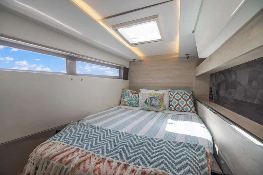Cabin configurations all feature private ensuite heads with their own designated shower area. Cabins feature island berths that allow access from both sides providing a setting that feels like home. There is also a utility room for live aboard and an extensive options list that provides the ultimate livability and comfort.