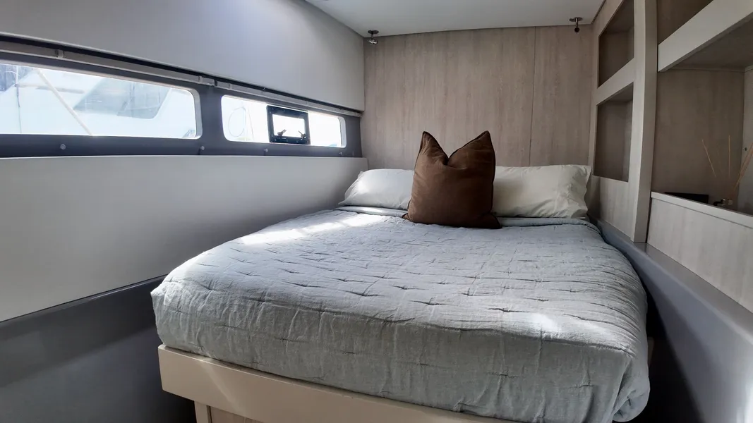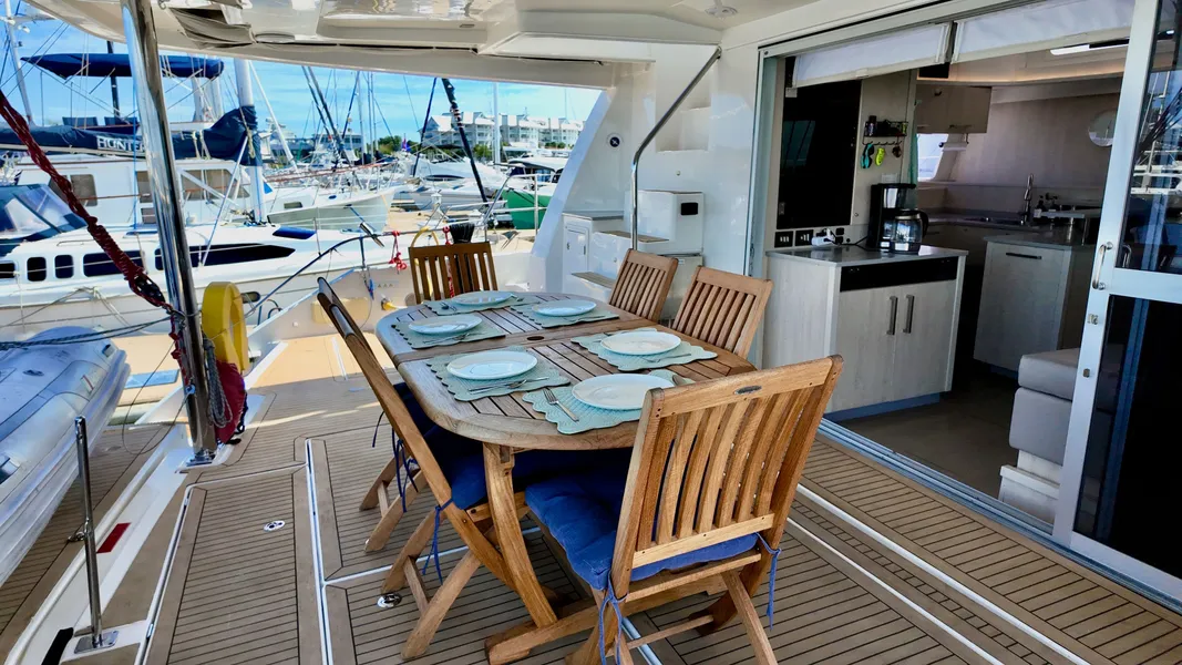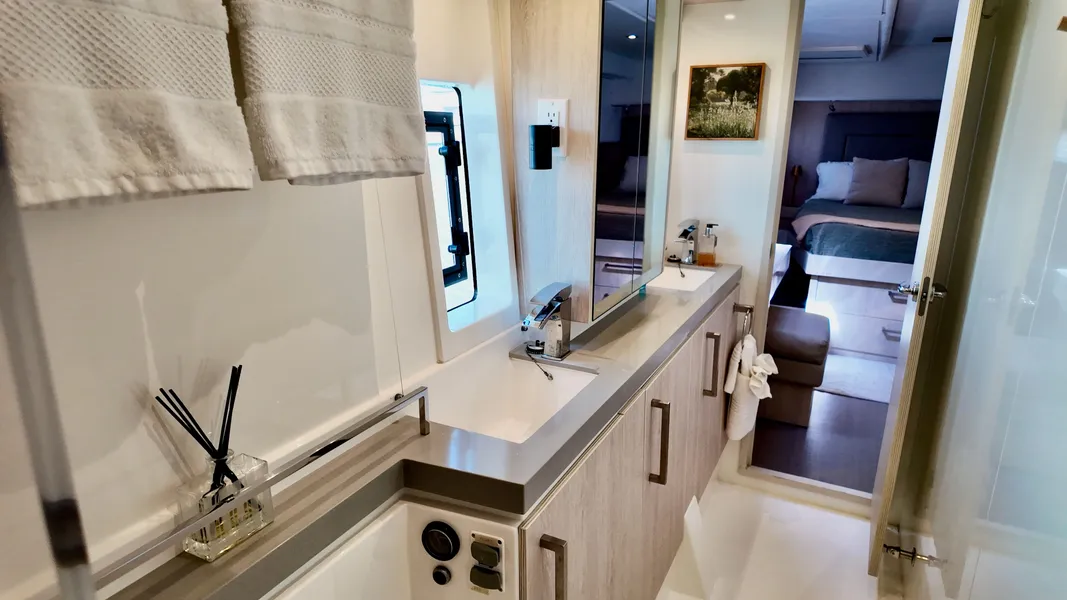 Welcome aboard PROMISCUOUS, a 2019 Leopard 58 sailing catamaran featuring six ensuite cabins and an award-winning design known for comfort, luxury accommodations, and beautifully designed gathering spaces throughout. Withdrawn from crewed charter in 2024, PROMISCUOUS underwent an extensive $350,000+ refit including new standing and running rigging, new transmissions, and comprehensive cosmetic, electronic, mechanical, and electrical upgrades to prepare her for private family cruising. The transformation is remarkable – today she feels more like a new Leopard 58 than one with a charter history.