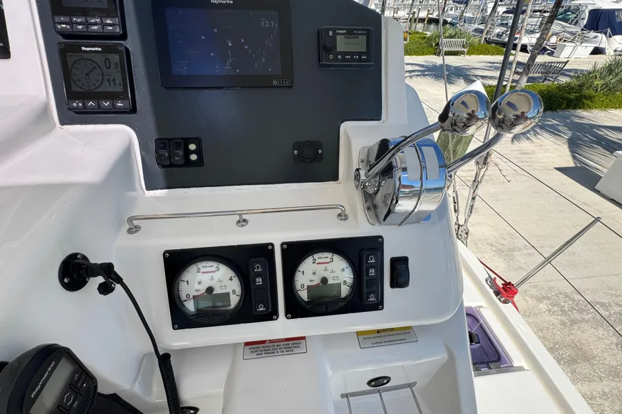 – Raymarine electronics package to include 9” Axiom chartplotter, Autopilot, depth and wind transducers, VHF radio, Fusion Stereo
