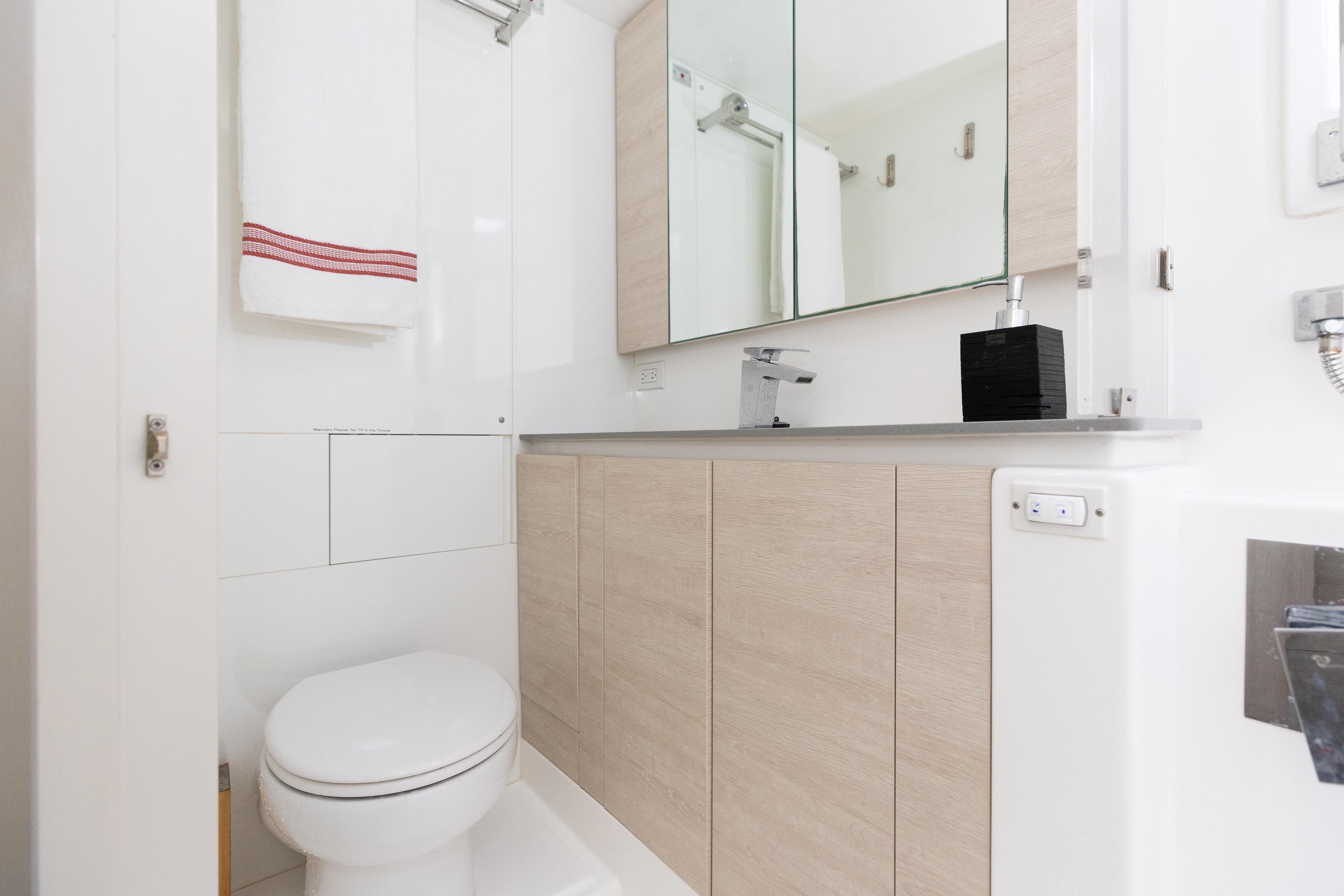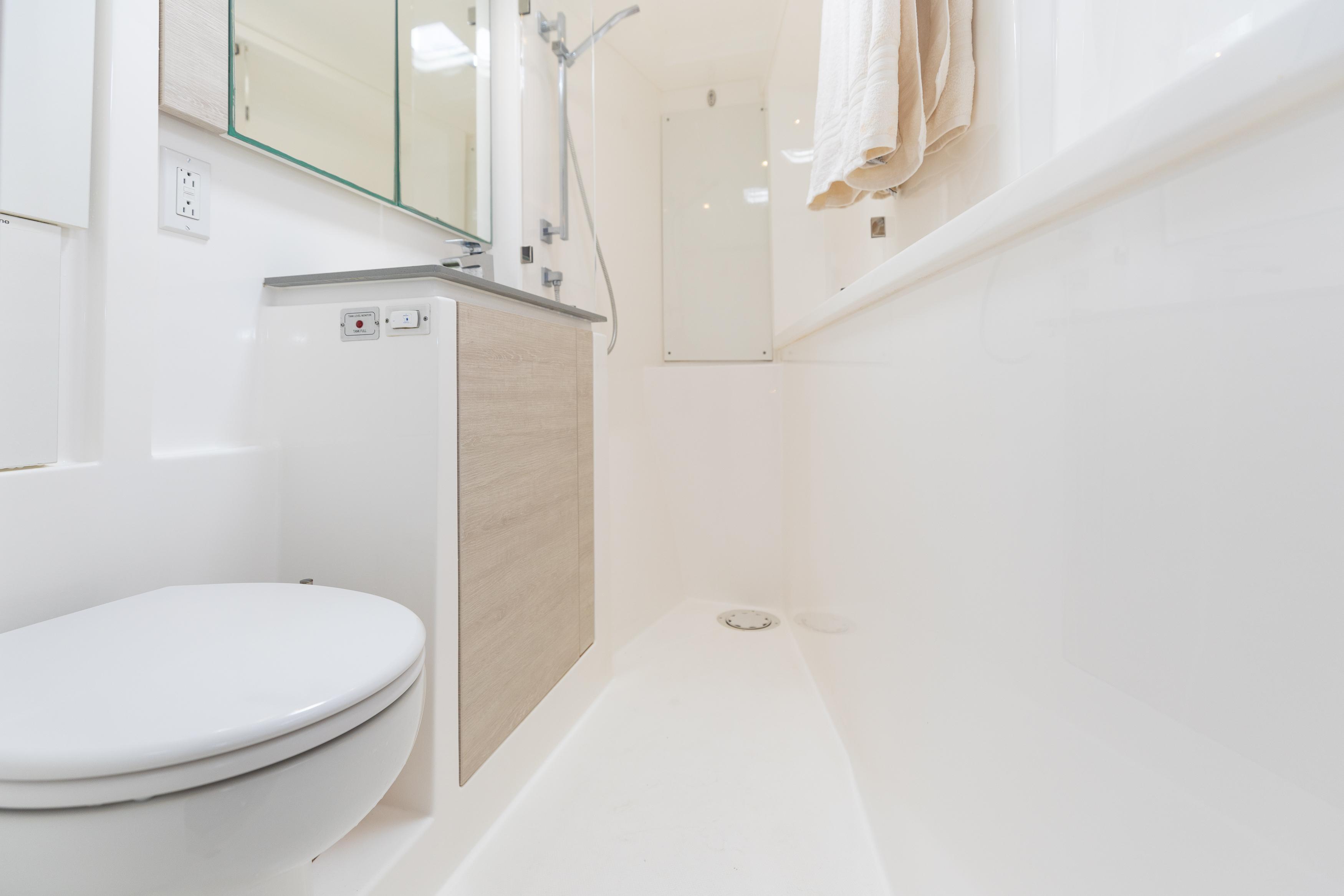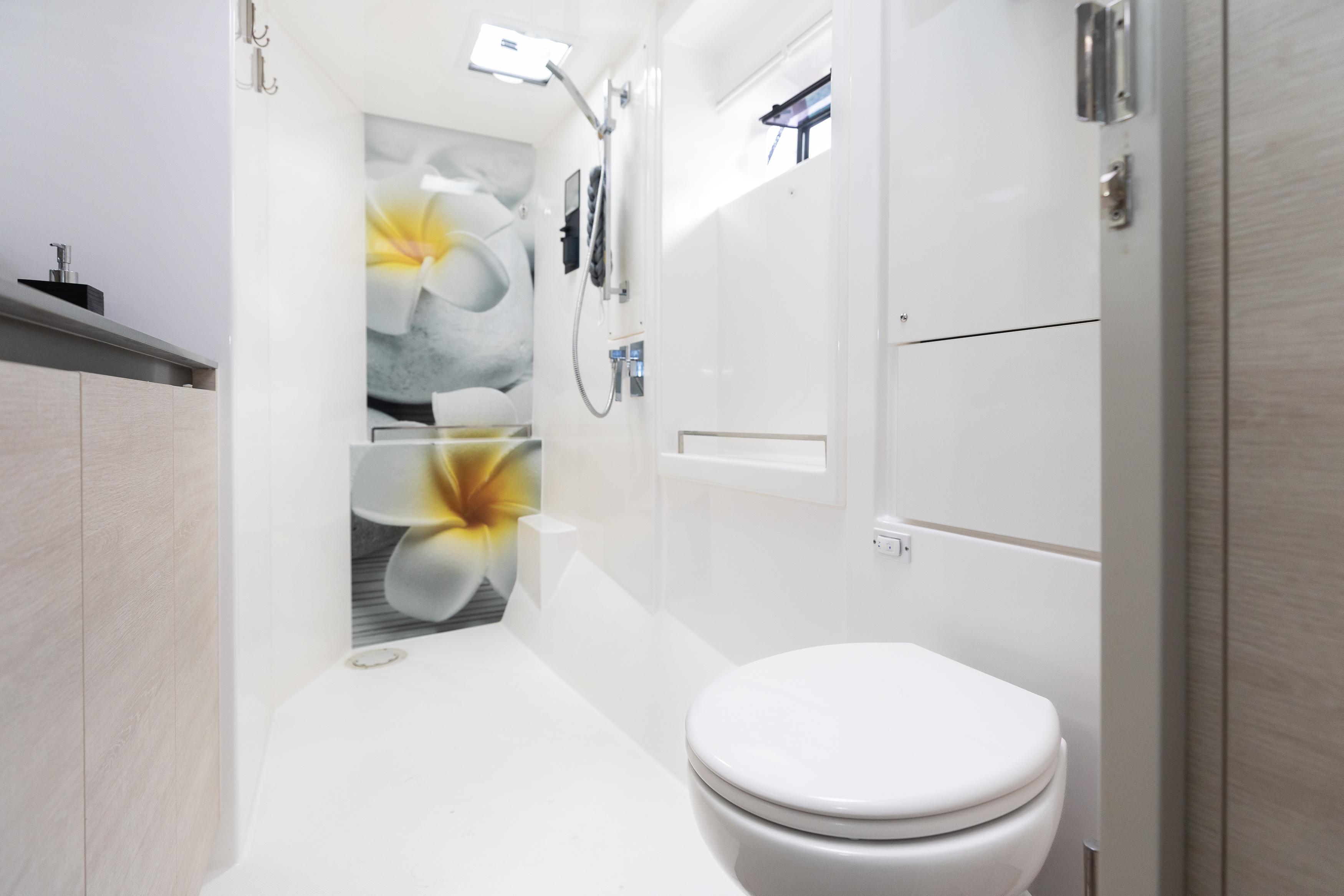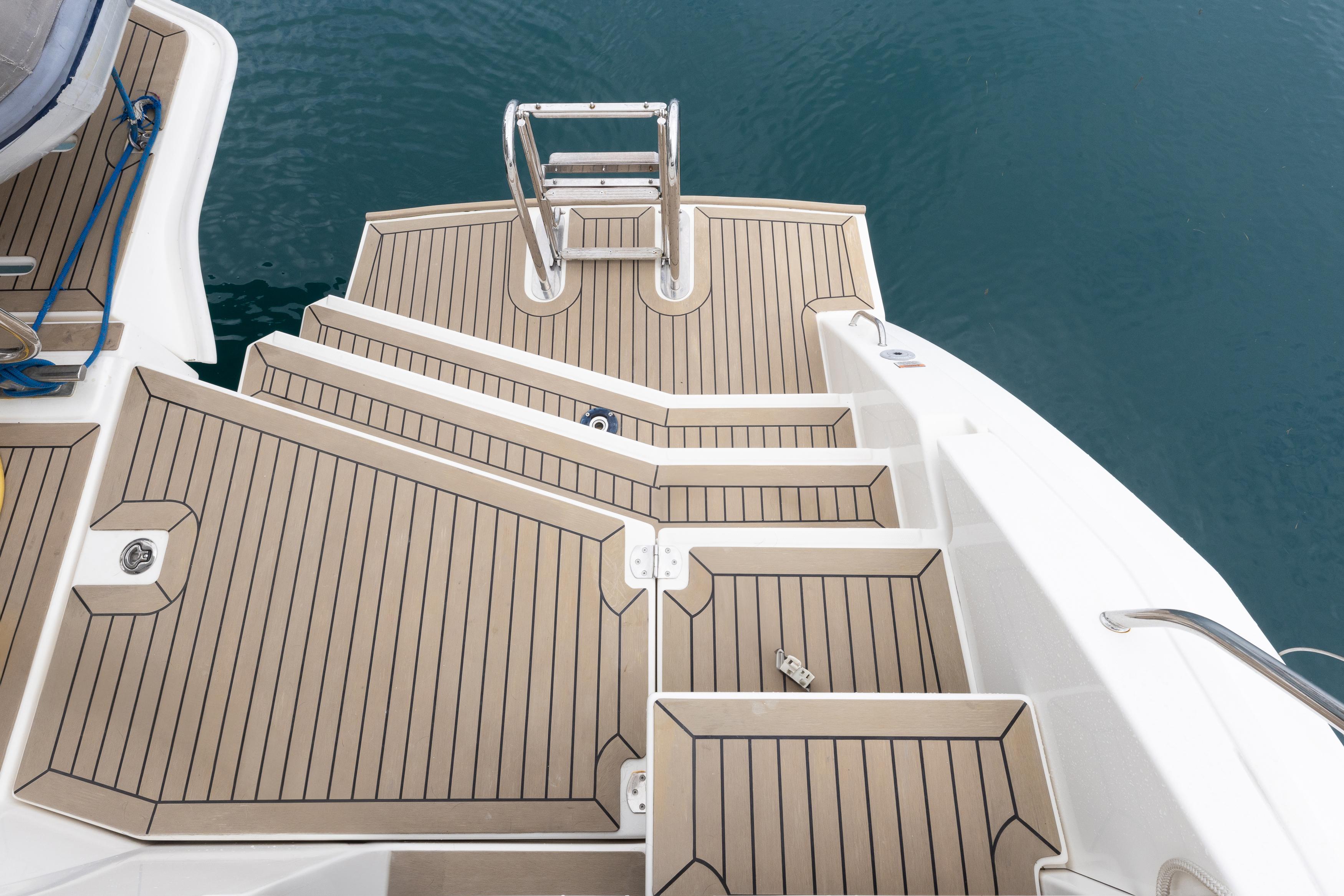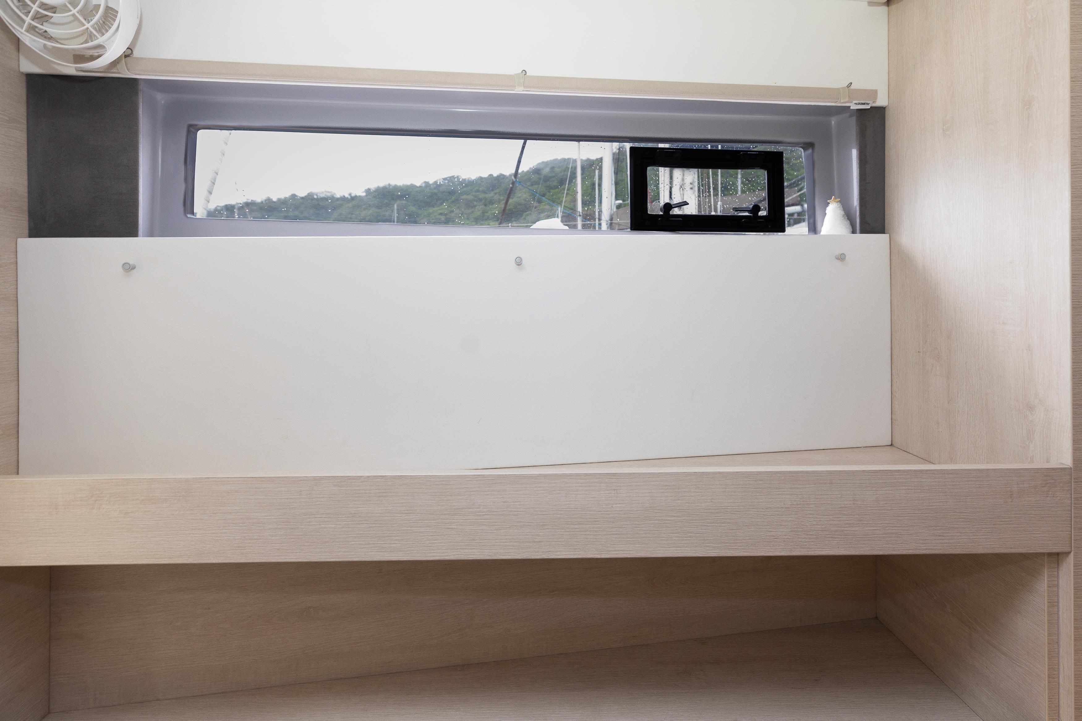 Le Leopard 50 est l’agencement idéal pour tous ceux qui recherchent plus d’espace de vie à l’extérieur car il est équipé d’un flybridge qui comprend un coin salon, une table, un bain de soleil et, en option, des haut-parleurs extérieurs et un store d’ombrage. L’accès se fait par des escaliers flottants partant du cockpit arrière. Une distinction importante par rapport aux configurations de flybridge de voiliers similaires est que lorsque le bateau est sous voiles, les passagers peuvent se déplacer sur le flybridge en bénéficiant d’un espace suffisant pour la tête et sans se soucier des interférences de la bôme. Le flybridge est également situé de manière à rester en contact avec le poste de pilotage, une caractéristique importante que l’on retrouve sur tous les catamarans Leopard.