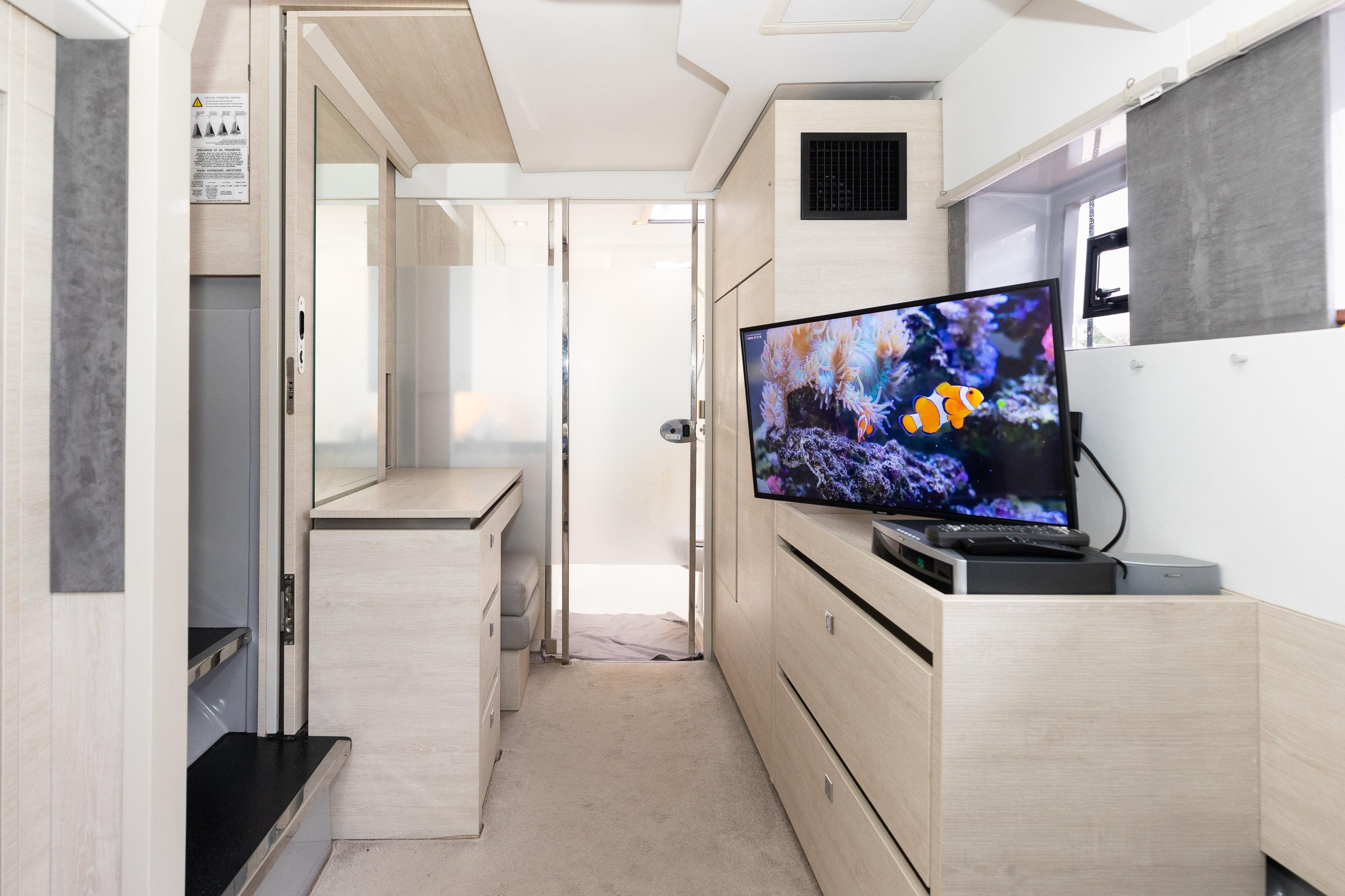 L’ensemble du style extérieur du Leopard 50 a également été revu pour donner à la coque un aspect plus sophistiqué. En plus des options extérieures, l’intérieur offre des configurations multiples avec 4 ou 5 cabines, et une liste d’options étendue.