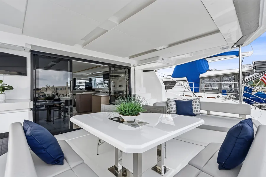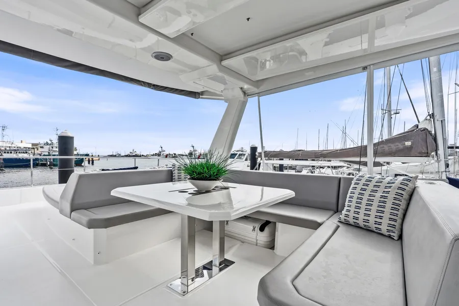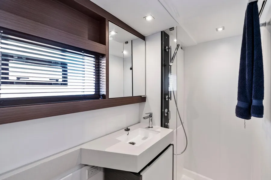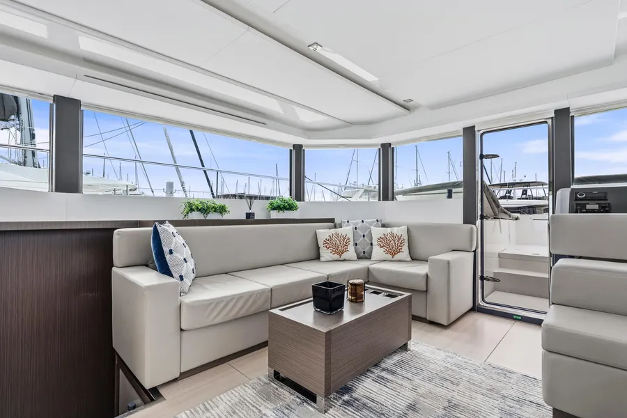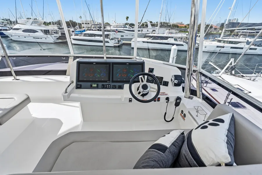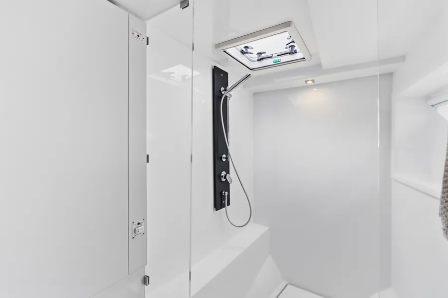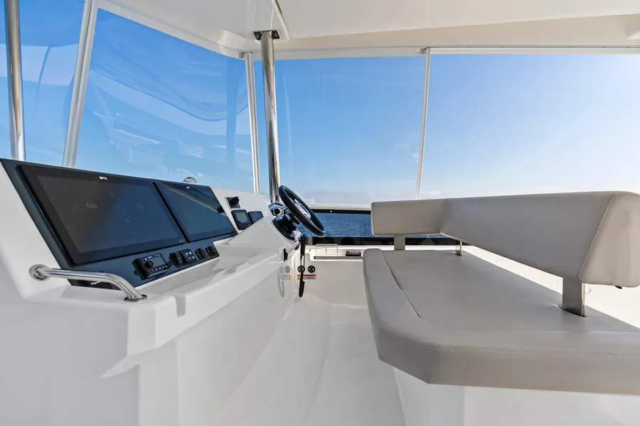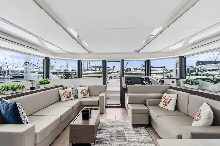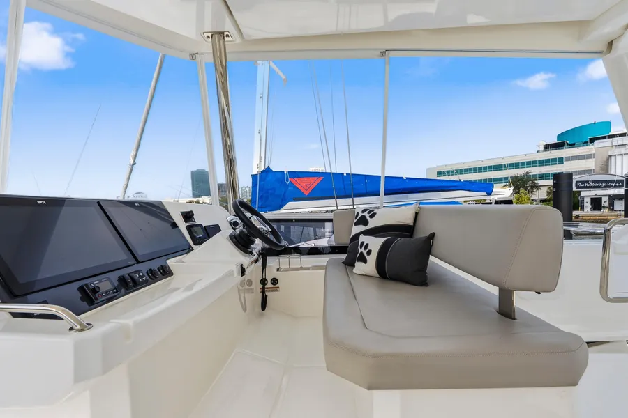 This nearly new 3-cabin owner’s layout Leopard 53 PC is one of the best-equipped examples on the market. The starboard hull is dedicated to a full owner’s suite with a private head and a walk-in shower. With <200 engine hours and <300 generator hours, she is turn-key and shows beautifully.