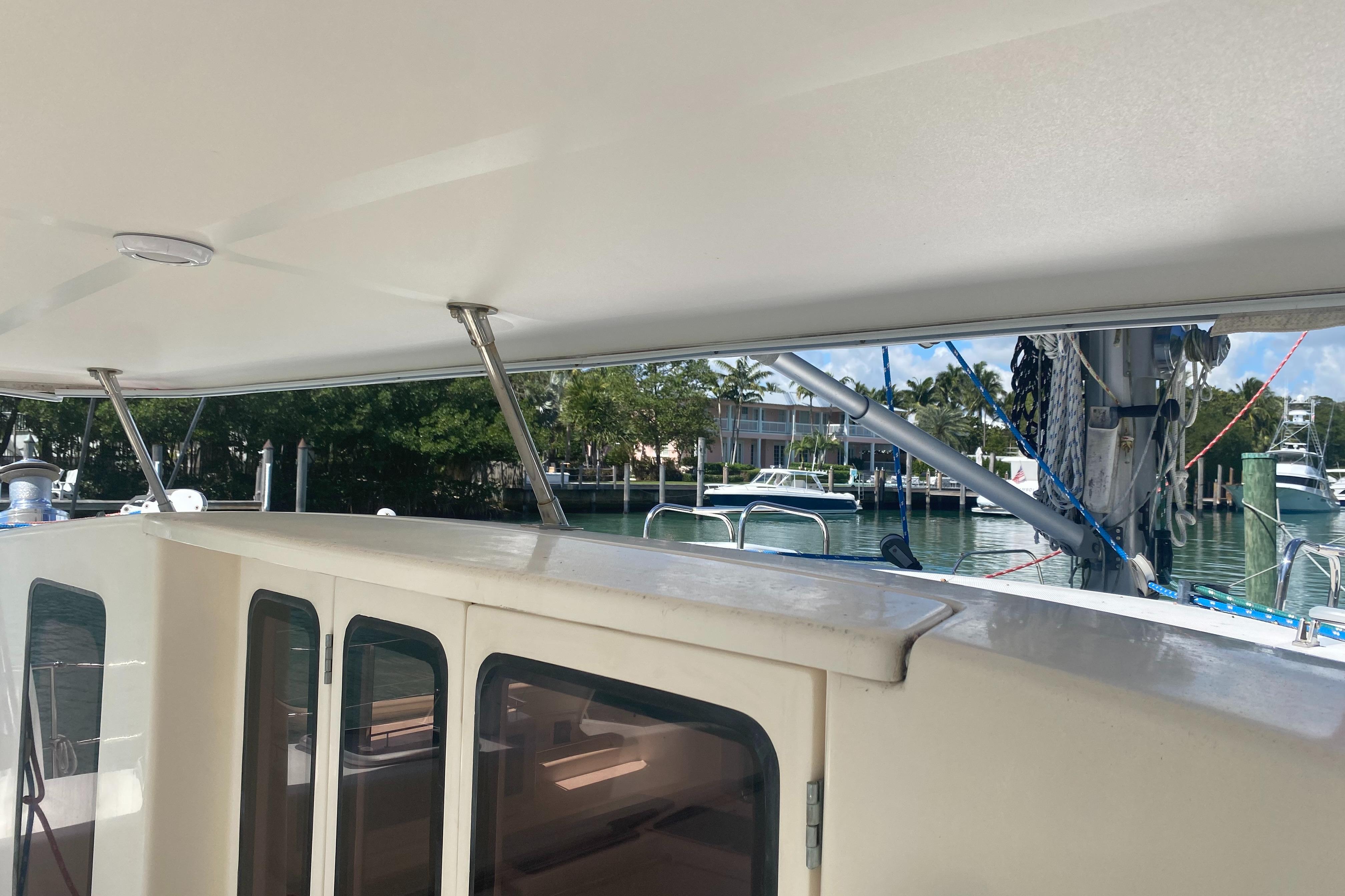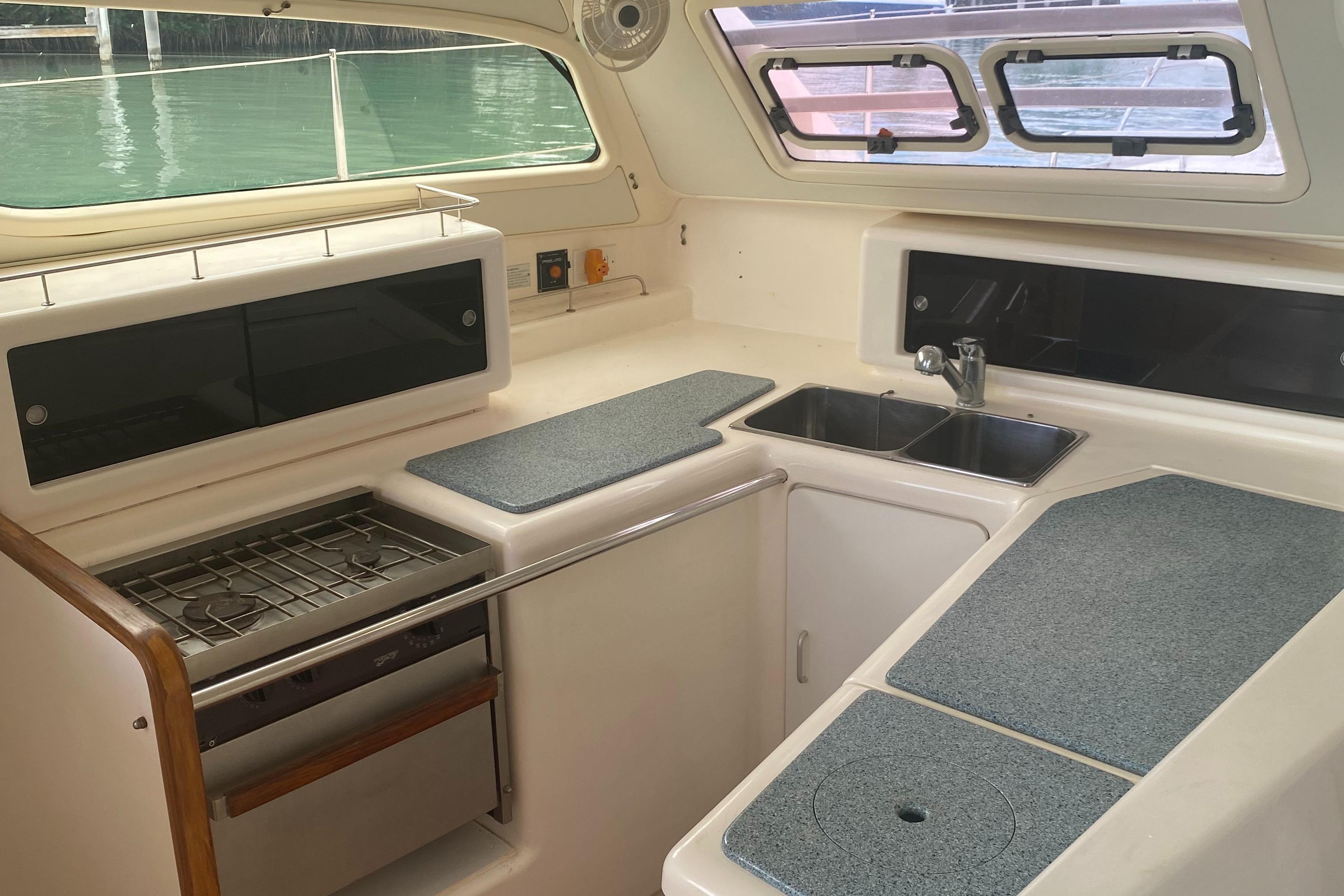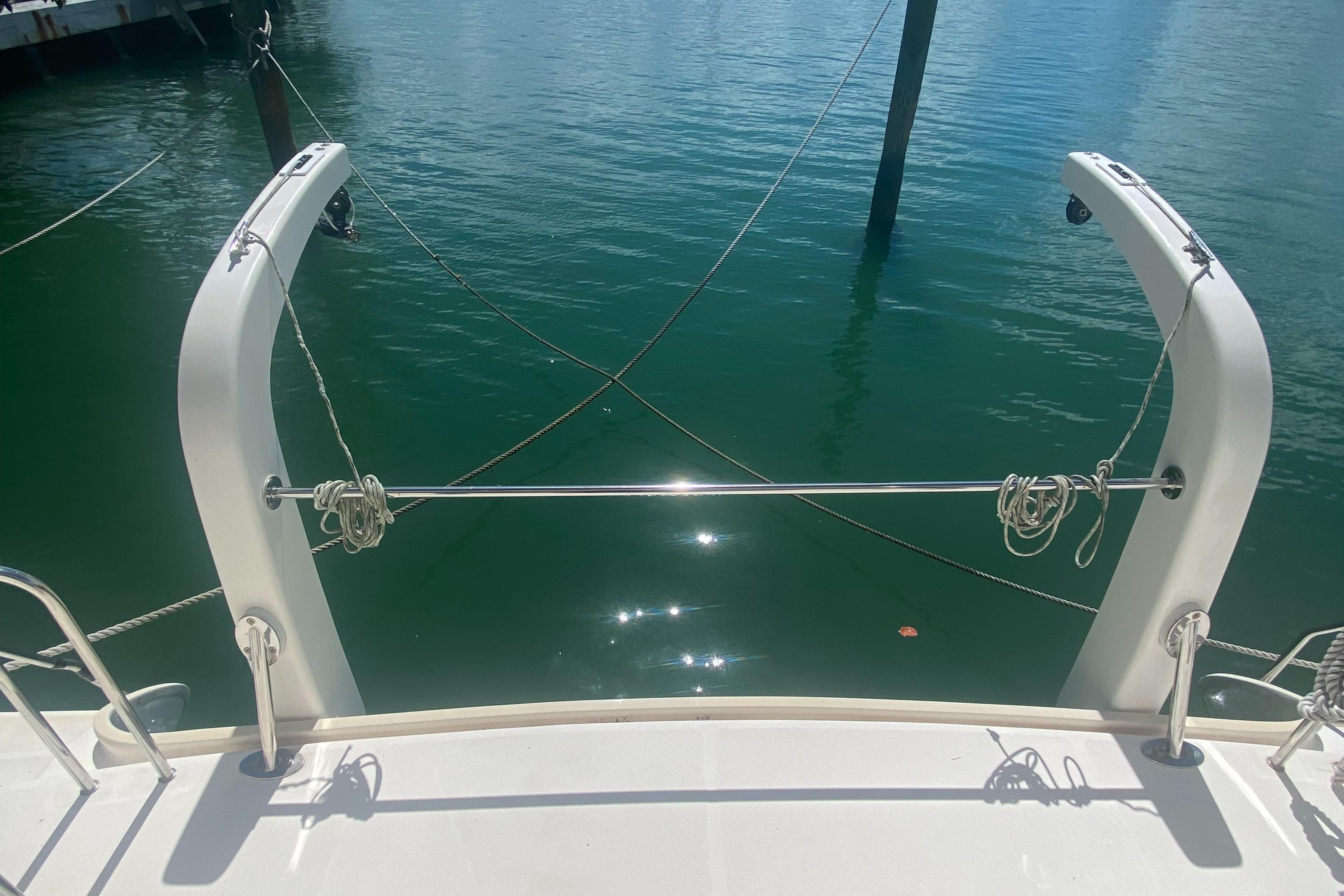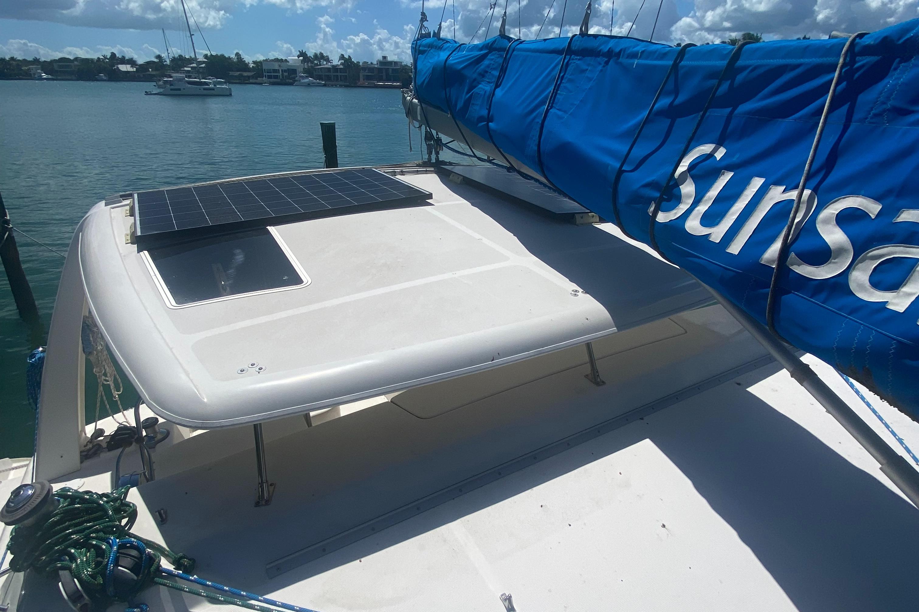 “Tiki” has been upgraded with two new 30 HP Yanmar engines (3JH5E Series). It’s also been fitted with a new NexGen 3.5 kW marine diesel generator. Solar panels were also added to the yacht along with a new hardtop over the aft cockpit.