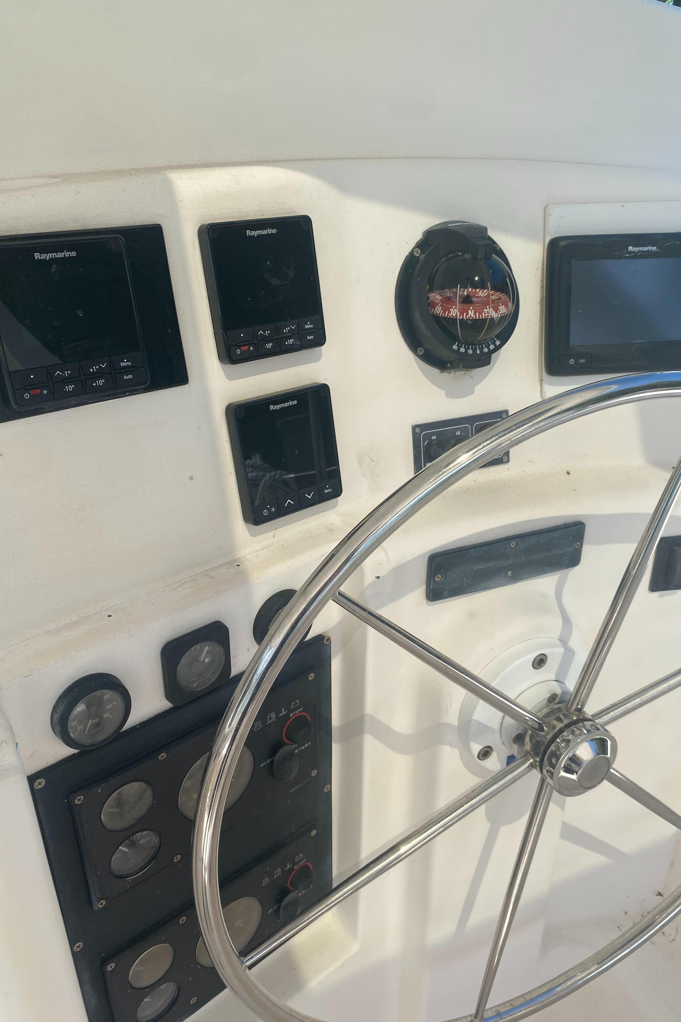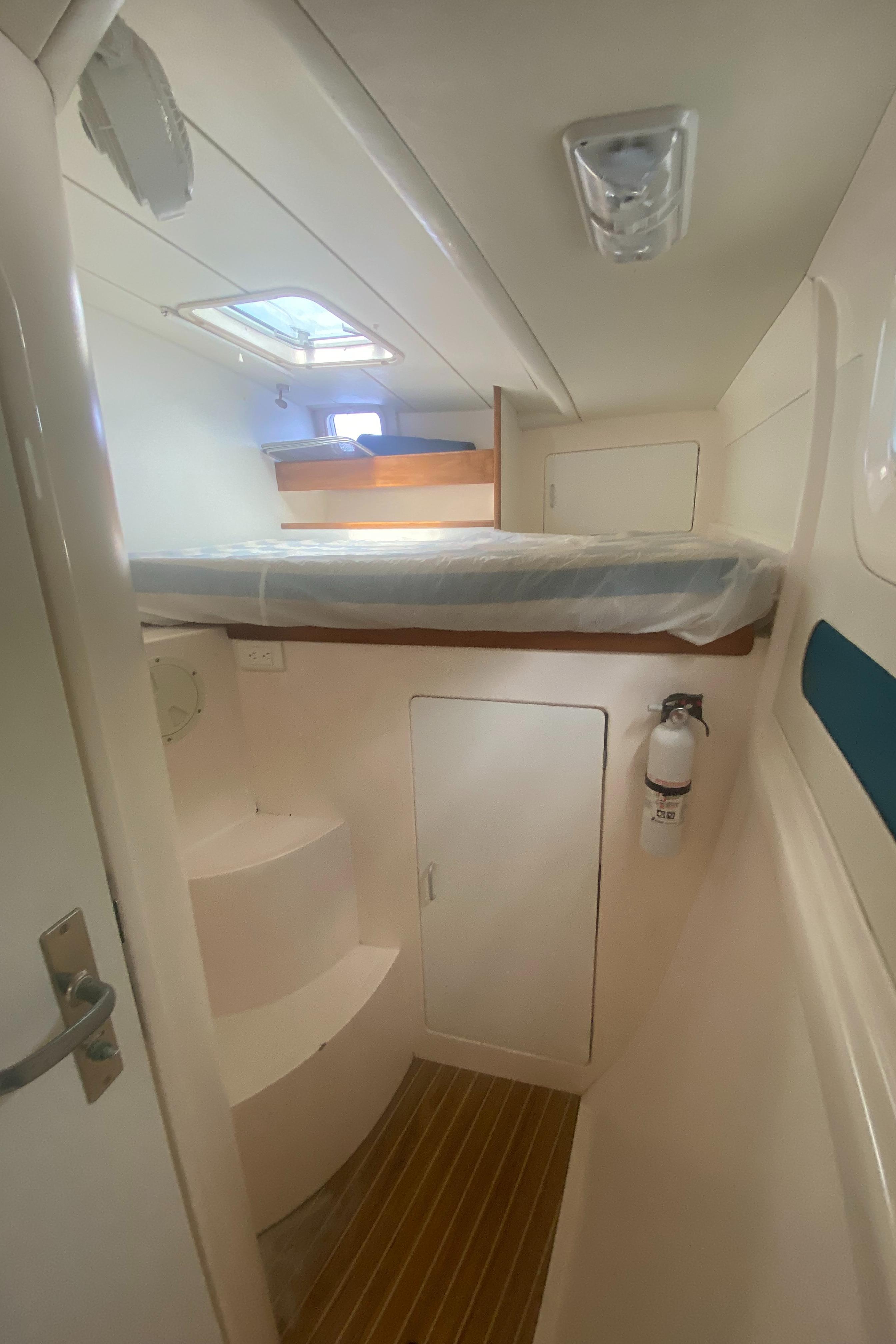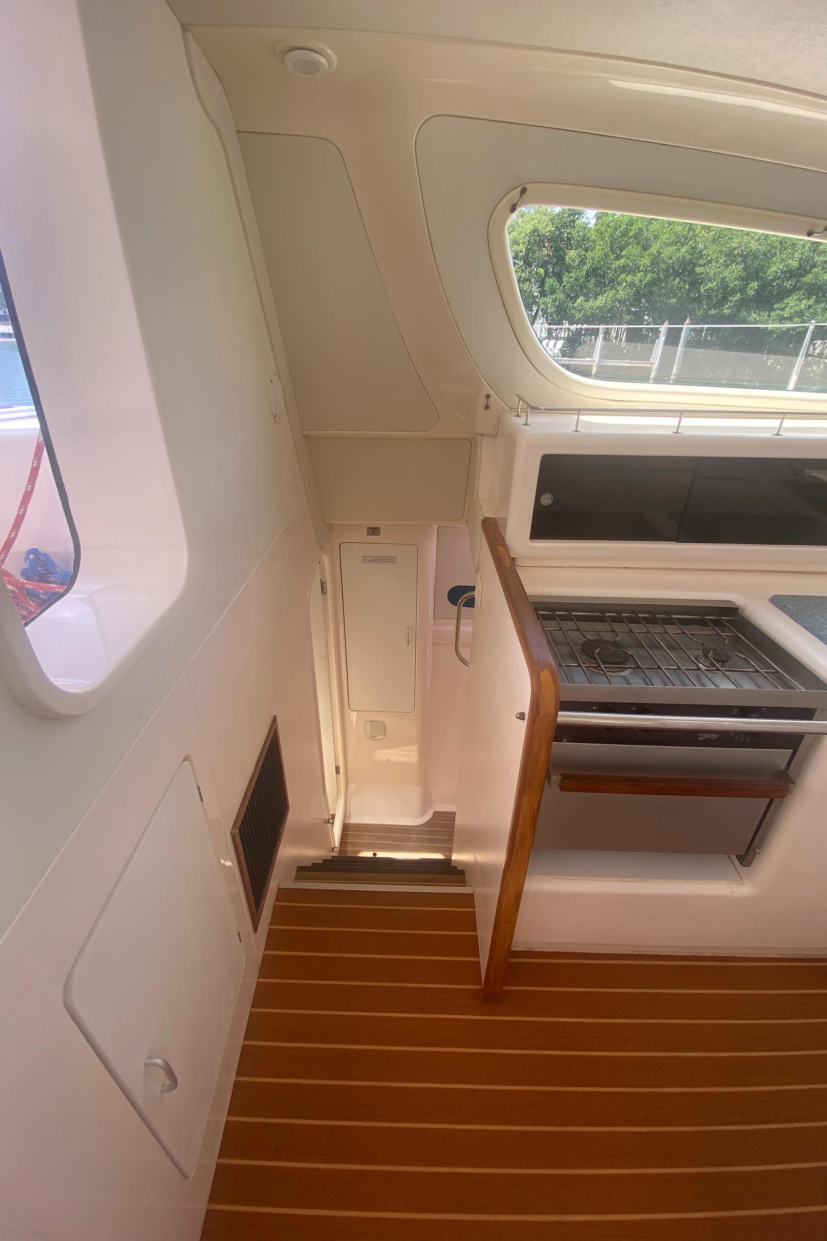 “Tiki” has been upgraded with two new 30 HP Yanmar engines (3JH5E Series). It’s also been fitted with a new NexGen 3.5 kW marine diesel generator. Solar panels were also added to the yacht along with a new hardtop over the aft cockpit.
