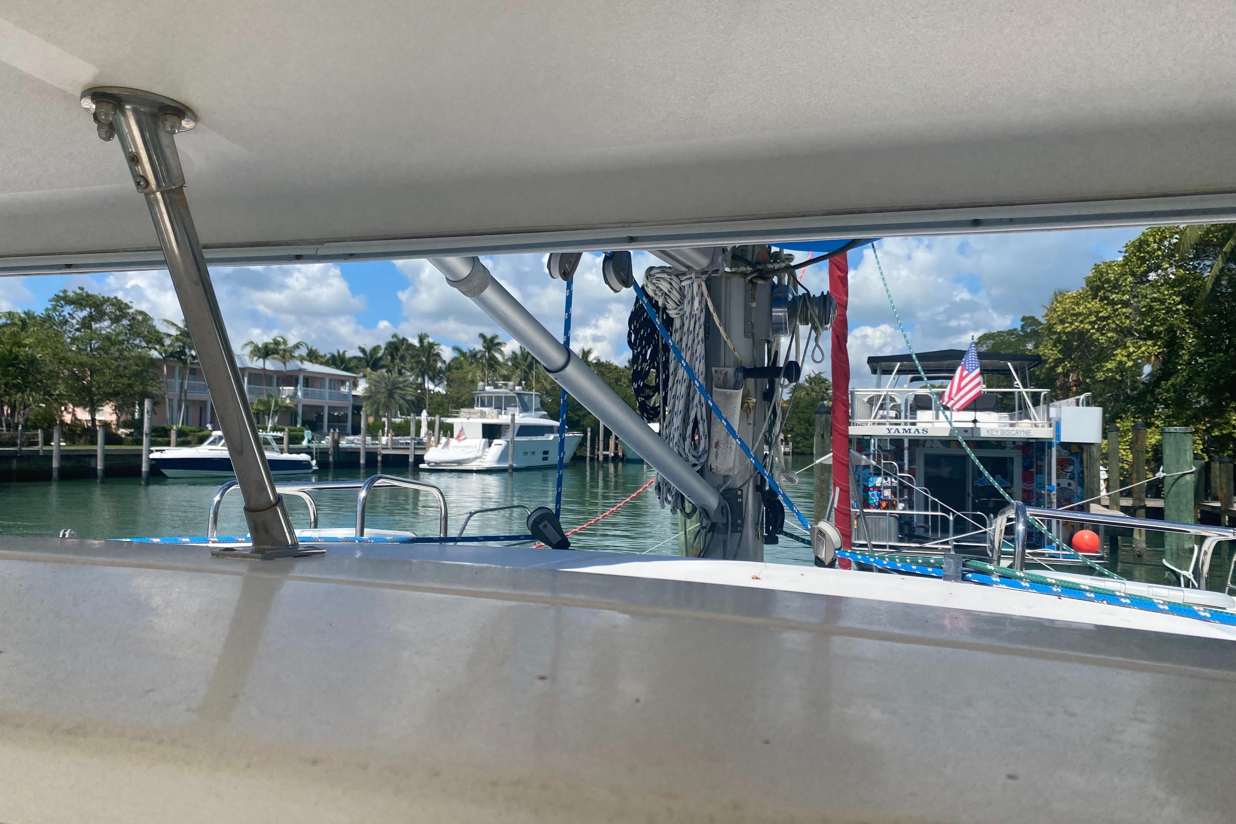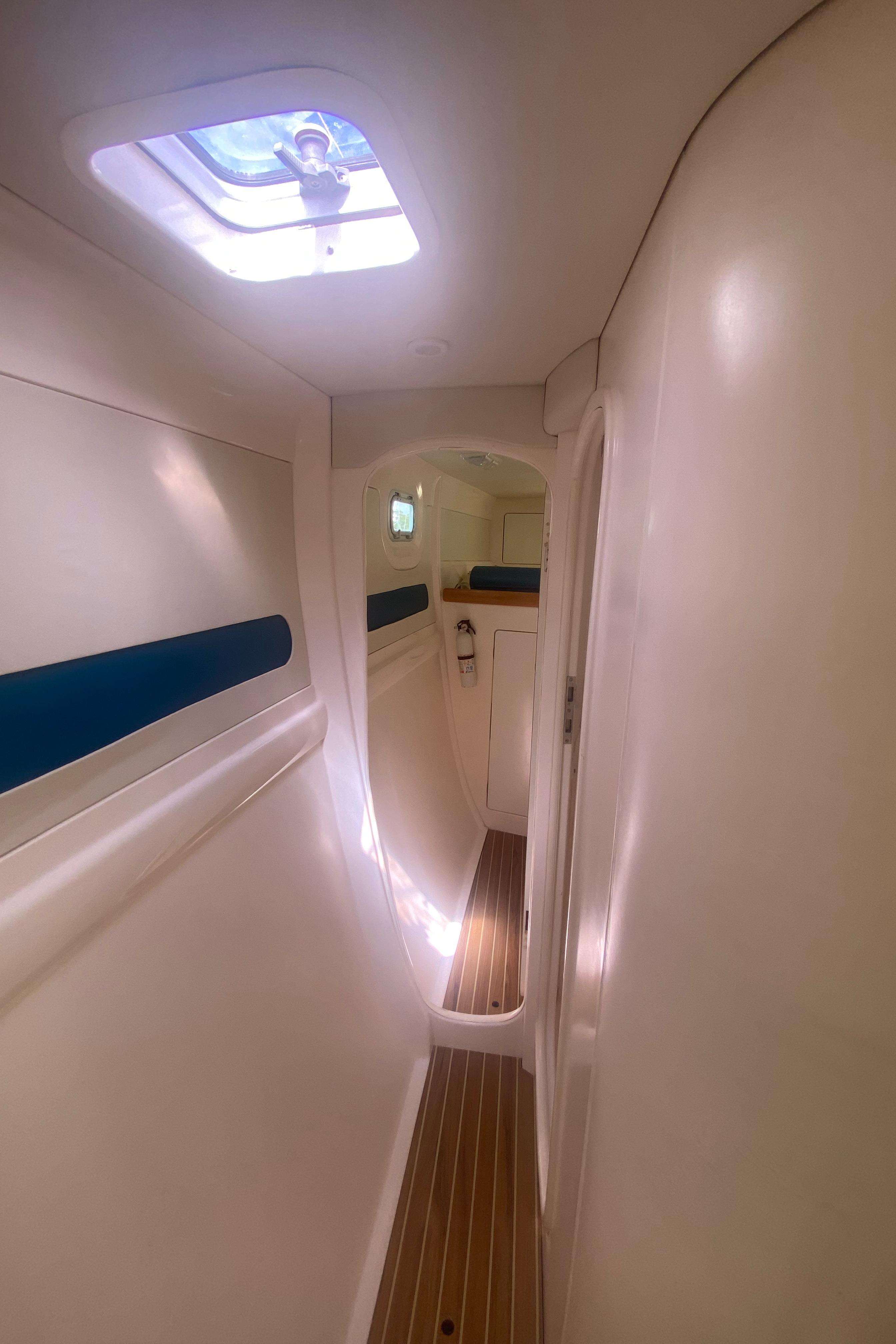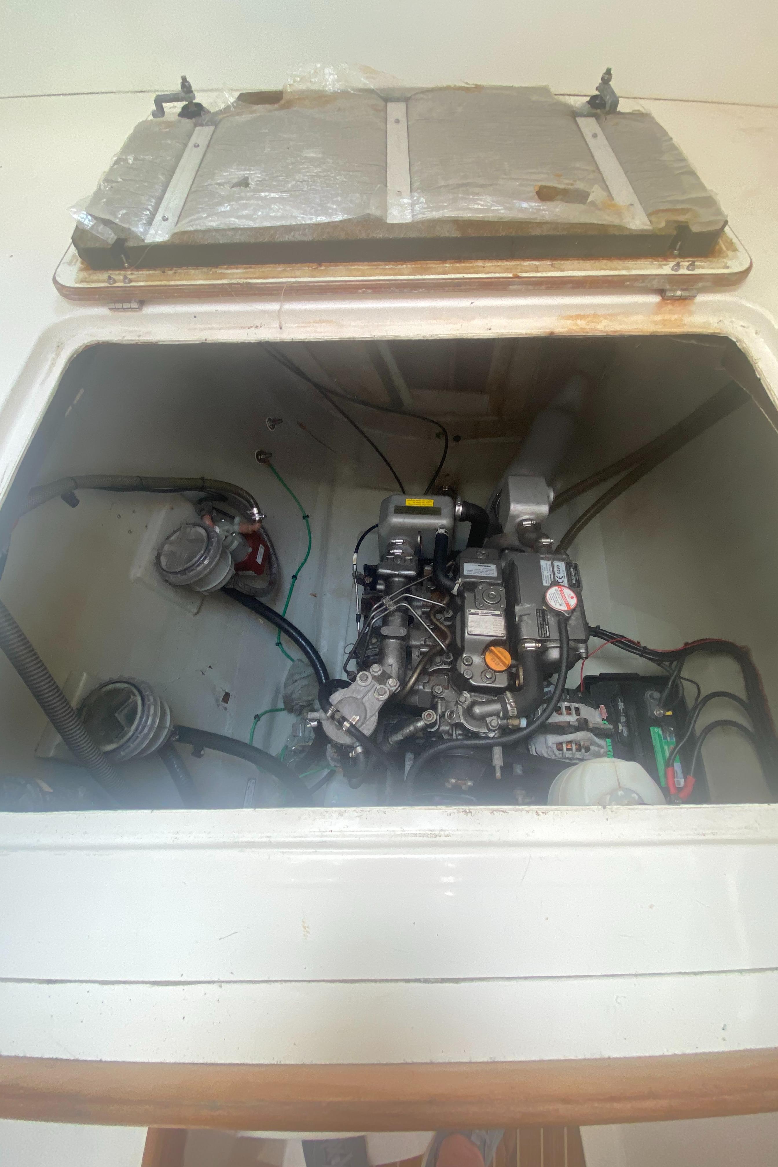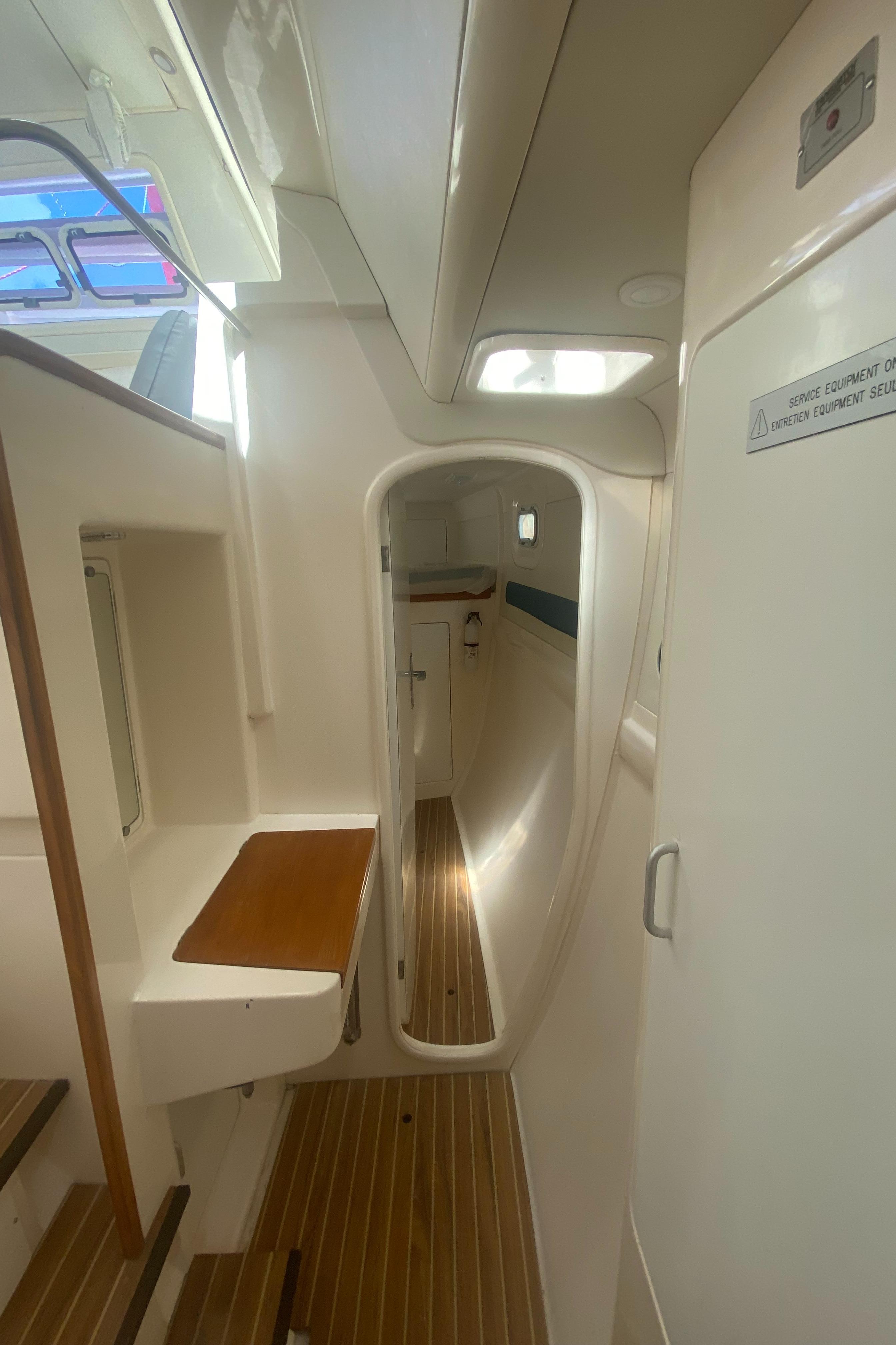 “Tiki” has been upgraded with two new 30 HP Yanmar engines (3JH5E Series). It’s also been fitted with a new NexGen 3.5 kW marine diesel generator. Solar panels were also added to the yacht along with a new hardtop over the aft cockpit.