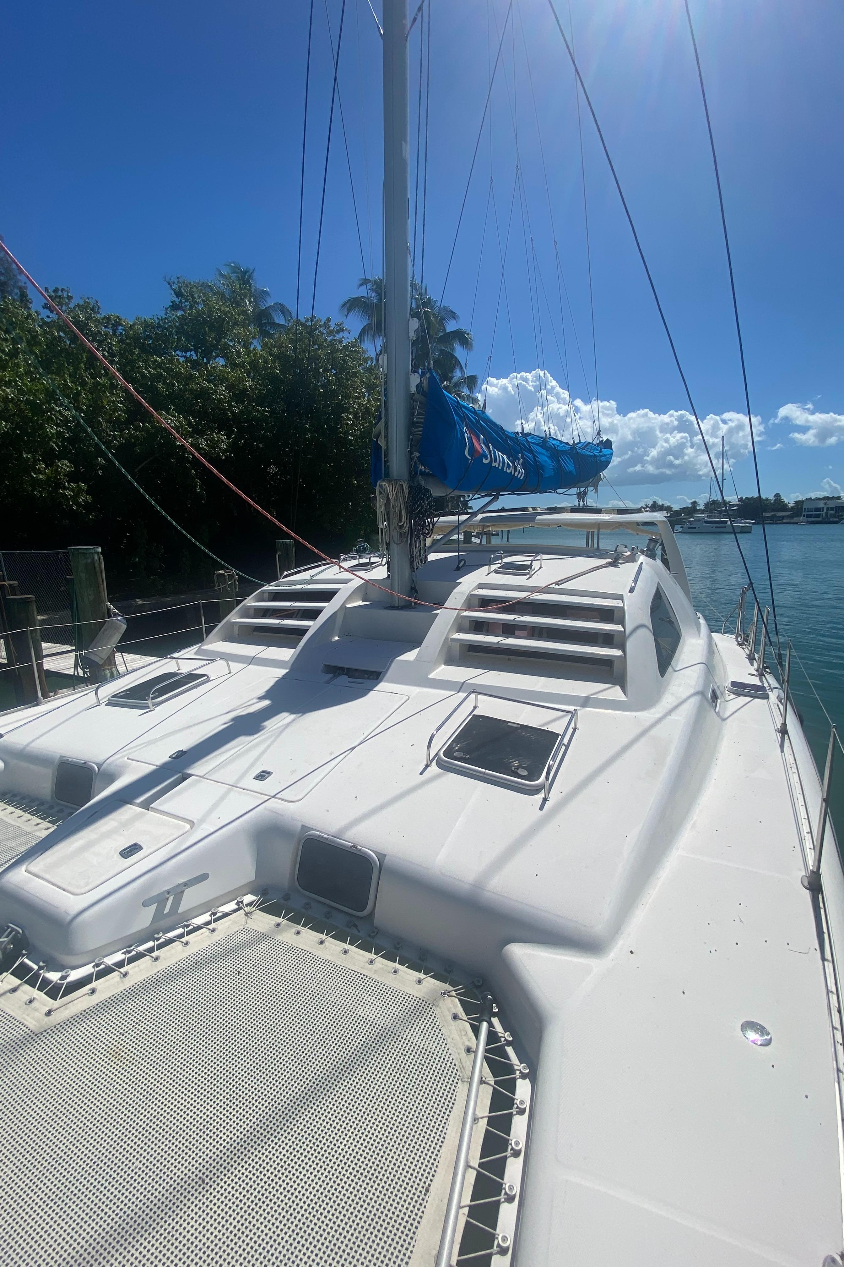 “Tiki” presents the unique opportunity to own a 3-cabin Leopard catamaran at a reduced price. The 2003 Leopard 38 sailing catamaran is a versatile and reliable choice for sailors seeking a blend of performance, comfort, and practicality. Its layout provides ample space and privacy for both family cruising and entertaining guests. The interior features warm wood finishes, providing a cozy and traditional feel. It also offers ample storage space, making it ideal for long voyages. The after cockpit is perfect for lounging and socializing. And the large trampoline area is great for relaxation and enjoying the view.
