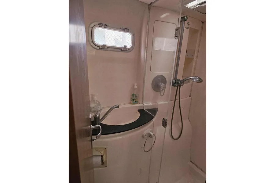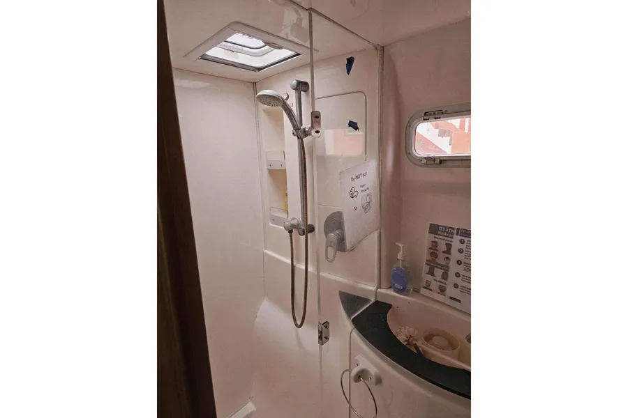 The Leopard 40’s speed on the water and easy handling are its top features, earning it ‘Boat of the Year 2005’ from Cruising World magazine. This boat has a large cockpit with outside dining area, protected by a functional hard-top bimini. The galley-up design incorporates a spacious saloon and aft facing galley with a cocktail bar and serving window overlooking the cockpit. This Leopard 40 has three cabins, optional berths in the forepeaks, and two large heads with separate shower stalls.
