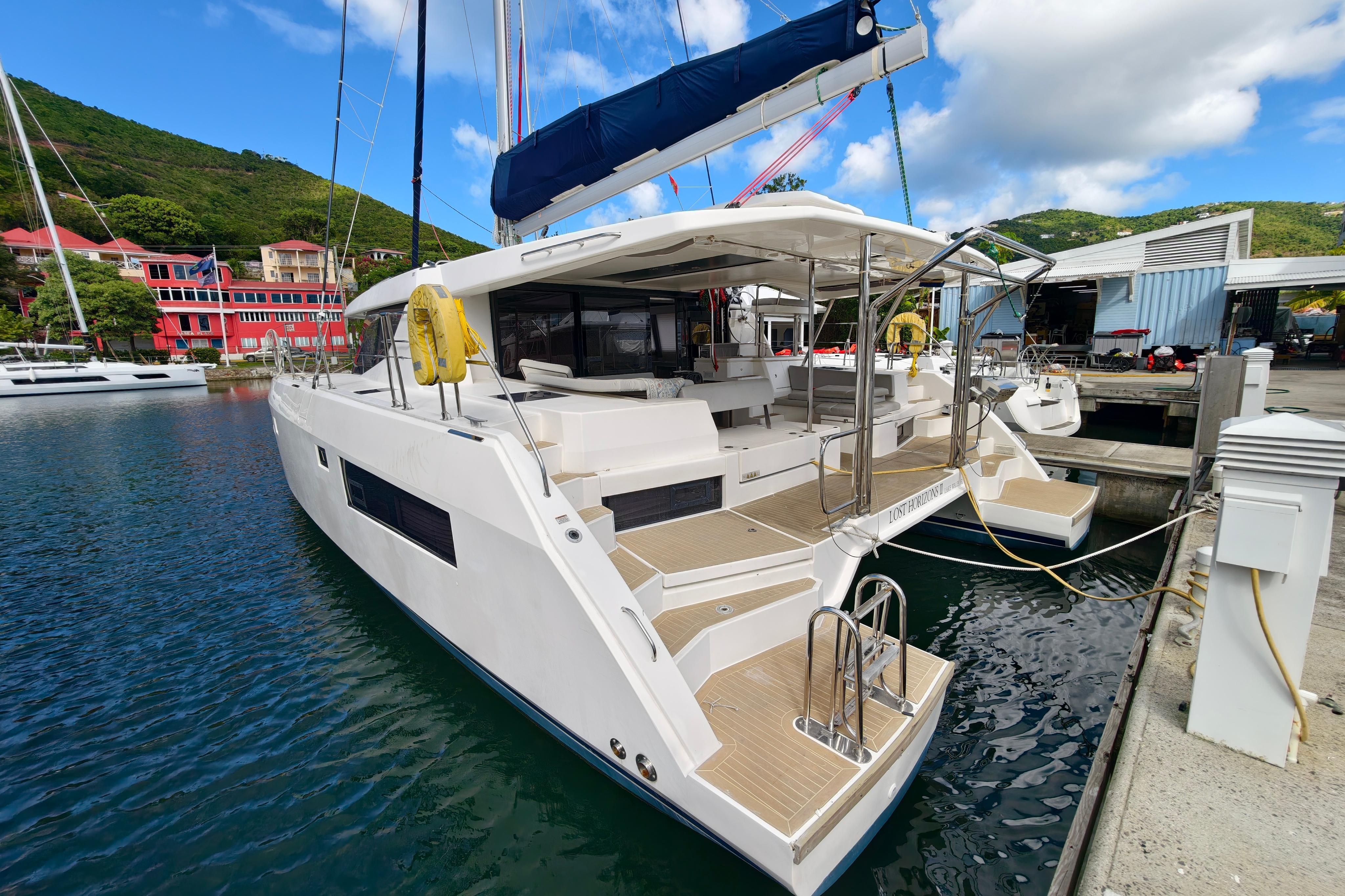 Broker’s Remarks:  “Lost Horizons II” anytime we get a CREWED listing of the Leopard 45, it gets all the attention, and for good reason.   Here you have a yacht that has only ever been under the care and custody of a professional crew (never bareboated), so this comes with perks of condition and features.  From first impressions you see the glorious teak on the transoms, cockpit and forward cockpit, which is an eye wateringly expensive factory upgrade.  Also, being a 2020 model, plus the crewed version, why is it priced like a 2019 Bareboat?   The reason is simple.  This yacht just completed a full refit, and we have the survey used for the refit AND the follow up survey, showing that the team did all and more.  Both are available to anyone who wants to see them.  Oh and did we mention that this yacht also comes with a full sized RIB dinghy, water toys and a water maker?  Seems too good to be true, right..  Its real, and its going to sell fast, as it can be sailed away this Jan 2026!