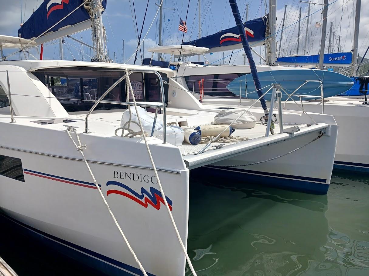 BROKERS REMARKS: BENDIGO is a rare young Leopard 40 model available leaving the fleet this season. She is a 3-cabin owner’s version with no storm damage due to age. Has the lighter Ash interior along with air conditioning, generator, yanmar engines, electric davits and walk through forward door.