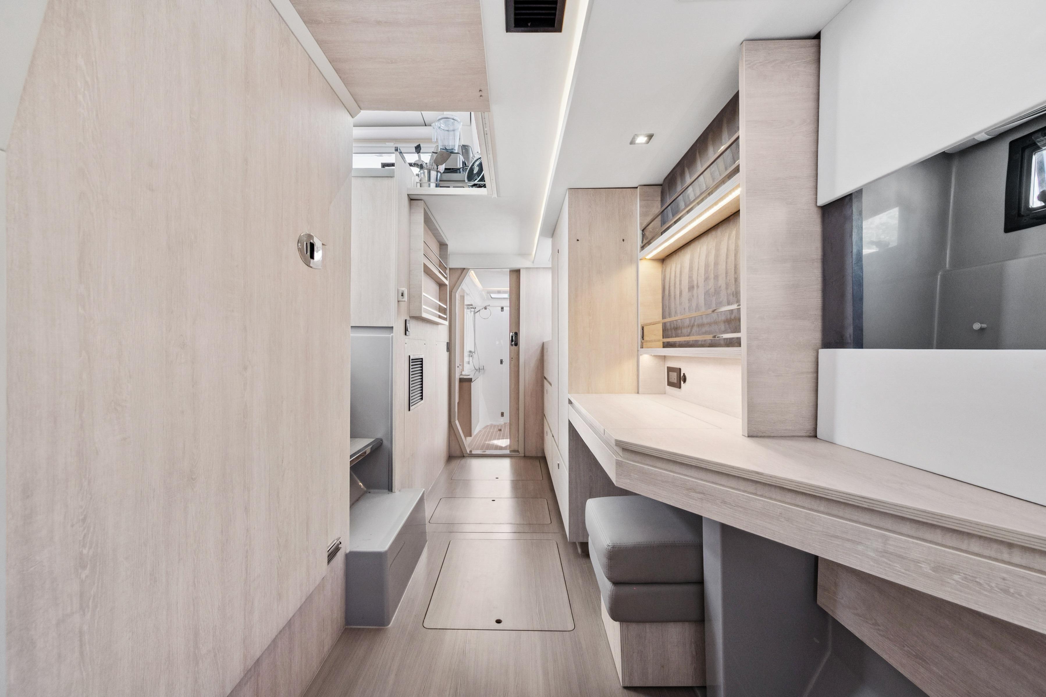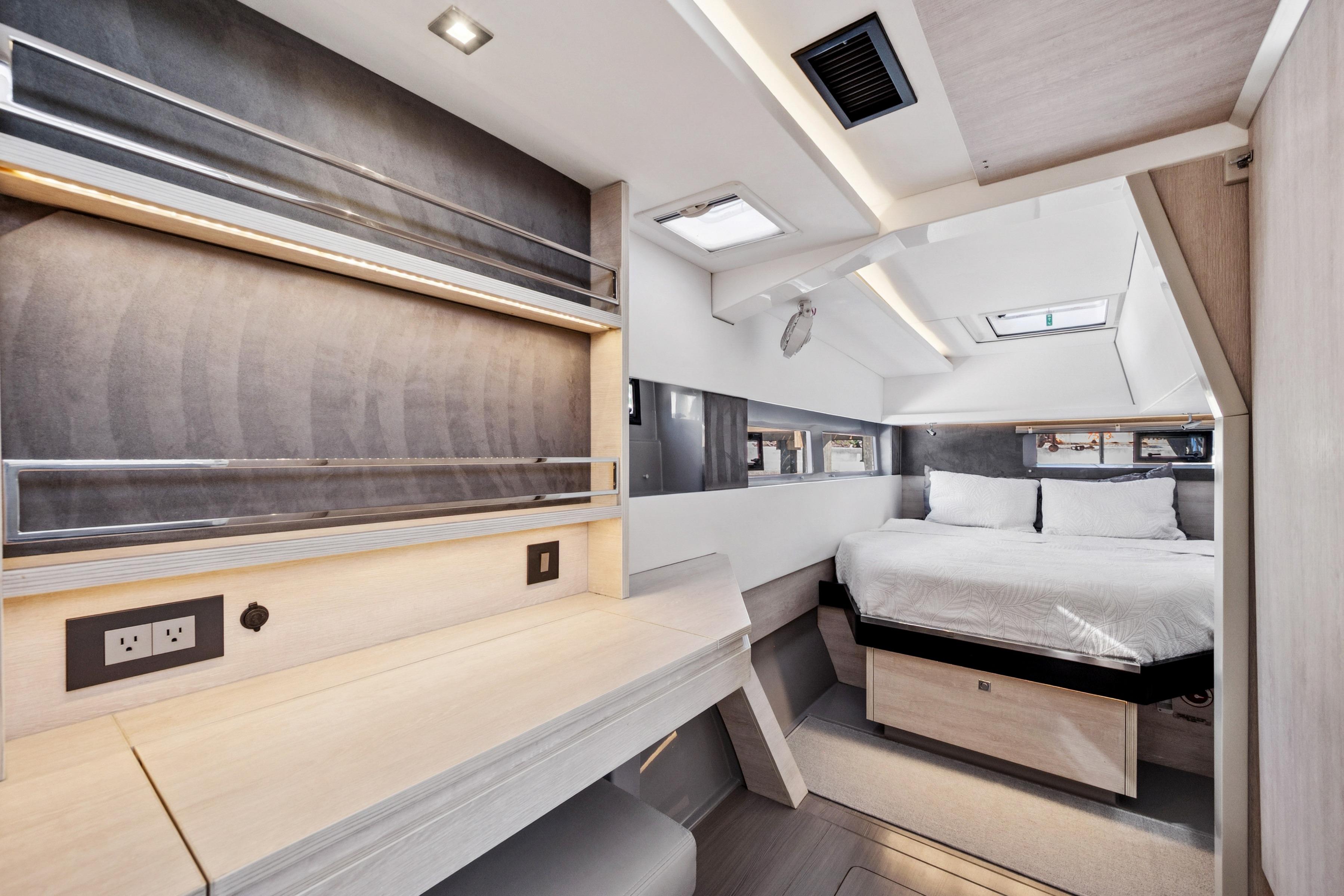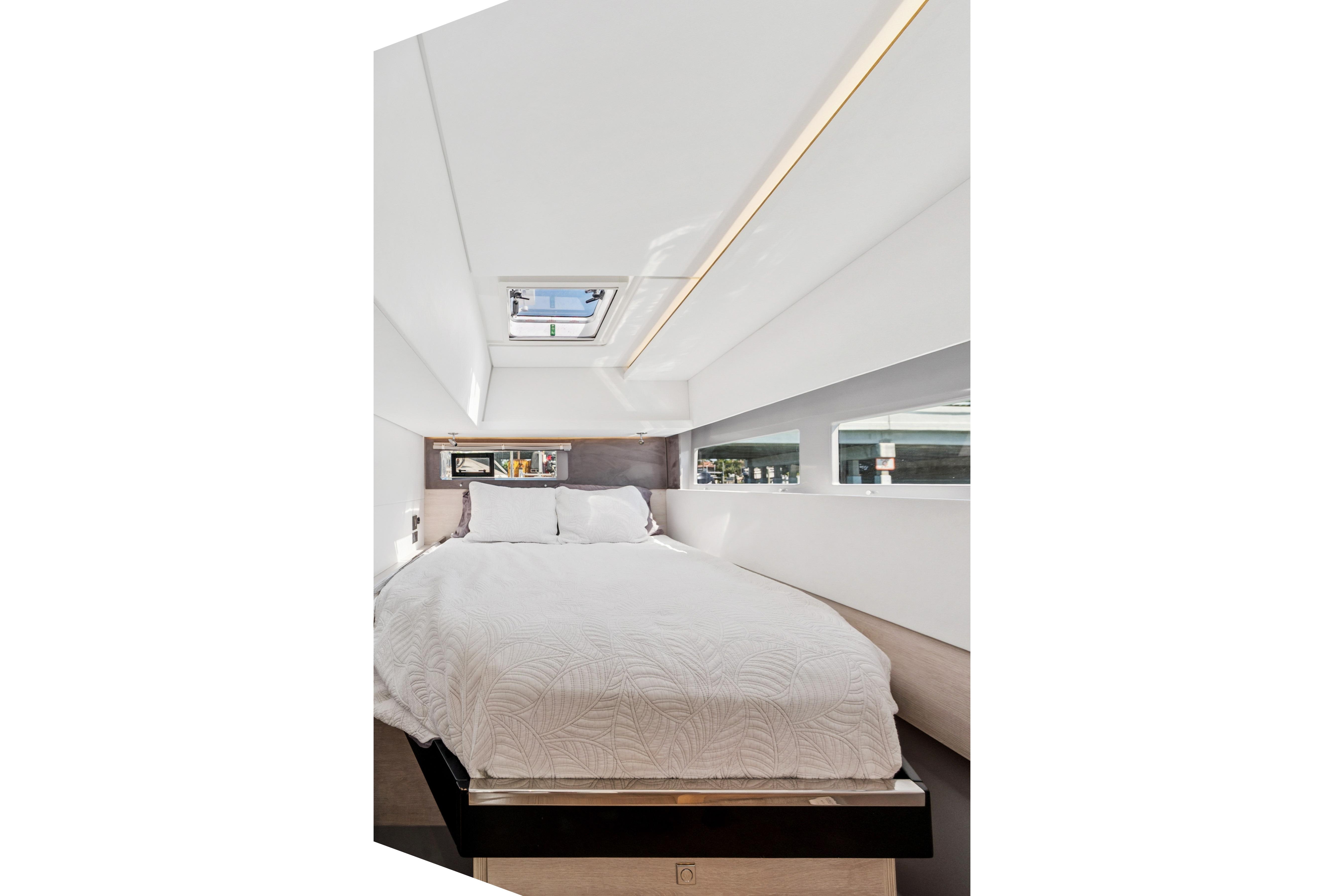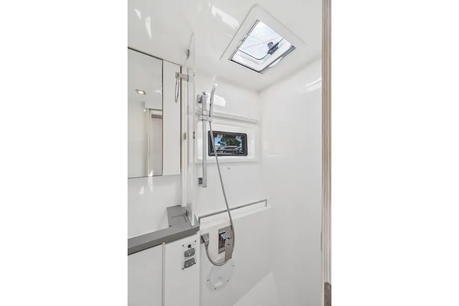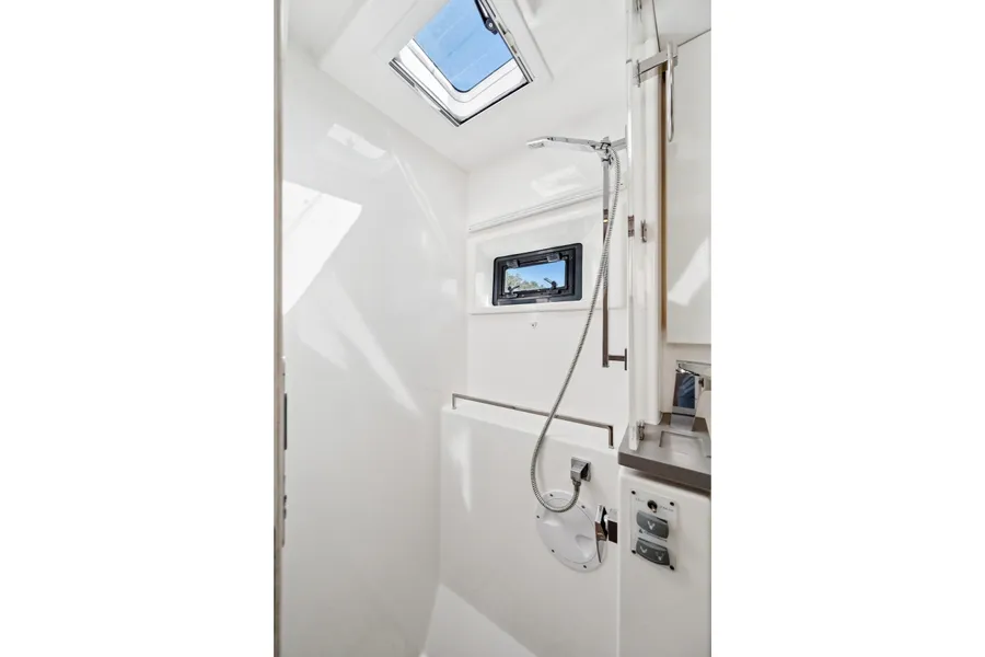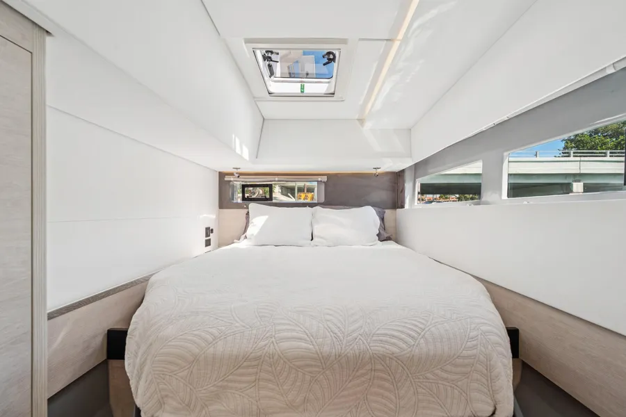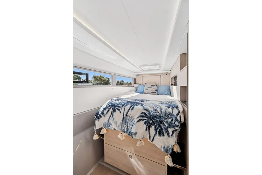“Always Wet” is an exceptional example of the Leopard 45, a catamaran that offers the perfect balance of high-performance sailing and luxurious living. True to the Leopard DNA, movement throughout the yacht is seamless, thanks to features like the forward saloon door that opens to a spacious forward cockpit and sun lounge which are ideal spaces to relax and enjoy the view. Large windows throughout connect you to the surrounding environment, creating a bright, open atmosphere that cruising sailors love.