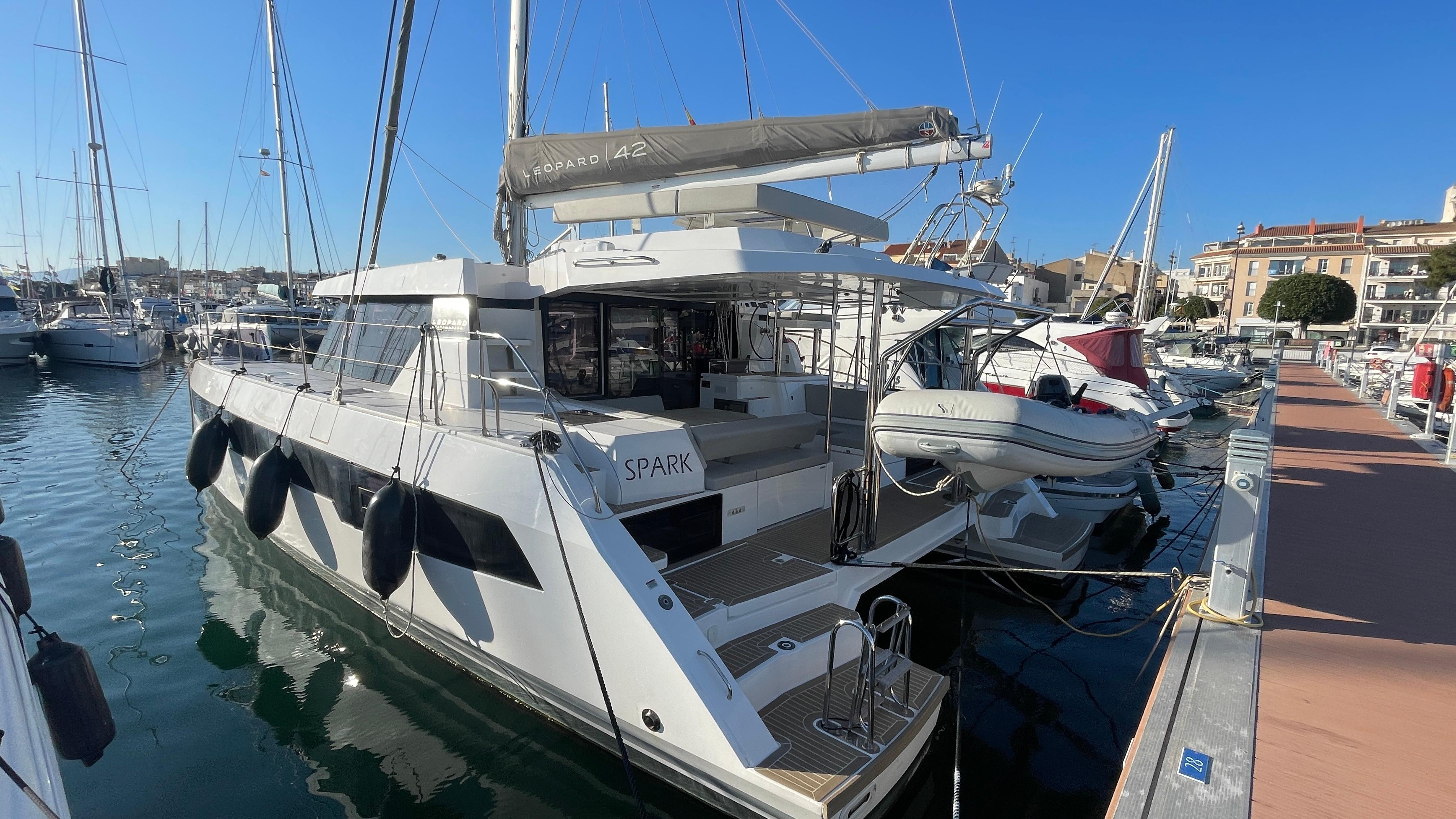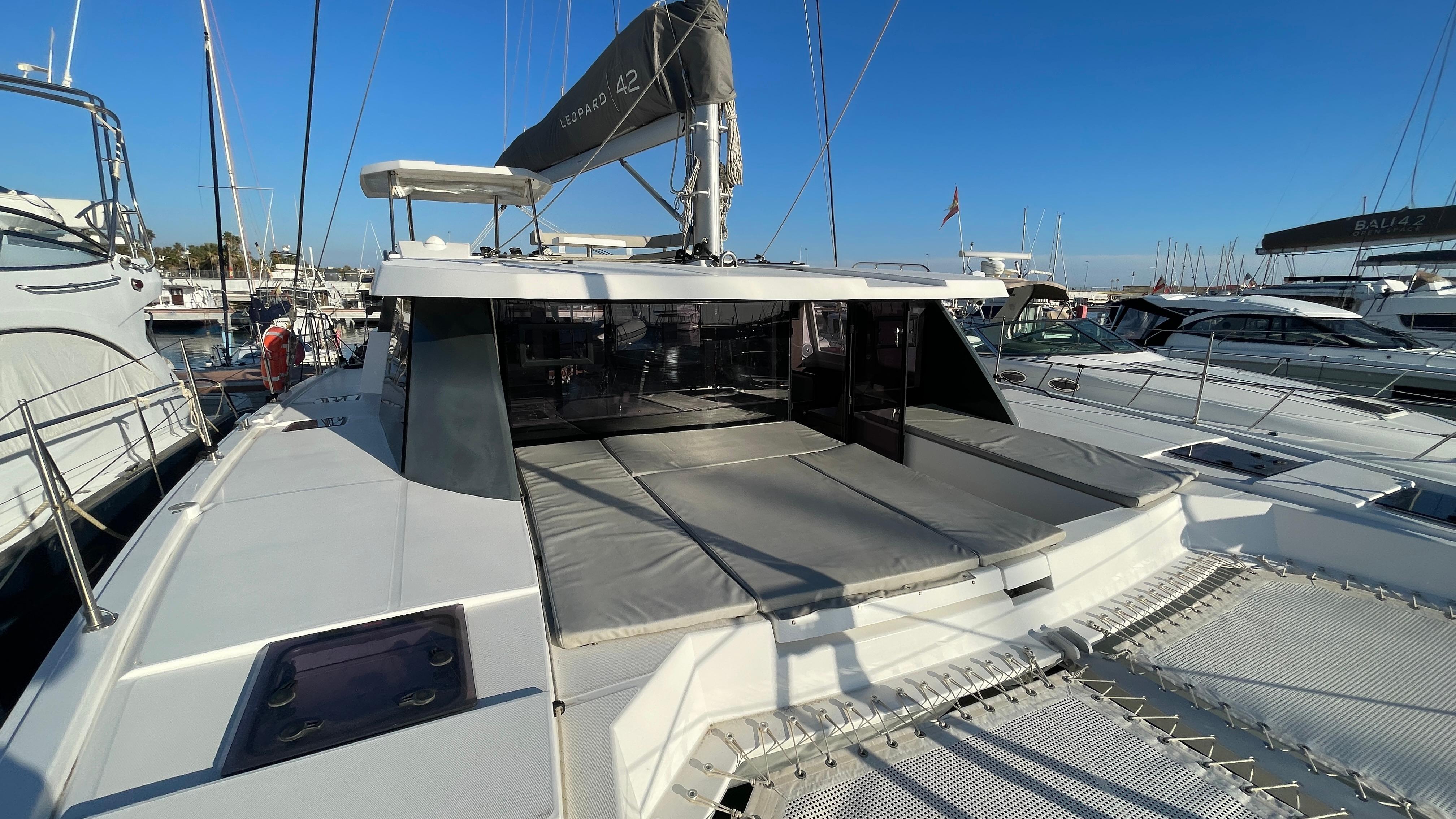 Discover the Leopard 42 “SPARK”, a pre-owned catamaran in excellent condition, with VAT and registration tax paid (Spanish tax). Designed for superior comfort and safe navigation, it combines innovative design, performance, and spacious living areas, perfect for long voyages or onboard living.