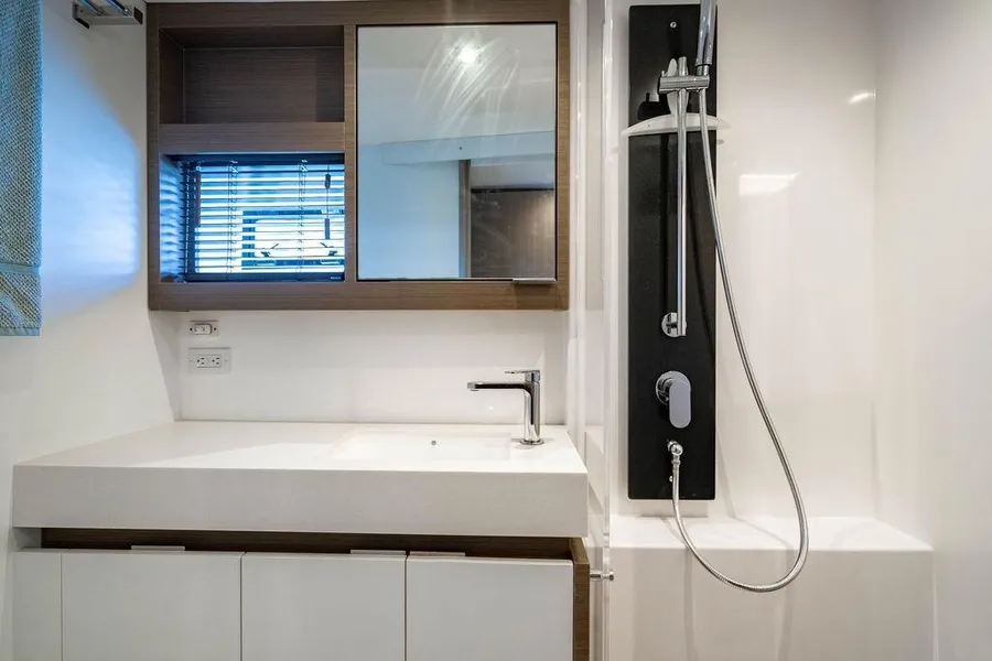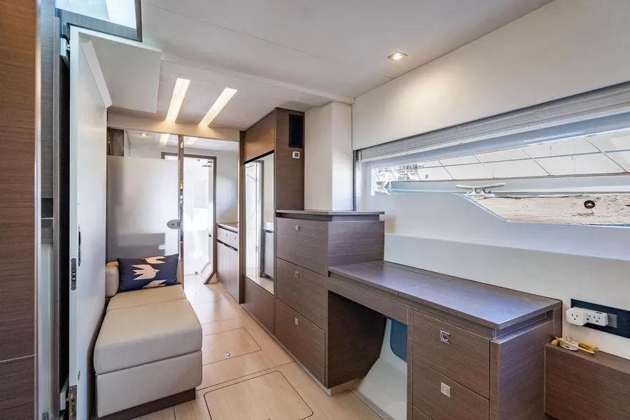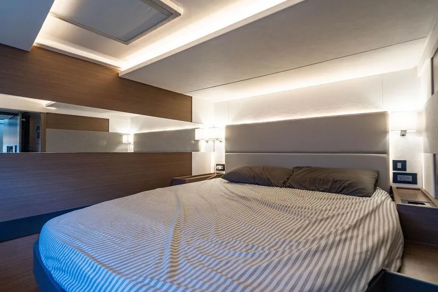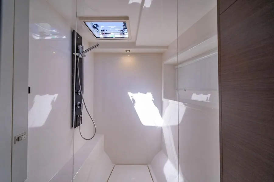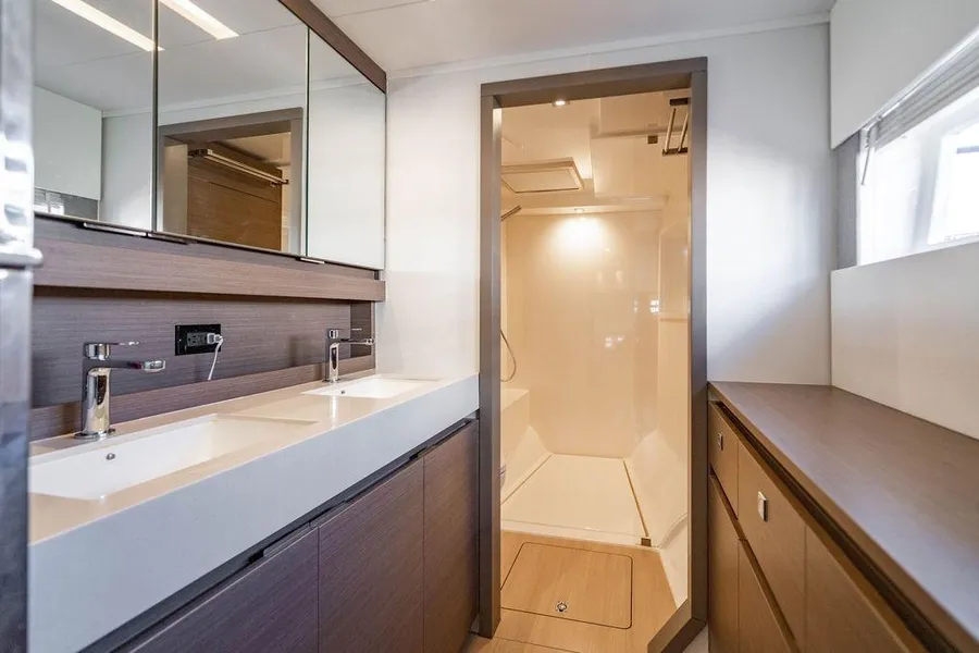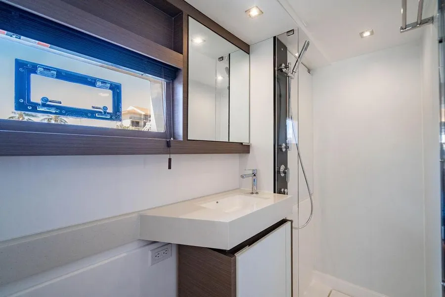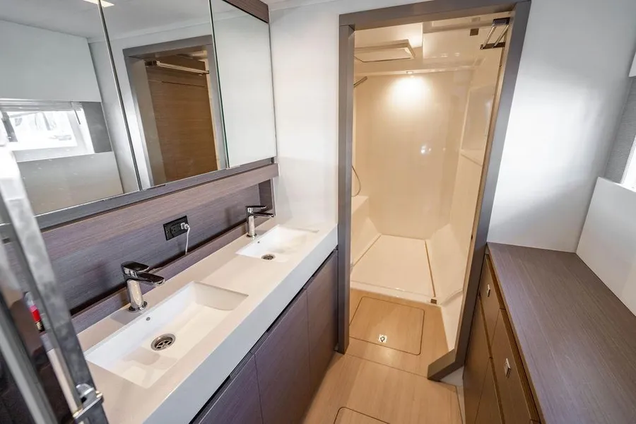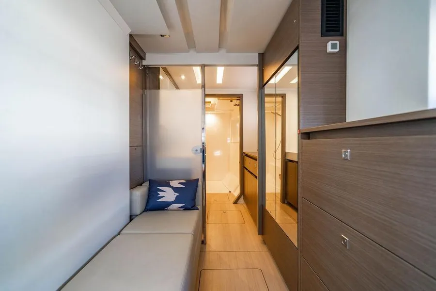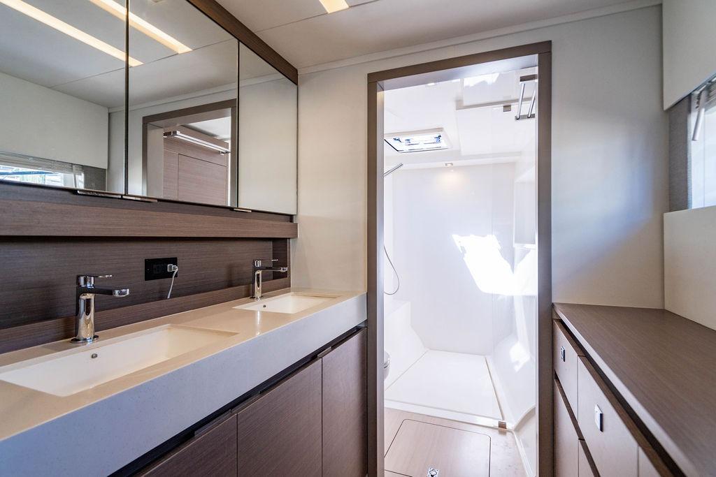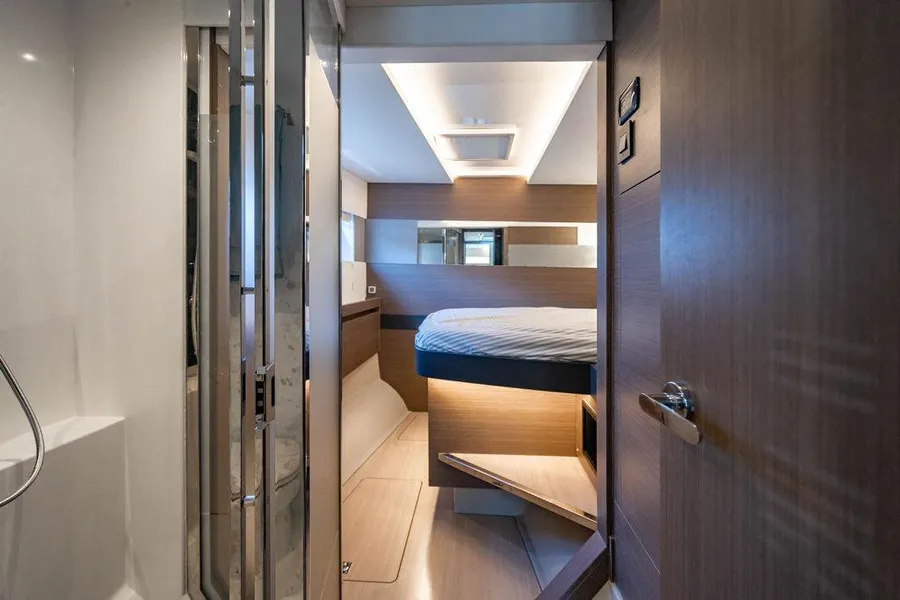 The Leopard 53 Powercat gives attention to every detail and aspect of interior space design. This 3-cabin owner’s version feels just like that home with a large island bed, walk-in closet, and double vanity. A separate engine room (now standard) houses all major systems is completely sealed off from living space, substantially reducing engine noise and odors.
