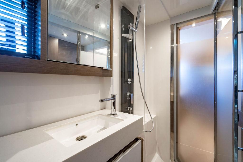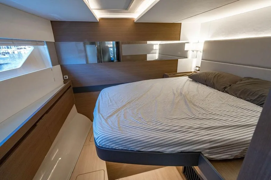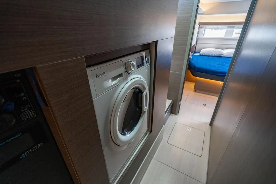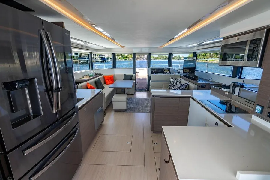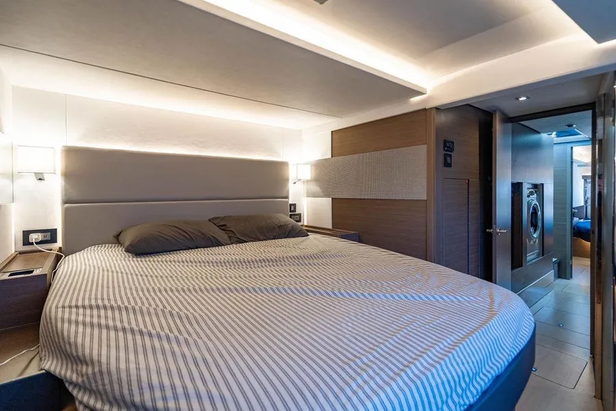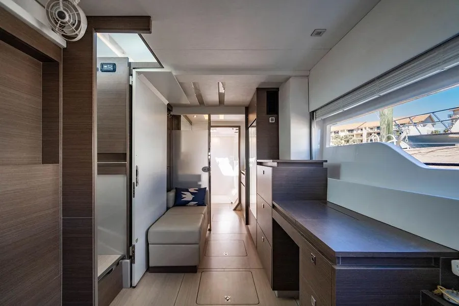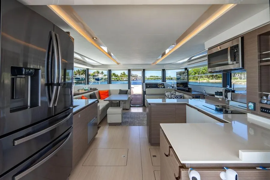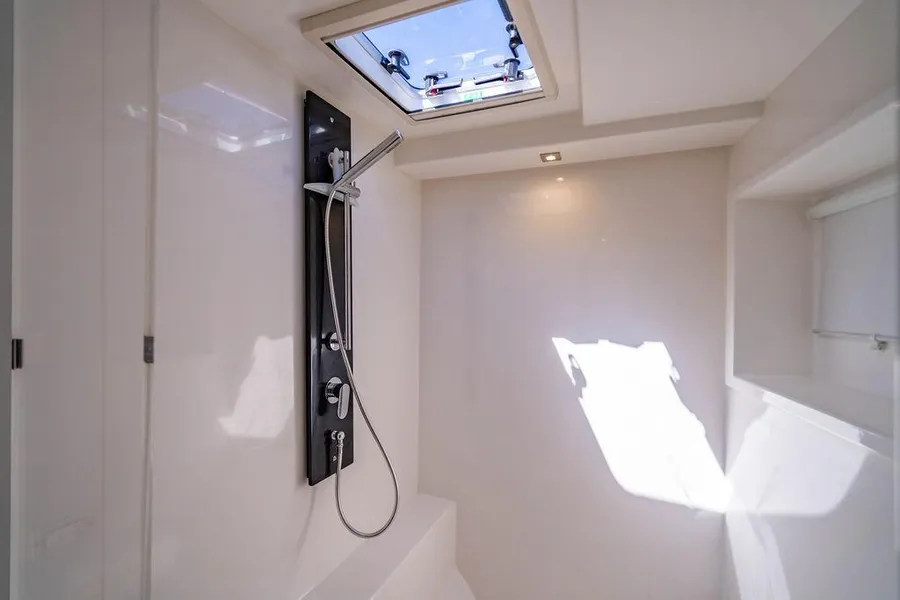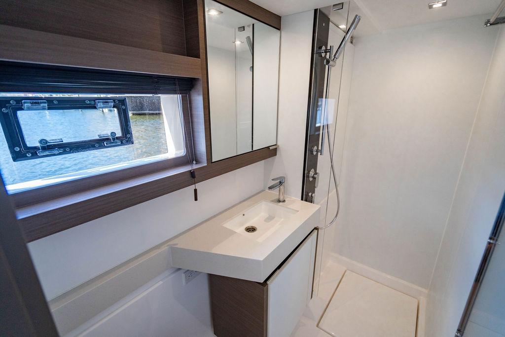The Leopard 53 Powercat gives attention to every detail and aspect of interior space design. This 3-cabin owner’s version feels just like that home with a large island bed, walk-in closet, and double vanity. A separate engine room (now standard) houses all major systems is completely sealed off from living space, substantially reducing engine noise and odors.