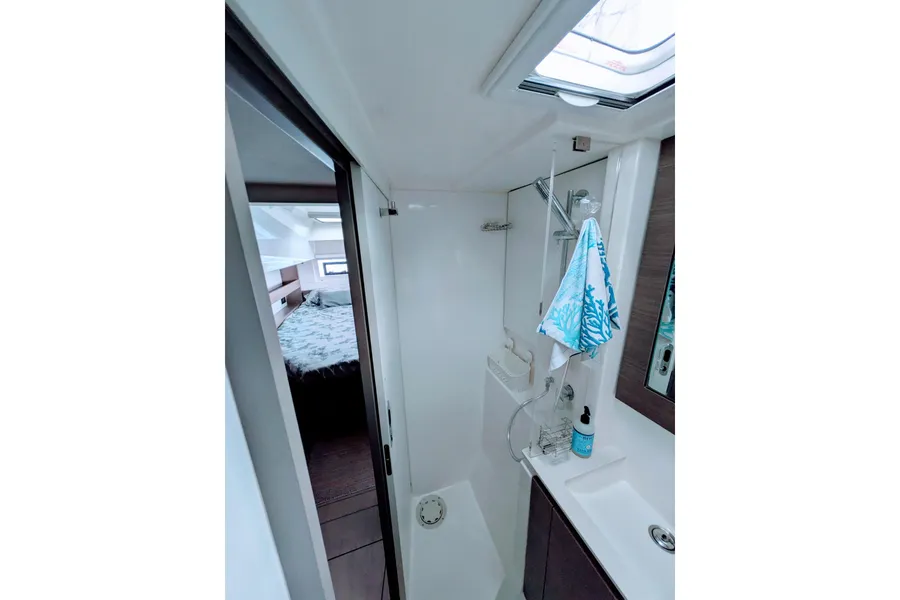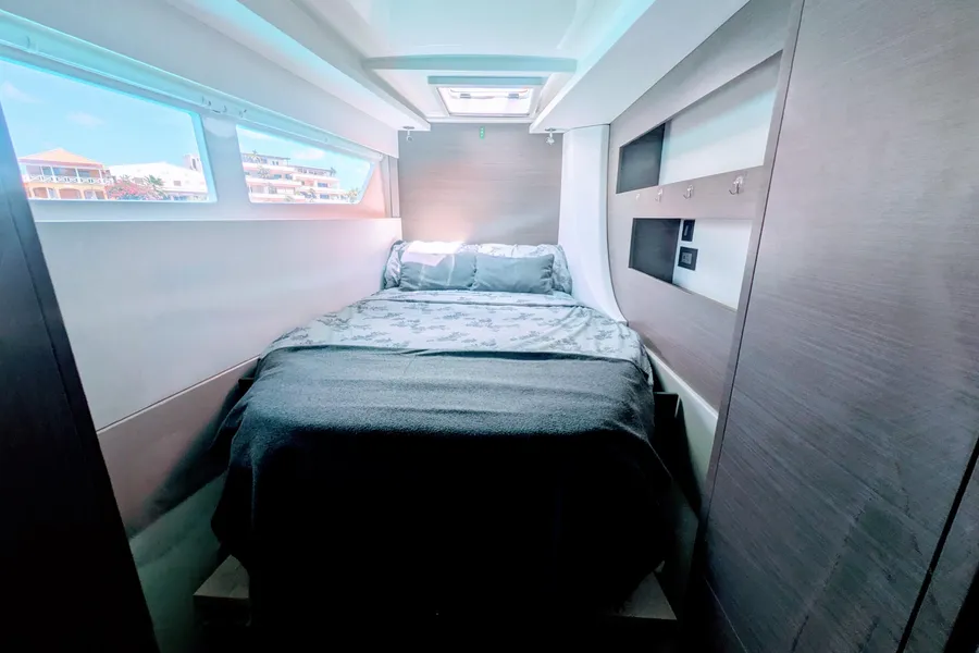 The Leopard 42 is the organic evolution into the new generation of our award-winning line of yachts. Built by Robertson & Caine and designed by Naval Architects, Simonis & Voogd, together we have created a revolutionary design that has exceed expectations by offering far more than anticipated. This was accomplished all while maintaining our signature balance of comfort and uncompromised performance. The exterior styling has adapted to the modern appearance of the award-winning Leopard 50, which features continuous hull side windows, a continuous hardtop, and what has quickly become our signature, an upper-lounge area. The interior design has adopted the styling that was developed for the award-winning Leopard 53 Powercat. With modern contrasts, indirect lighting, and classy finishes, the Leopard 42 brings more luxury and elegance to the Leopard sailboat range. All bunks are now island berths that allow access from both sides. With windows everywhere space permitted, the natural light is amplified. All cabins include their own private en-suite heads. All heads include their own designated shower area; a feature not currently found on catamarans in this size range. In the saloon, we have added a generous skylight, as well and an additional window in the aft starboard corner facing the helm seat. The forward-facing L-shaped galley is sure to entice any chef! The Leopard 42 has the unmistakable DNA of a Leopard Catamaran with plenty of new technology and building techniques used to make it a magnificent ocean-going yacht with a feel of space, comfort and performance only previously found in significantly larger models.