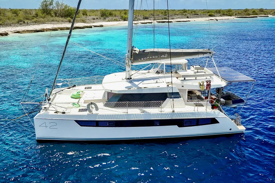 I would like to introduce you to “Momentum, 42”, a 2023 Leopard 42 Owners Version, now available for sale.  She is currently located in the Dutch Antilles, with plans to work her way back up the Caribbean chain to South Florida after hurricane season.  This boat has been imported to the USA, and can be closed on either in the Caribbean or South Florida via buyer’s request.