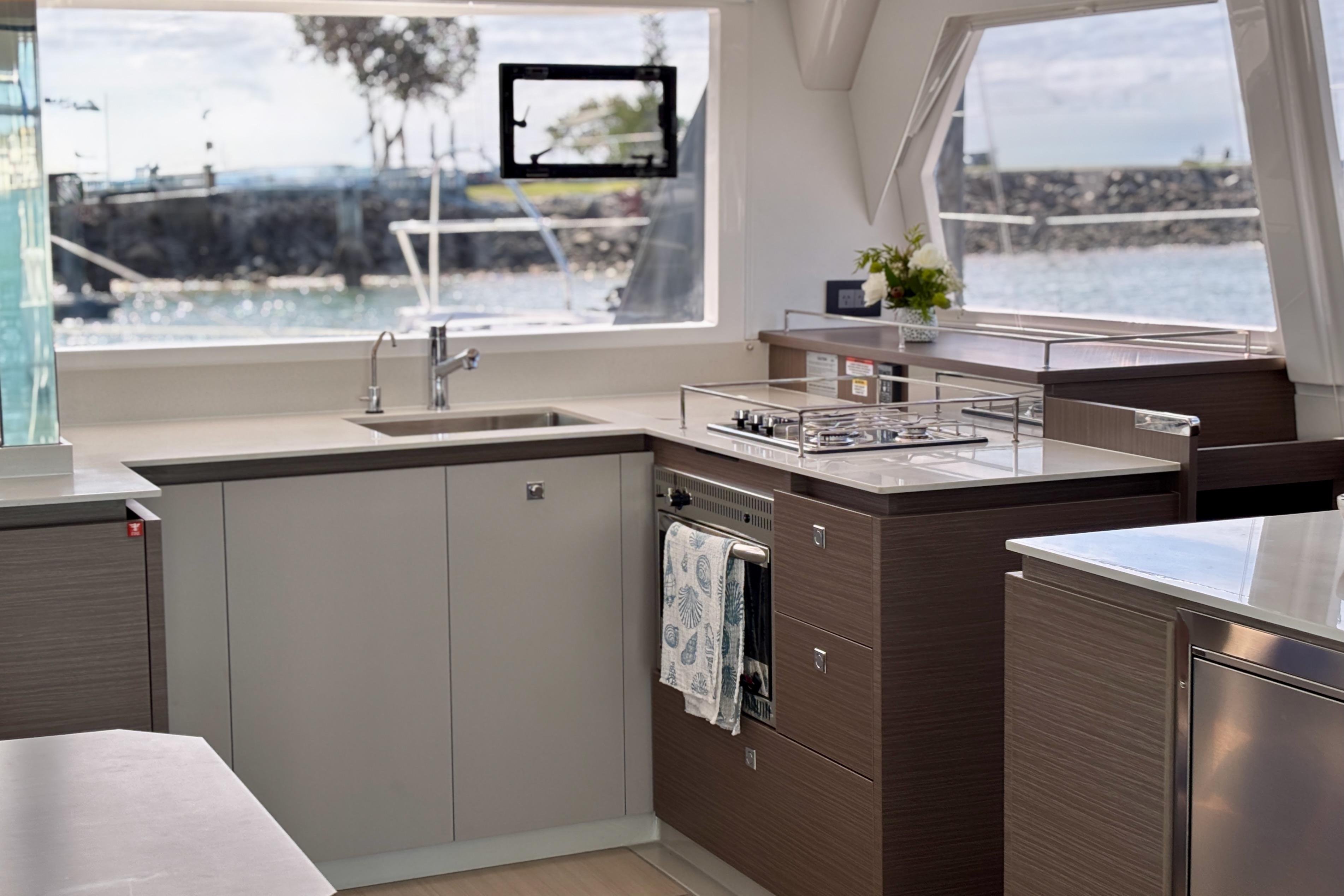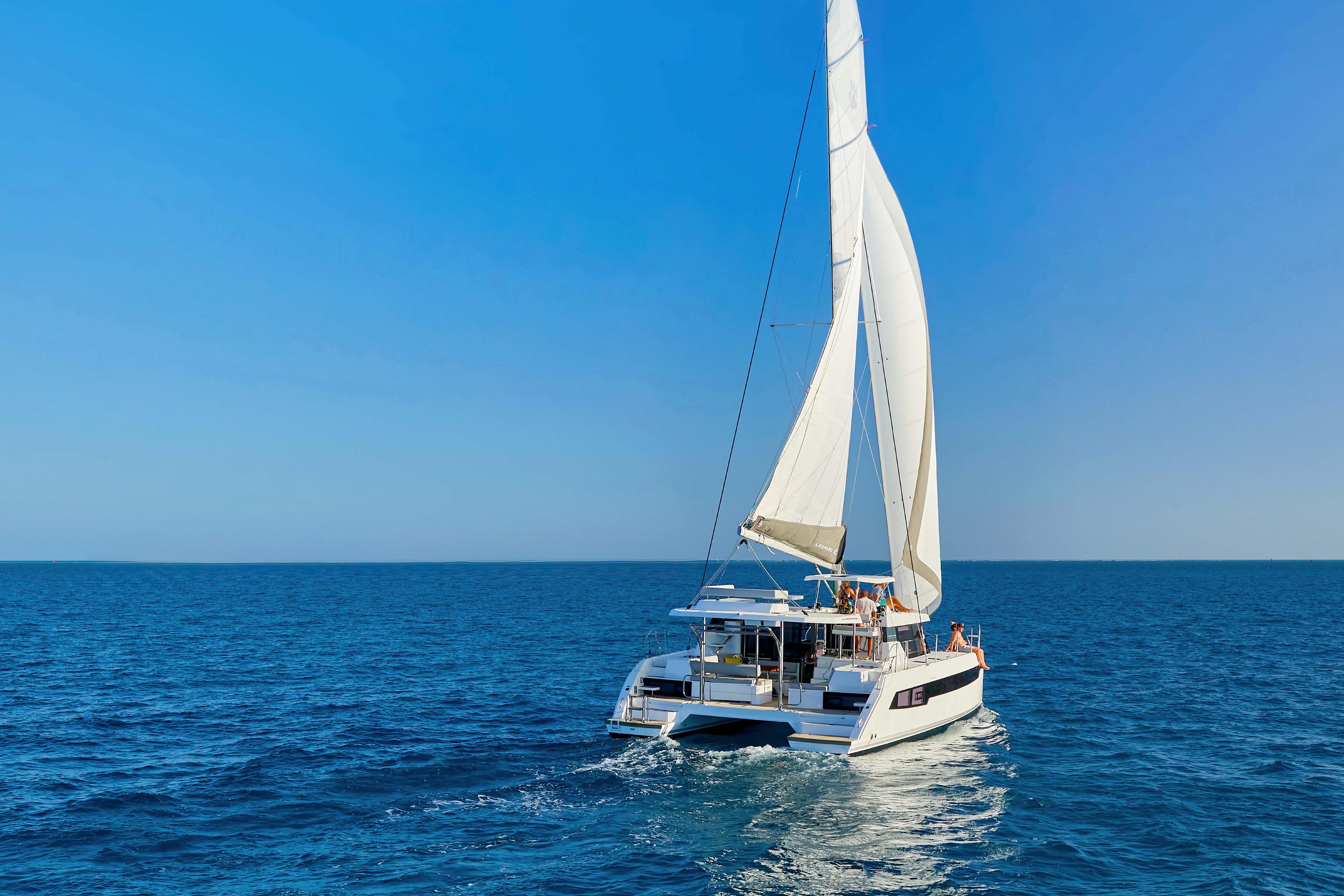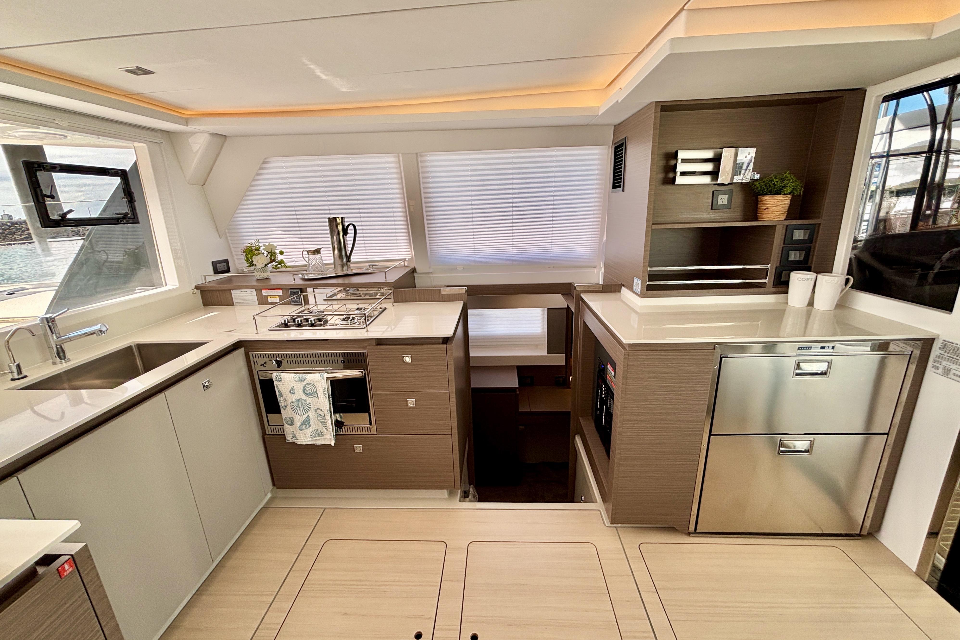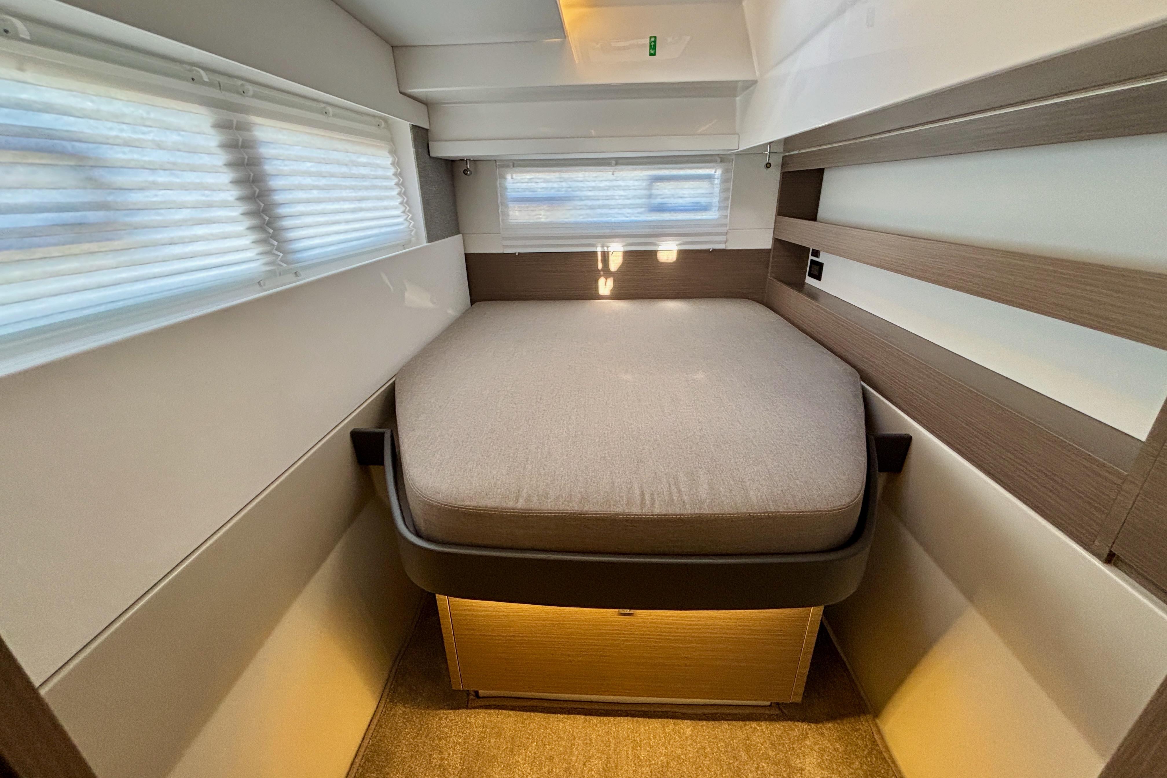Available now. Ex Demonstrator 3 cabin owners model Step aboard the new Leopard 42 and experience a new era of sailing. Joining the Leopard 46 and Leopard 50, the Leopard 42 leaves no detail overlooked in size or possibility. Sailing performance and livability exist harmoniously under one sleek profile. The Leopard 42’s signature coachroof lounge provides ample space not found in other vessels, offering a place to convene and plot tomorrow’s next adventure Built by Robertson & Caine and designed by naval architects Simonis Voogd, the Leopard 42 utilizes superior finishes and materials, creating a one-of-a-kind vessel that balances comfort, performance and ease of handling. A thoughtful design process ensures every feature and function has been anticipated, with minimal customization needed. Those onboard can move about effortlessly knowing their needs are fully addressed in every aspect of the Leopard 42. The exterior’s striking design features continuous hull side windows, a continuous hardtop, and Leopard Catamaran’s signature upper-lounge area. Like the Leopard 50, the Leopard 42’s subtle elegance is accented by modern design elements and classic finishes without losing the rugged spirit and sportive quality for which Leopard is known. A handsome interior reveals generous natural light from optimized window placements including an additional window in the aft starboard corner facing the helm seat and a skylight in the saloon. Preparing meals no longer feels like an afterthought with a forward-facing, L-shaped galley that invites everyone to participate in the process. The Leopard 42 reimagines comfort through its optimal use of space and attention to detail. All bunks are now island berths that allow access from both sides. Available in three cabin/three heads and four cabin/four heads, all cabins include private ensuite heads. All heads also include their own designated shower area, a feature not currently found on catamarans in this size range. Equal parts luxury and performance, the Leopard 42’s capabilities far exceed its size. Together with new technology and building techniques, the Leopard 42 brings exhilaration and freedom to sailing in a way no other sailboat can. Always reaching new destinations, the Leopard 42 is ready for your next adventure.