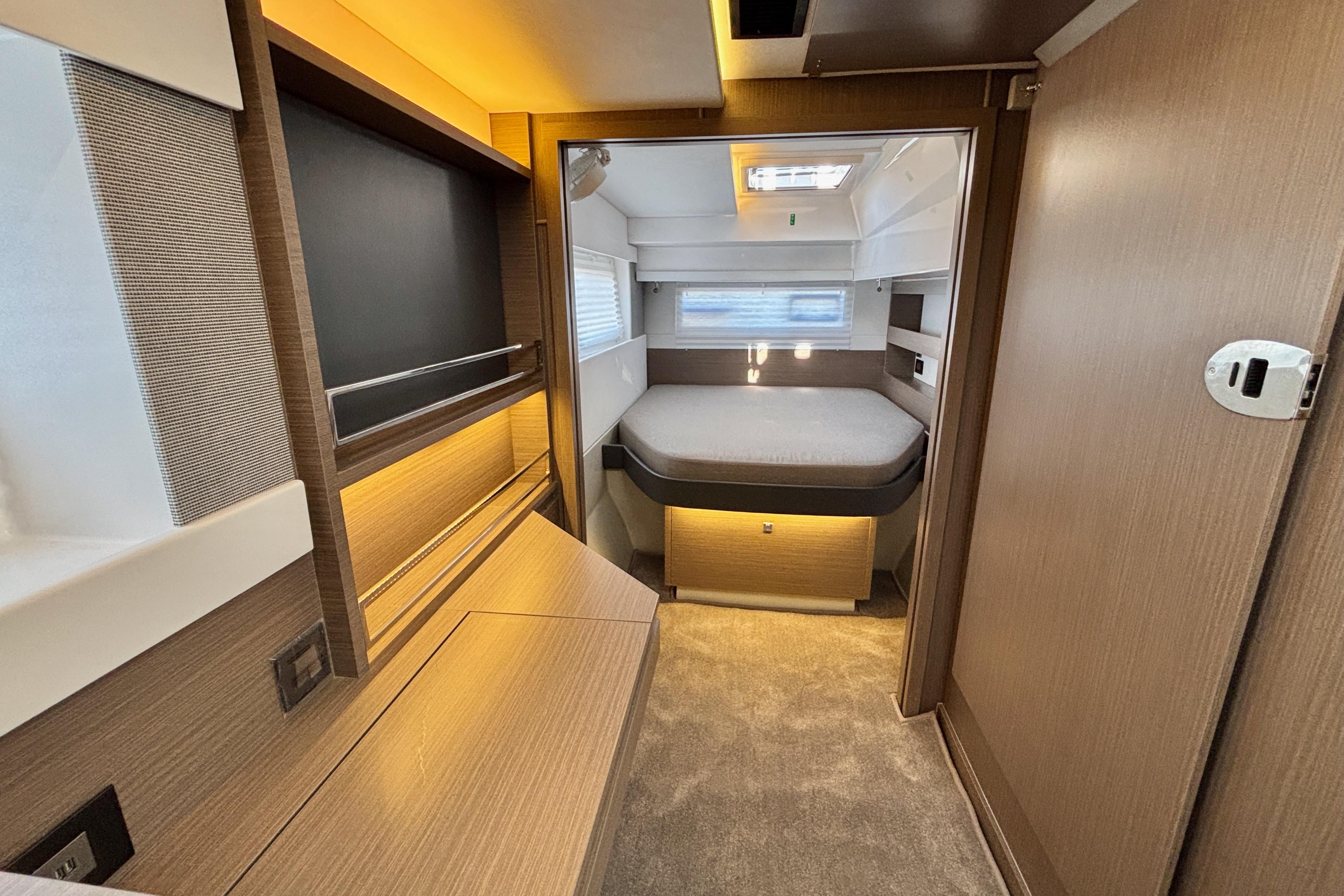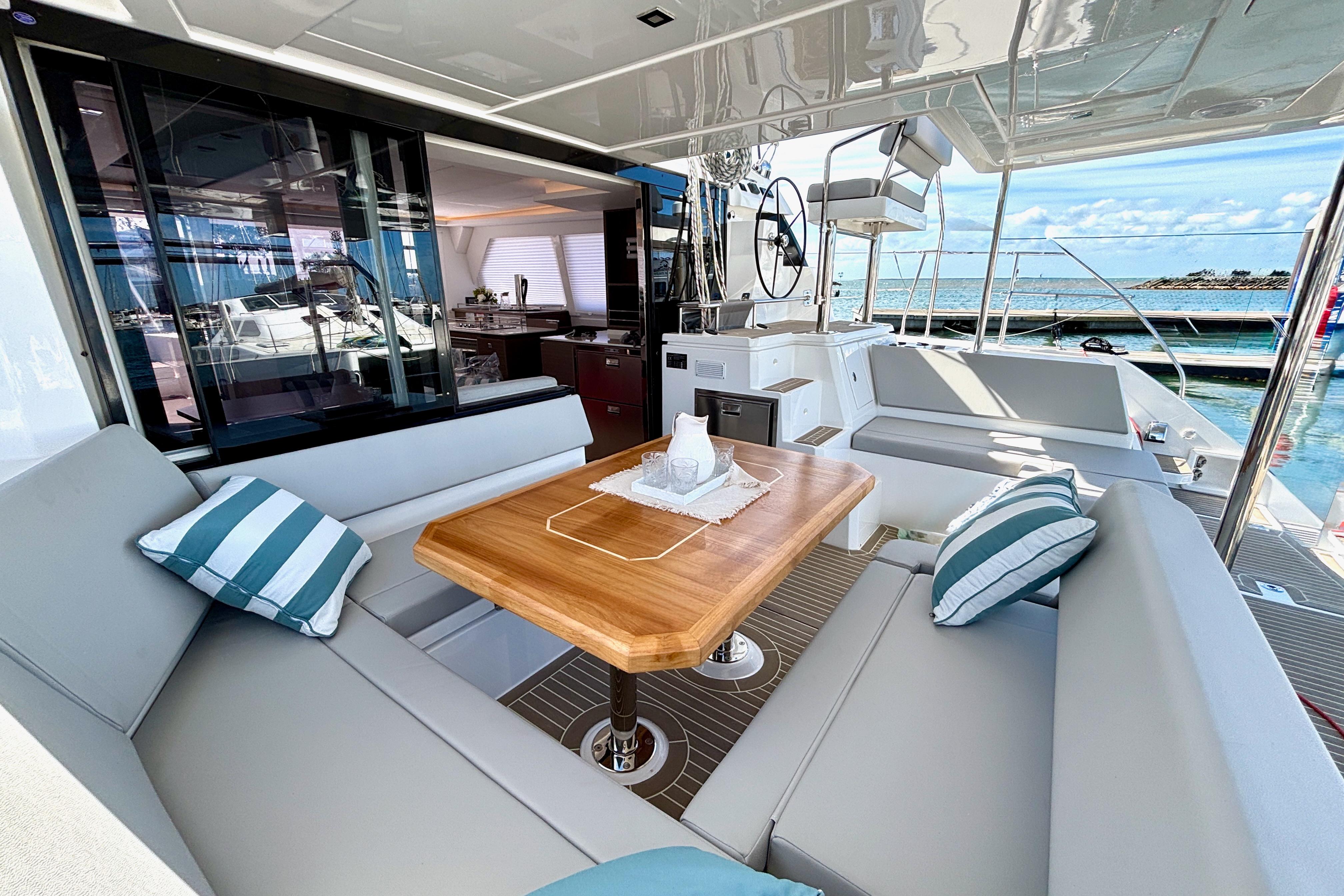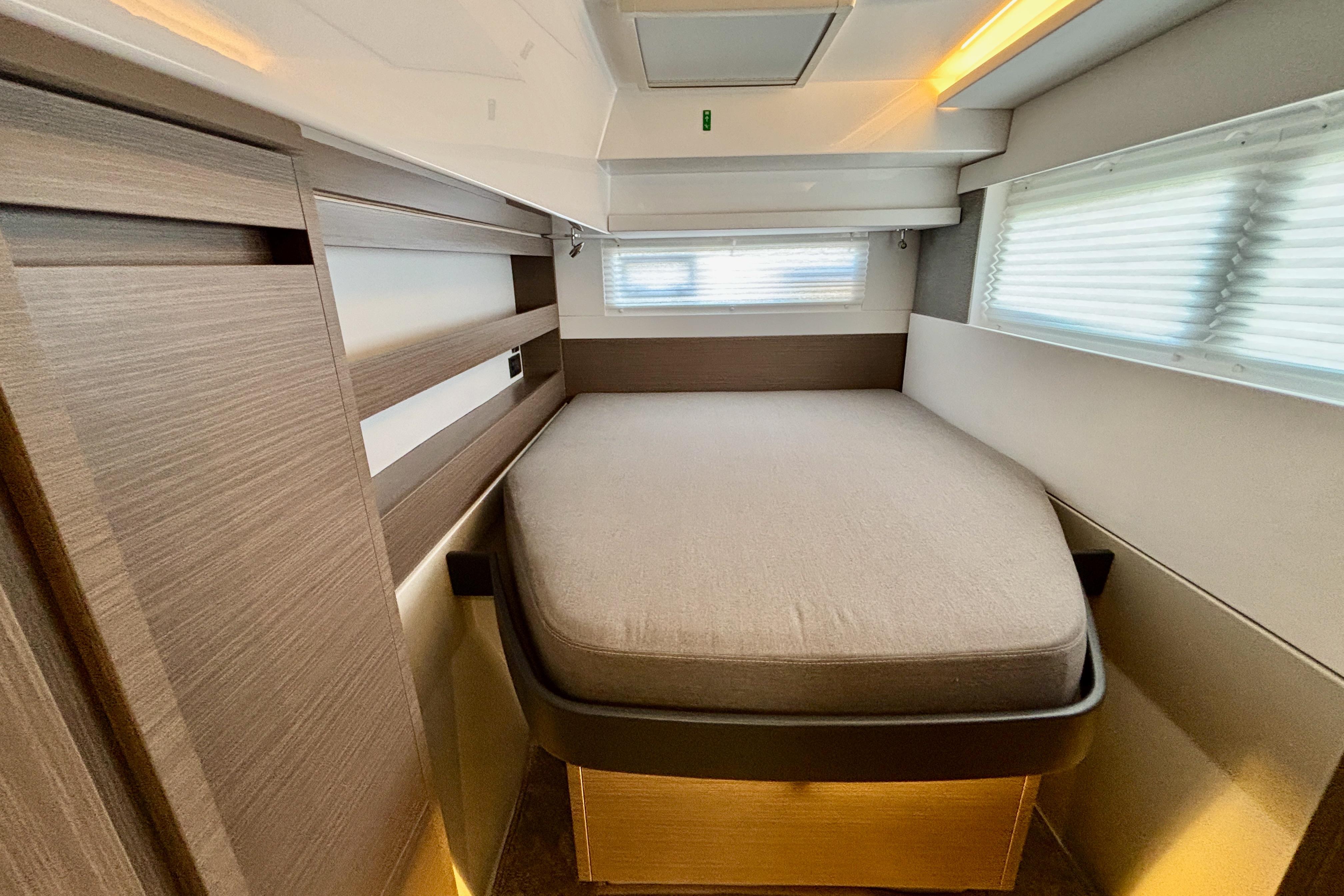 Available now. Ex Demonstrator 3 cabin owners model Step aboard the new Leopard 42 and experience a new era of sailing. Joining the Leopard 46 and Leopard 50, the Leopard 42 leaves no detail overlooked in size or possibility. Sailing performance and livability exist harmoniously under one sleek profile. The Leopard 42’s signature coachroof lounge provides ample space not found in other vessels, offering a place to convene and plot tomorrow’s next adventure Built by Robertson & Caine and designed by naval architects Simonis Voogd, the Leopard 42 utilizes superior finishes and materials, creating a one-of-a-kind vessel that balances comfort, performance and ease of handling. A thoughtful design process ensures every feature and function has been anticipated, with minimal customization needed. Those onboard can move about effortlessly knowing their needs are fully addressed in every aspect of the Leopard 42. The exterior’s striking design features continuous hull side windows, a continuous hardtop, and Leopard Catamaran’s signature upper-lounge area. Like the Leopard 50, the Leopard 42’s subtle elegance is accented by modern design elements and classic finishes without losing the rugged spirit and sportive quality for which Leopard is known. A handsome interior reveals generous natural light from optimized window placements including an additional window in the aft starboard corner facing the helm seat and a skylight in the saloon. Preparing meals no longer feels like an afterthought with a forward-facing, L-shaped galley that invites everyone to participate in the process. The Leopard 42 reimagines comfort through its optimal use of space and attention to detail. All bunks are now island berths that allow access from both sides. Available in three cabin/three heads and four cabin/four heads, all cabins include private ensuite heads. All heads also include their own designated shower area, a feature not currently found on catamarans in this size range. Equal parts luxury and performance, the Leopard 42’s capabilities far exceed its size. Together with new technology and building techniques, the Leopard 42 brings exhilaration and freedom to sailing in a way no other sailboat can. Always reaching new destinations, the Leopard 42 is ready for your next adventure.