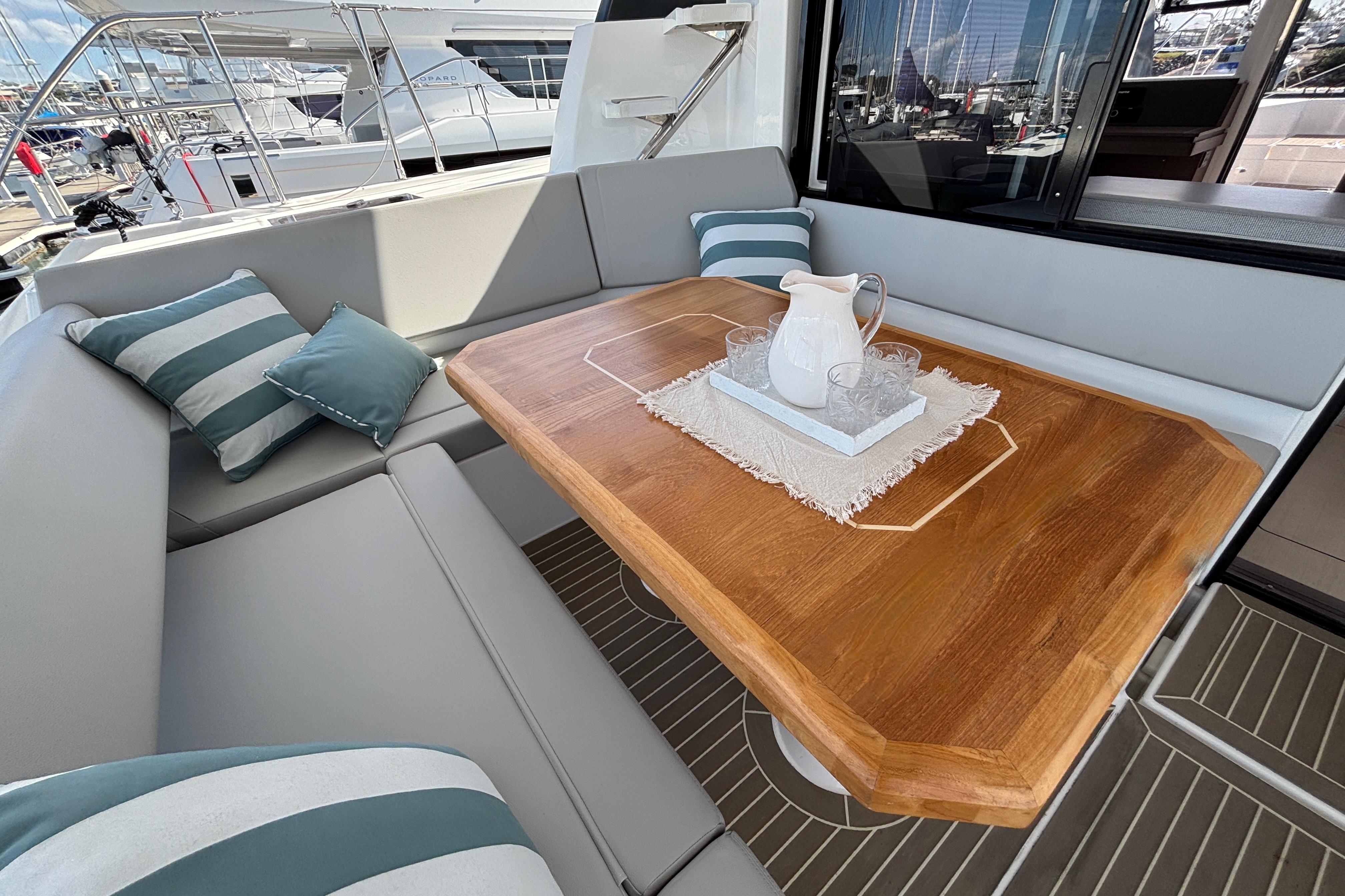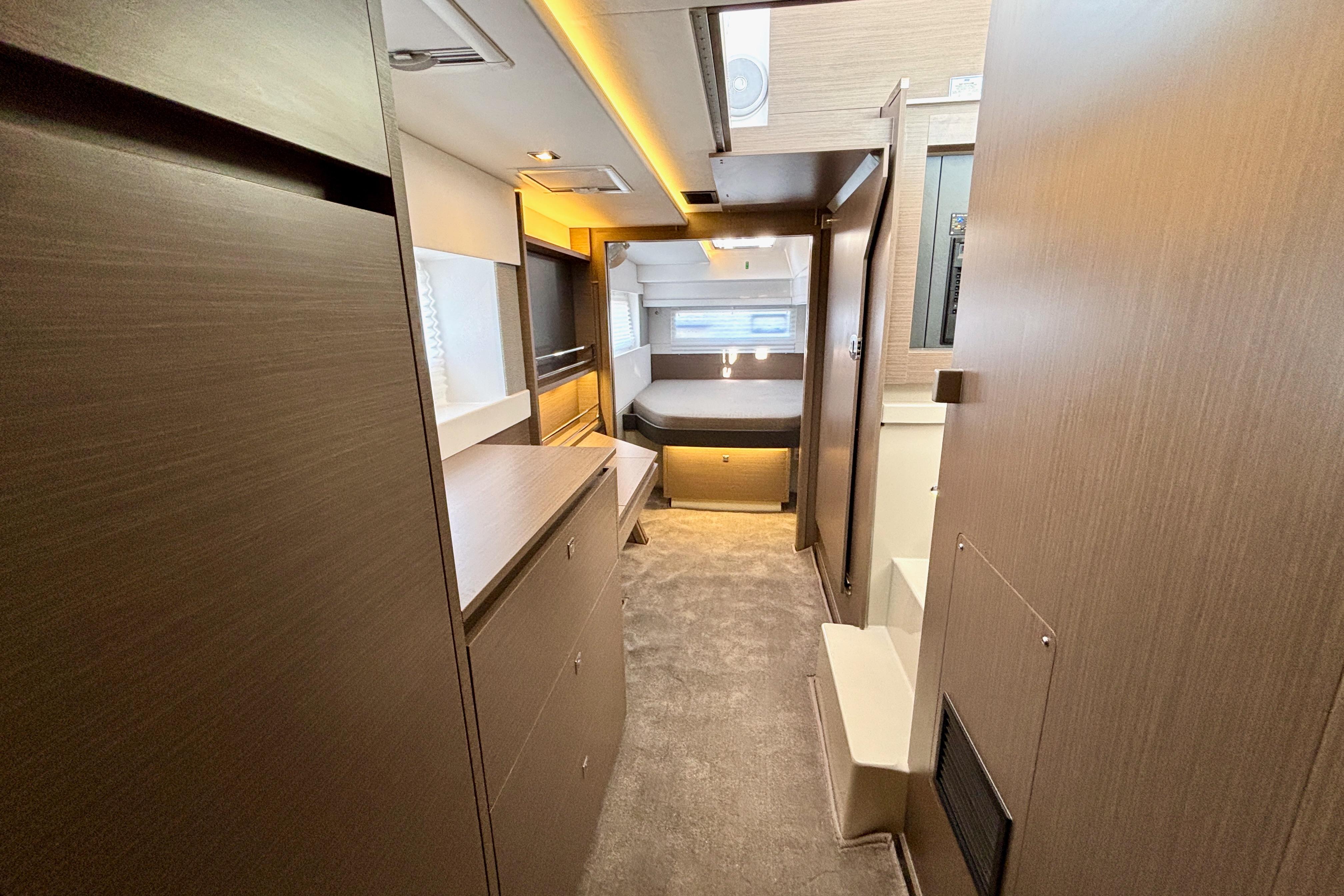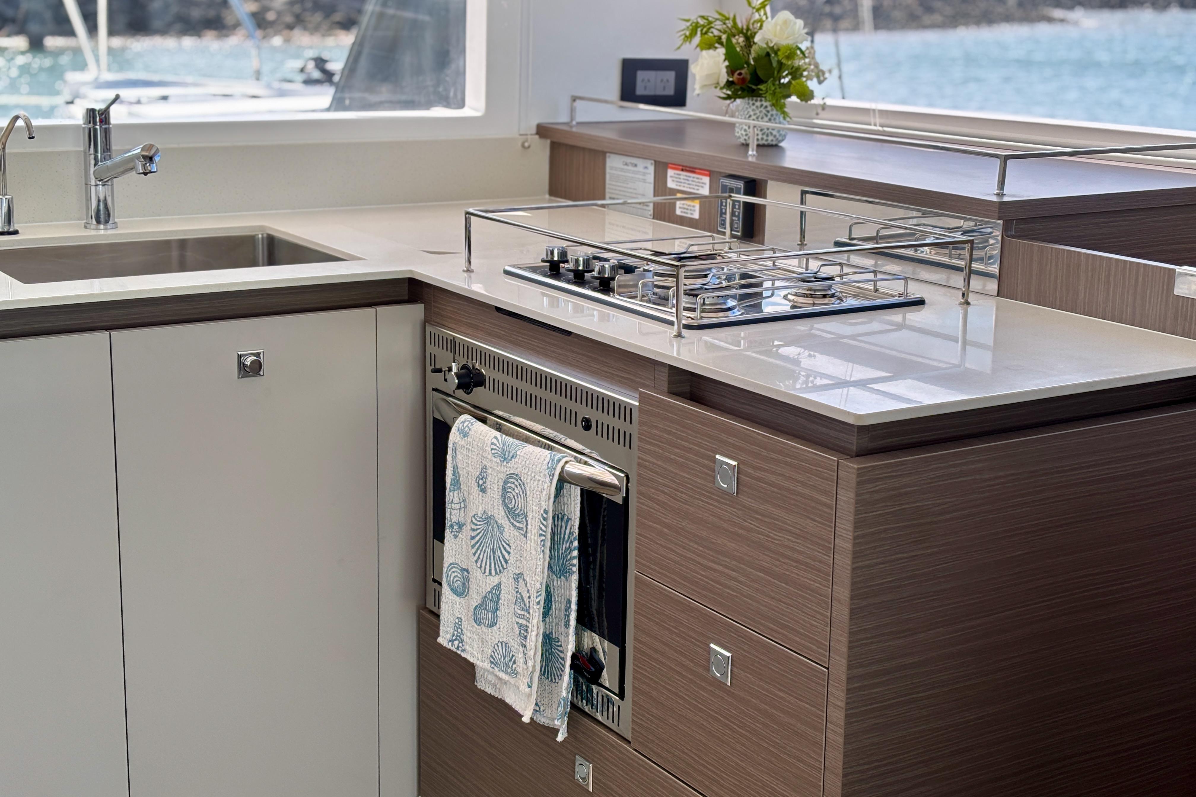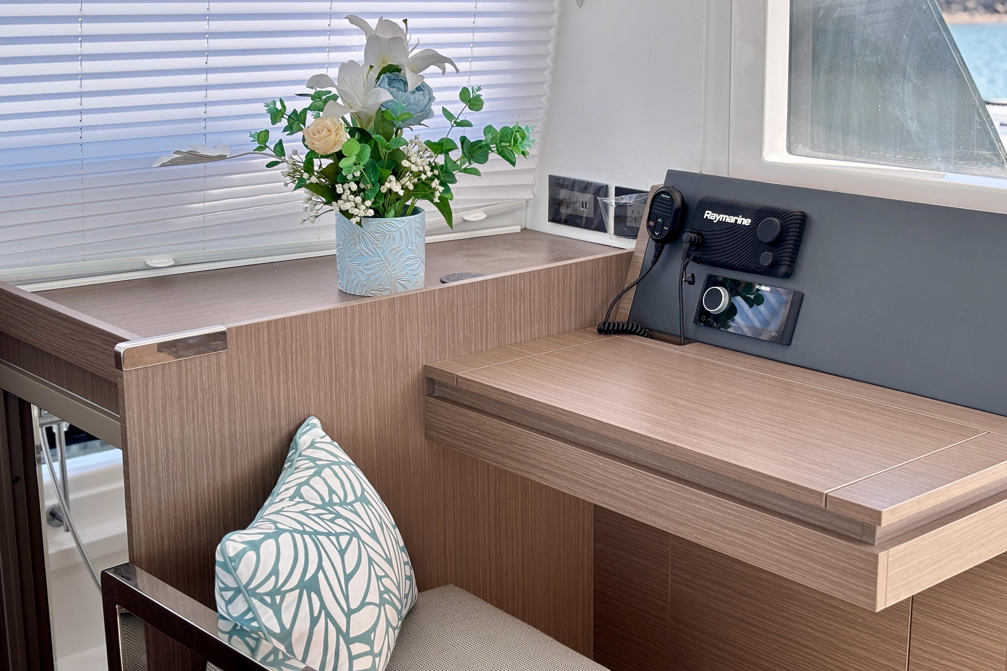 Available now. Ex Demonstrator 3 cabin owners model Step aboard the new Leopard 42 and experience a new era of sailing. Joining the Leopard 46 and Leopard 50, the Leopard 42 leaves no detail overlooked in size or possibility. Sailing performance and livability exist harmoniously under one sleek profile. The Leopard 42’s signature coachroof lounge provides ample space not found in other vessels, offering a place to convene and plot tomorrow’s next adventure Built by Robertson & Caine and designed by naval architects Simonis Voogd, the Leopard 42 utilizes superior finishes and materials, creating a one-of-a-kind vessel that balances comfort, performance and ease of handling. A thoughtful design process ensures every feature and function has been anticipated, with minimal customization needed. Those onboard can move about effortlessly knowing their needs are fully addressed in every aspect of the Leopard 42. The exterior’s striking design features continuous hull side windows, a continuous hardtop, and Leopard Catamaran’s signature upper-lounge area. Like the Leopard 50, the Leopard 42’s subtle elegance is accented by modern design elements and classic finishes without losing the rugged spirit and sportive quality for which Leopard is known. A handsome interior reveals generous natural light from optimized window placements including an additional window in the aft starboard corner facing the helm seat and a skylight in the saloon. Preparing meals no longer feels like an afterthought with a forward-facing, L-shaped galley that invites everyone to participate in the process. The Leopard 42 reimagines comfort through its optimal use of space and attention to detail. All bunks are now island berths that allow access from both sides. Available in three cabin/three heads and four cabin/four heads, all cabins include private ensuite heads. All heads also include their own designated shower area, a feature not currently found on catamarans in this size range. Equal parts luxury and performance, the Leopard 42’s capabilities far exceed its size. Together with new technology and building techniques, the Leopard 42 brings exhilaration and freedom to sailing in a way no other sailboat can. Always reaching new destinations, the Leopard 42 is ready for your next adventure.